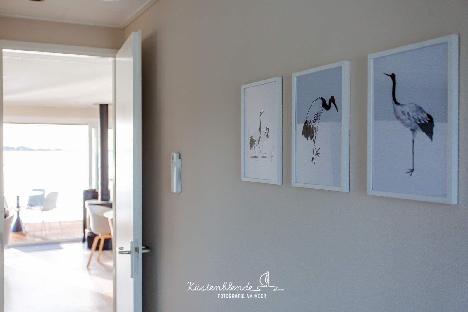 Die Glasfassaden im Wohn- und Essbereich (Beschattung jederzeit möglich) verstärken das Gefühl von Freiheit und die Nähe zur Natur. Im KranichNest genießt Du den zauberhaften Sonnenuntergang direkt vom Sofa und den komfortablen Drehsesseln aus, oder beim späteren Essen/Cocktail auf der geschützten Terrasse sitzt Du in der 1. Reihe vor dem Abendrot. Von da gelangst Du übrigens über die Badeleiter auch gleich in den Bodden, tauchst ein ins Wasser, sei es bei Sonnenaufgang oder im Licht der Abenddämmerung. Rundum Sicht und Sonne strahlen Dir auf dem möblierten Sonnendeck mit Liegen und Loungesesseln entgegen; lasse also Deine Seele baumeln und fühle es: Man sieht nur mit dem Herzen gut.