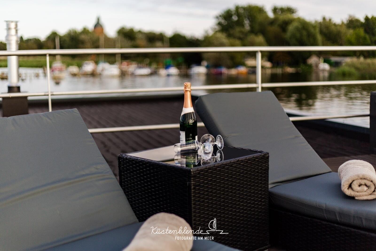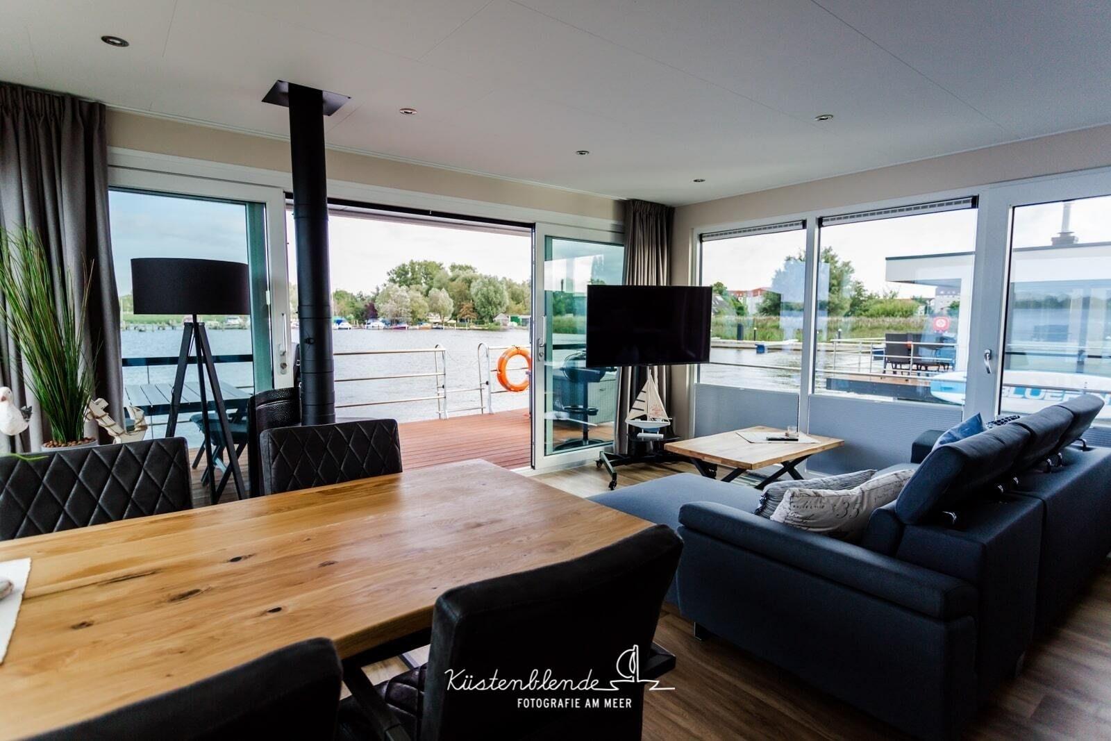 Aus dem Wohn- und Essbereich gelangen Sie auf die Terrasse. Hier können Sie Ihre Mahlzeiten genießen. Auf der Dachterrasse kann man sehr gut entspannen und die Seele baumeln lassen. Erleben Sie das Gefühl von Freiheit auf dem Wasser!
