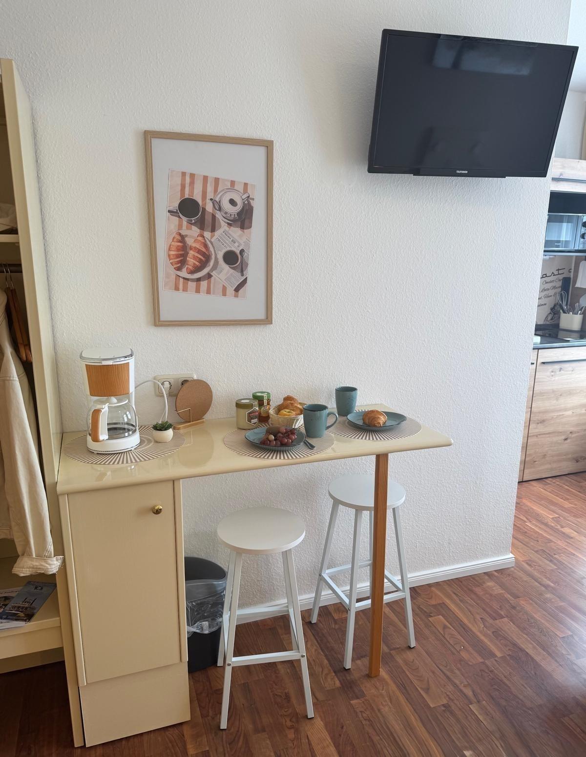 Die gemütlichen Ein-Raum-Appartements, mit kombinierten Wohn-und Schlafbereich, bieten Platz für maximal 2 Personen im 1. oder 2. Obergeschoss.