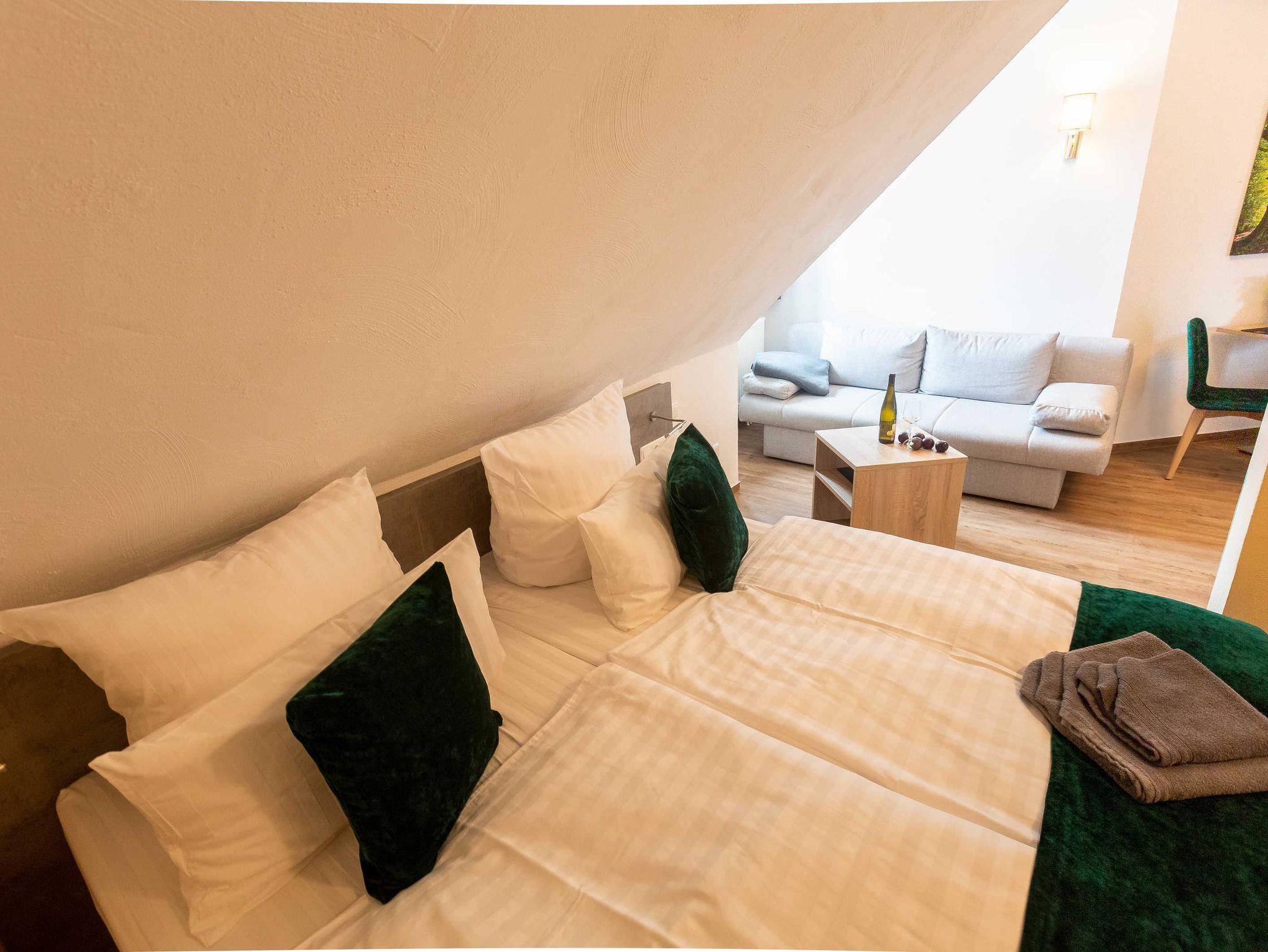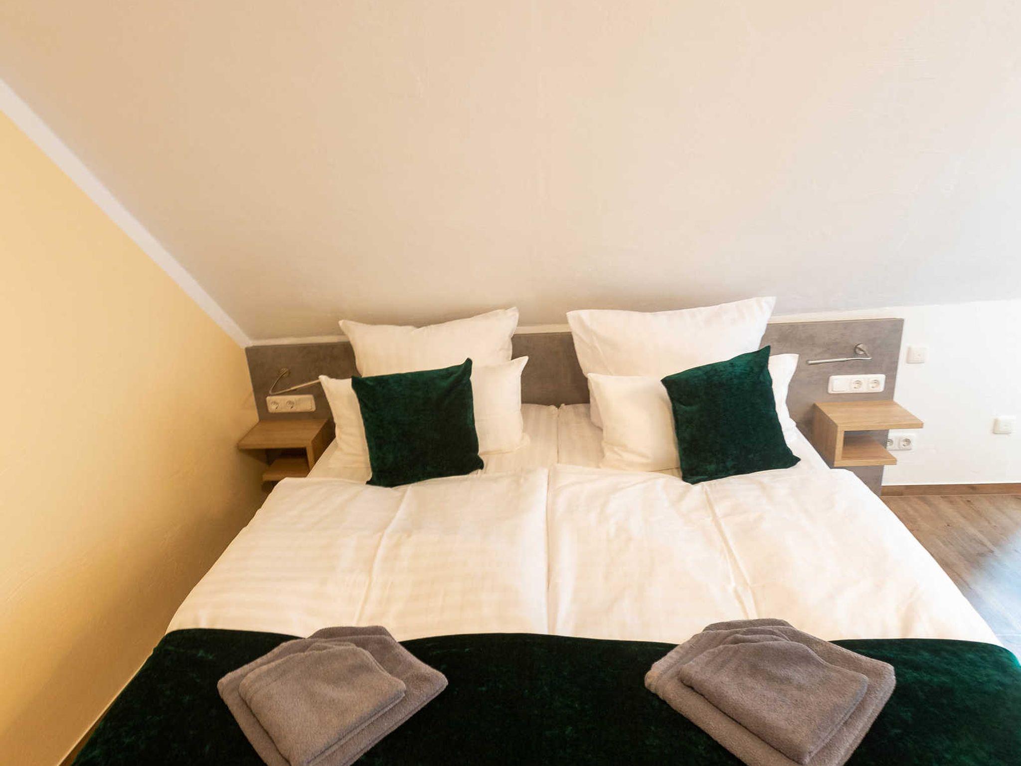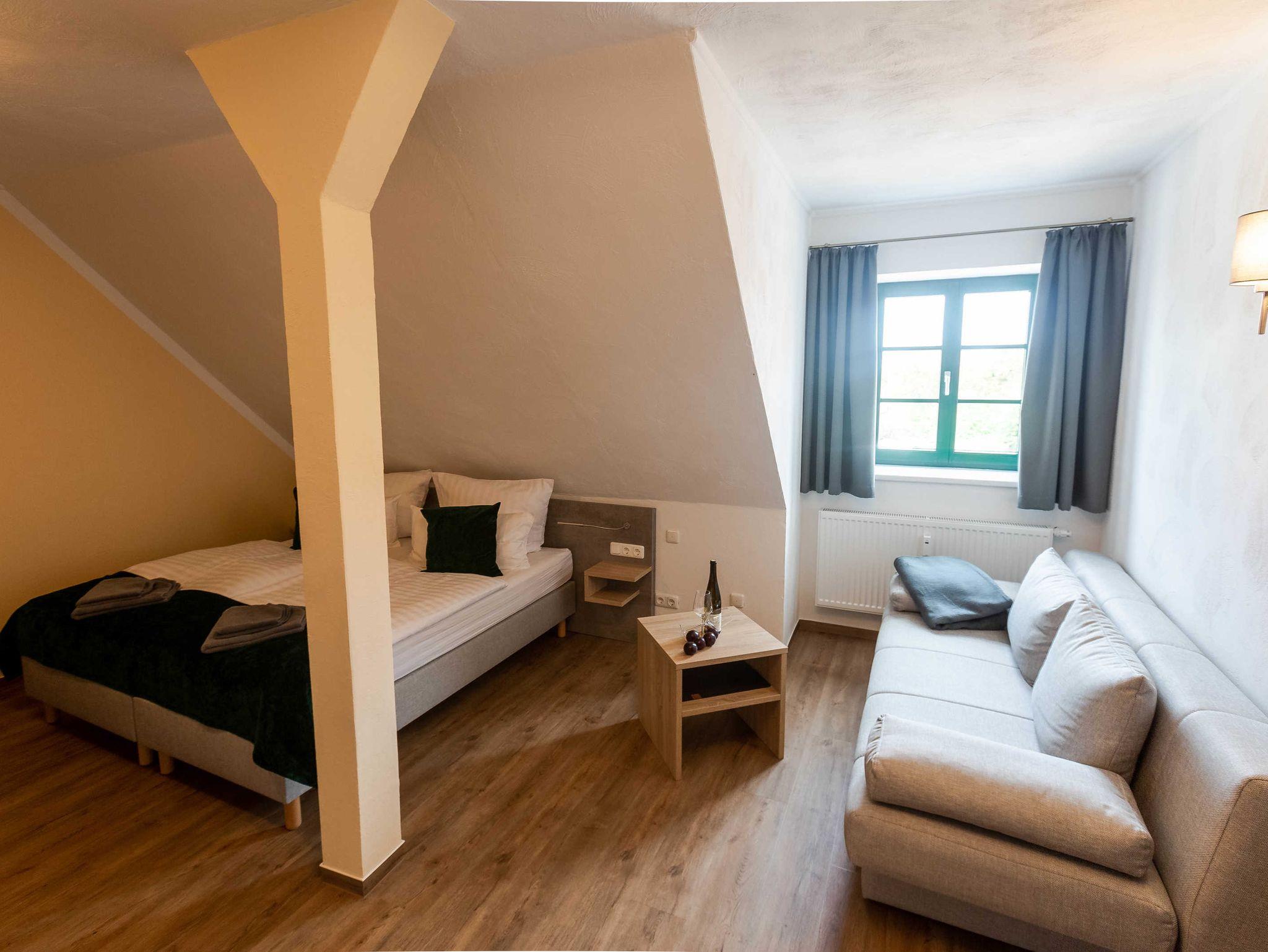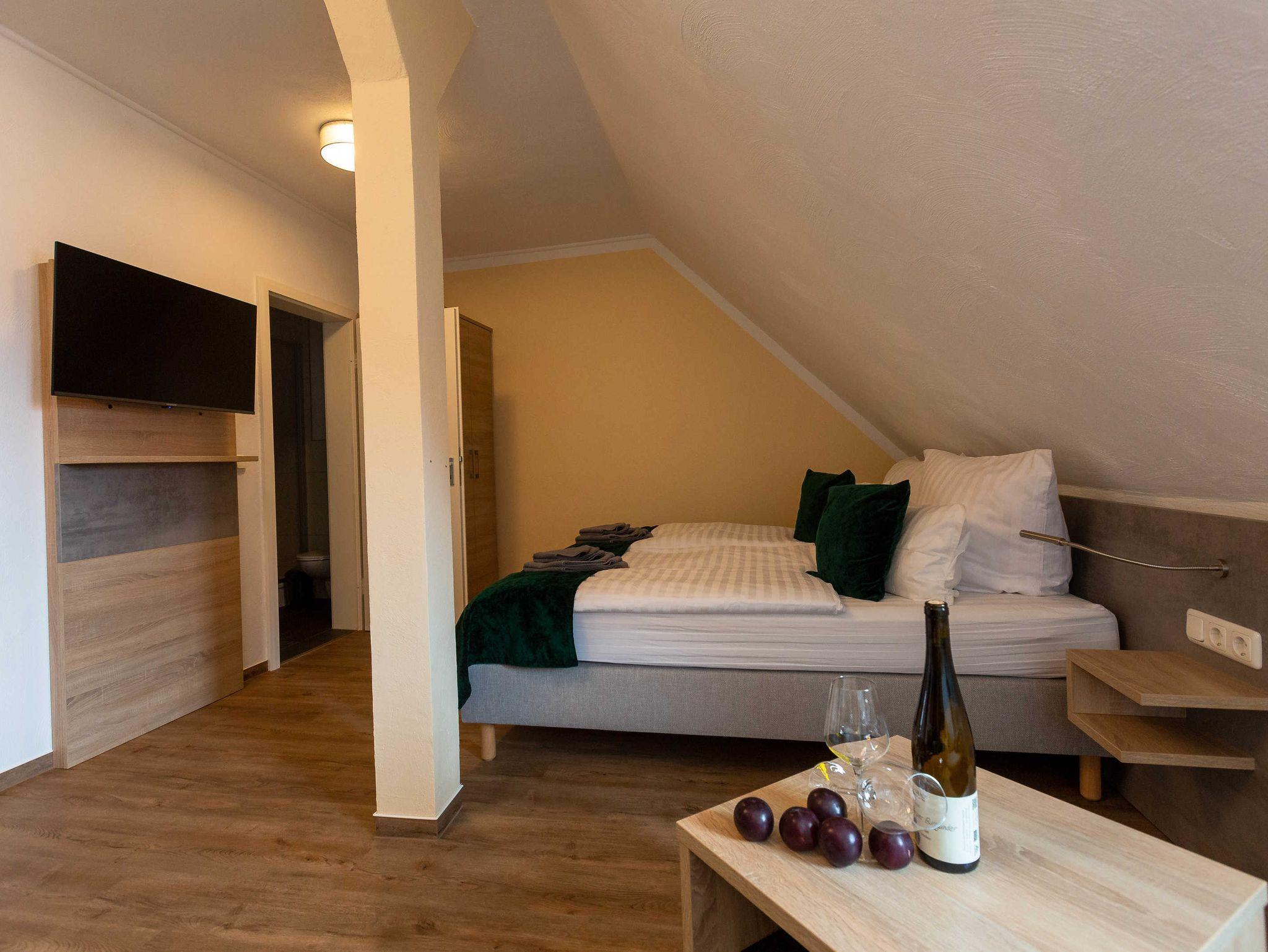 2022 haben wir in dem unter Denkmalschutz stehendem Haupthaus drei Apartments/Ferienwohnungen mit integrierter Küche eingerichtet, eine Aufbettung für 1 Person ist möglich. Des Weiteren verfügen wir über ein Doppelzimmer, welches jederzeit auch als Einzelzimmer gebucht werden kann.