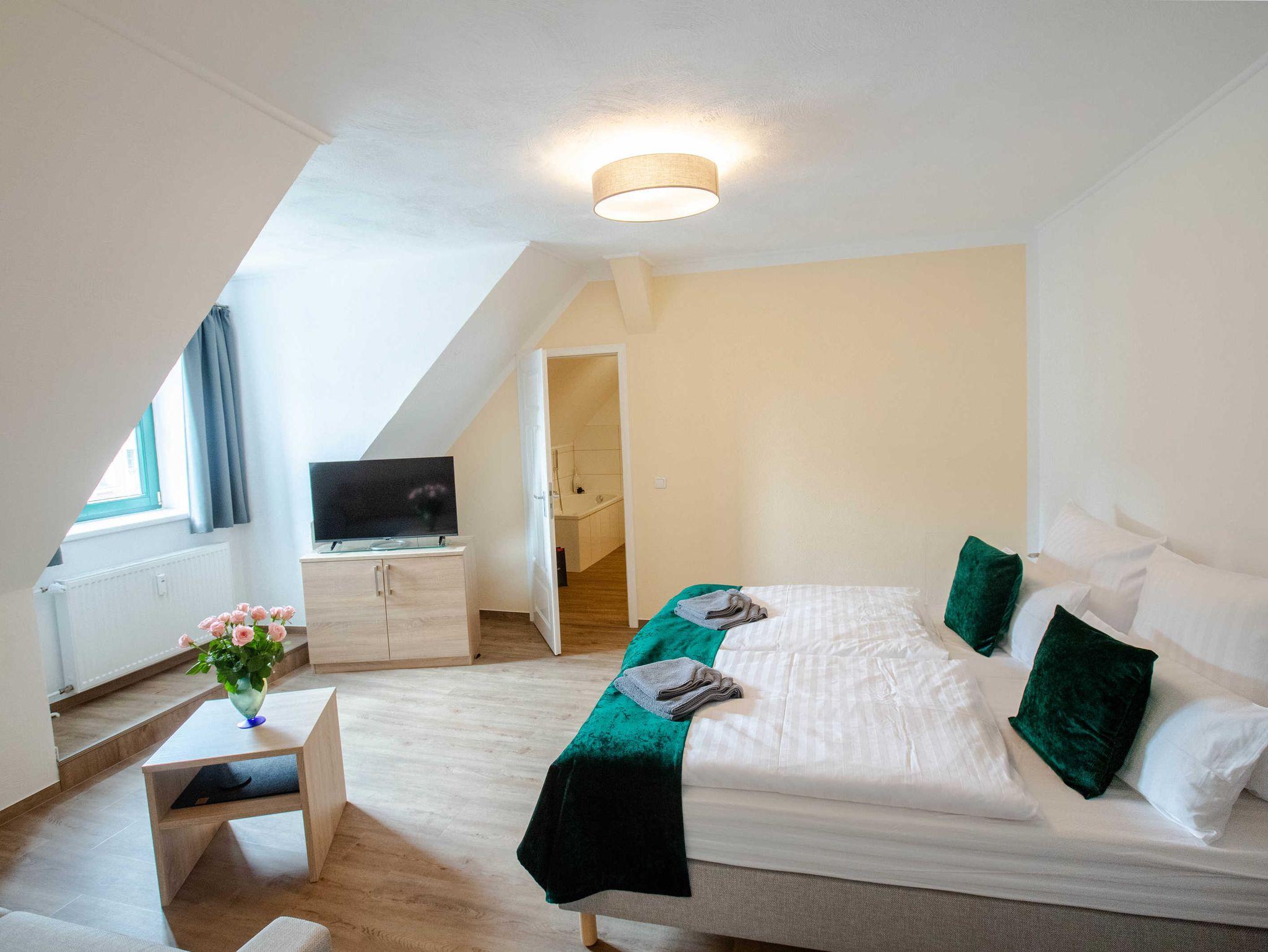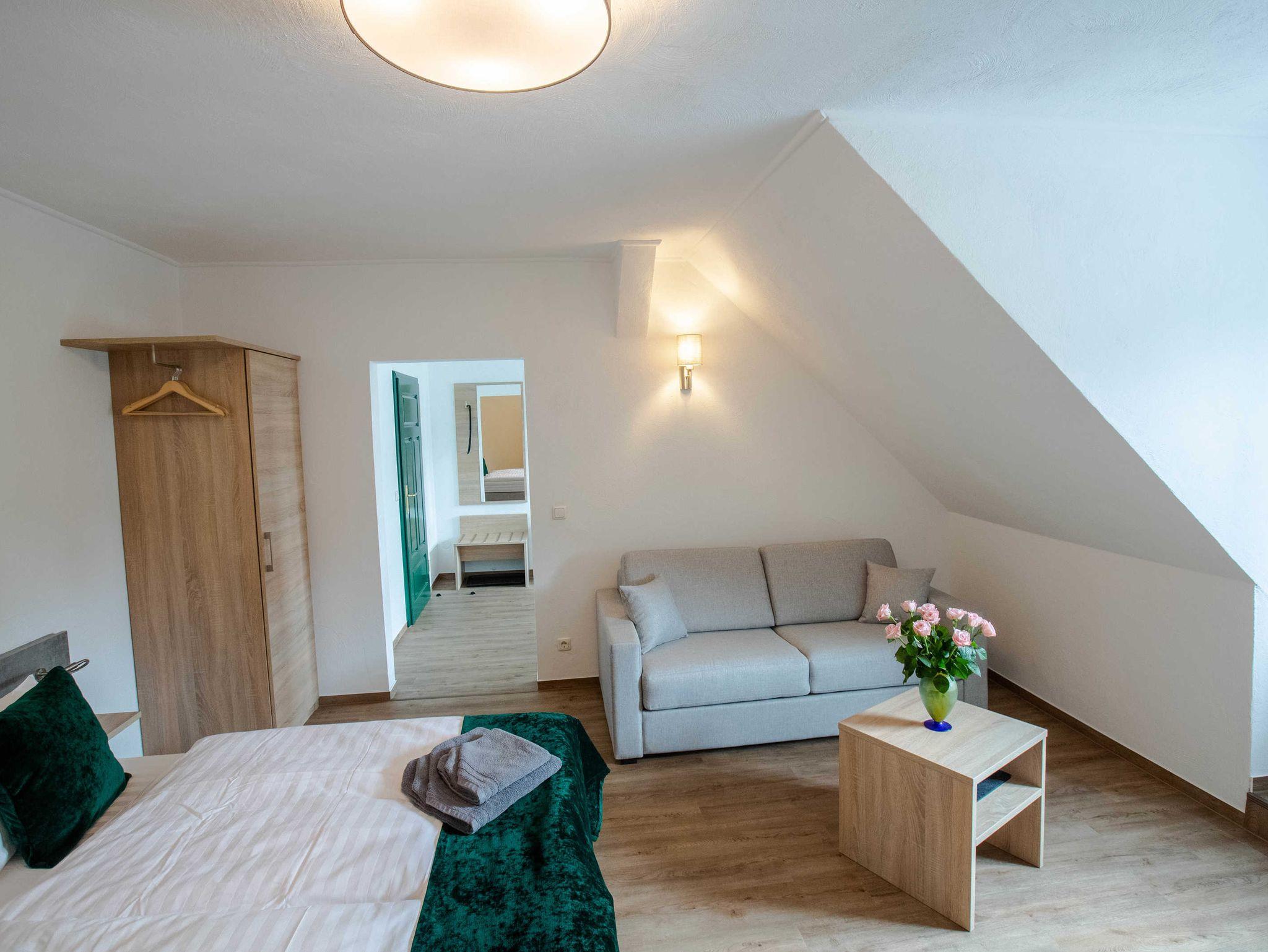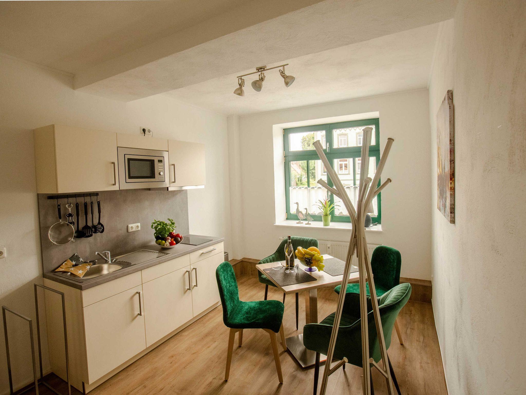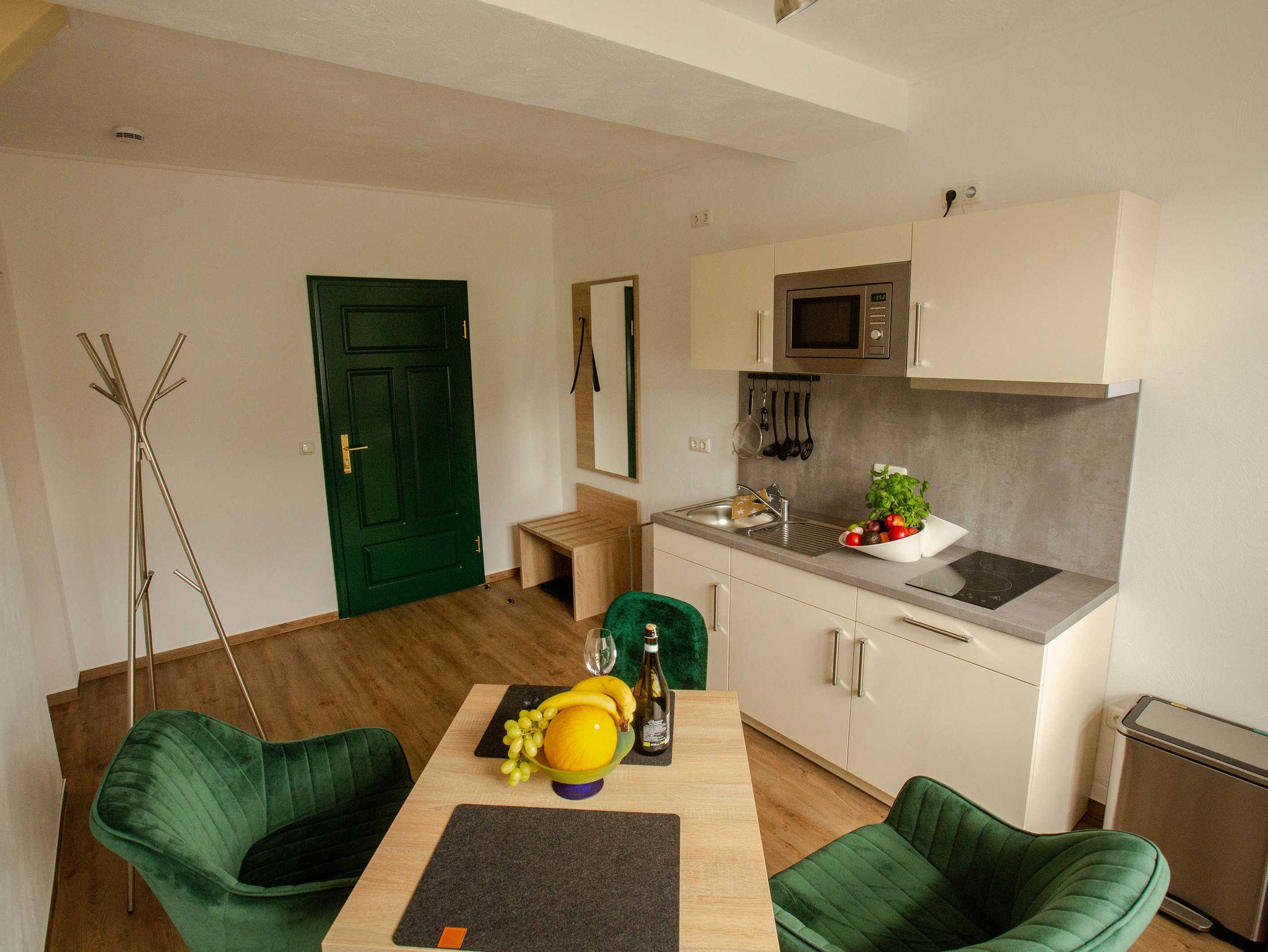 2022 haben wir in dem unter Denkmalschutz stehendem Haupthaus drei Apartments/Ferienwohnungen mit integrierter Küche eingerichtet, eine Aufbettung für 1 Person ist möglich. Des Weiteren verfügen wir über ein Doppelzimmer, welches jederzeit auch als Einzelzimmer gebucht werden kann.