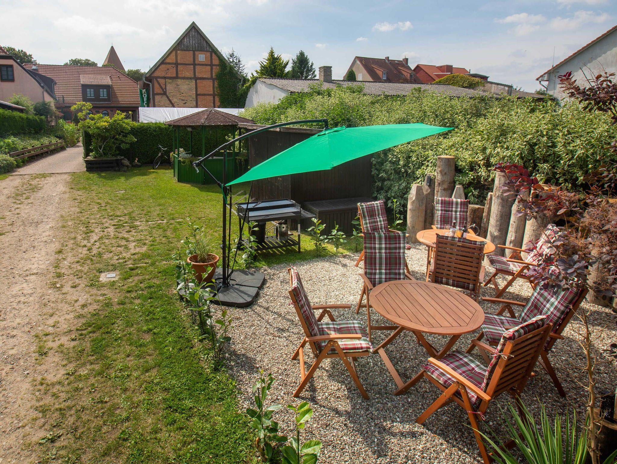 Vom Marktplatz aus gelangen Sie auf einen ruhigen Drei-Seiten-Hof. Im Innenhof befindet sich eine Fachwerkscheune. Des Weiteren die Parkplätze und eine Sitz-/Grillecke für unsere Gäste.