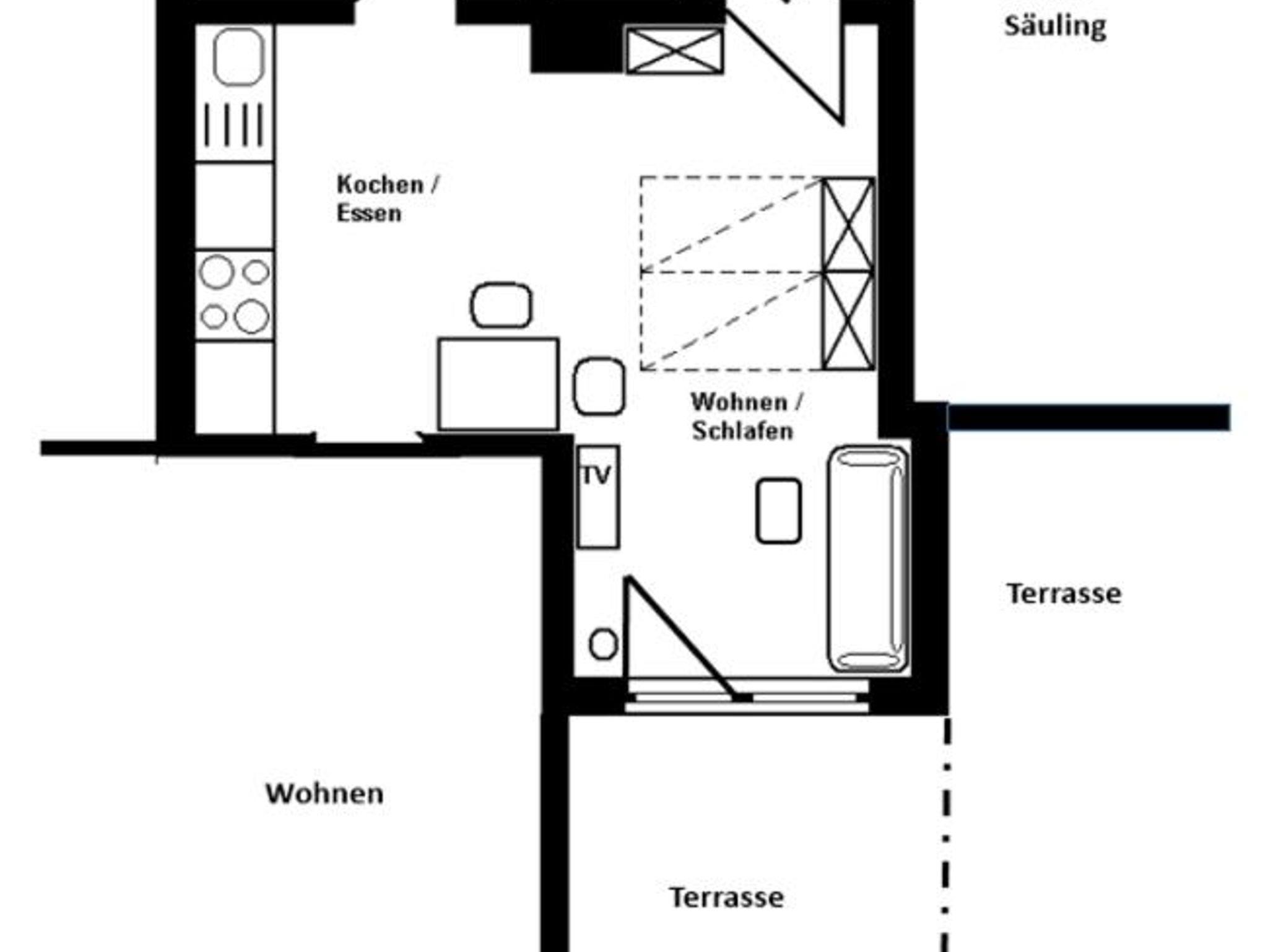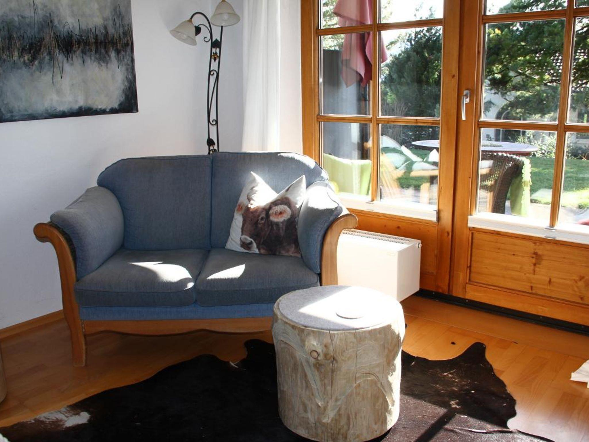 Appartement Thaneller mit Wohn/Schlafraum, Kochzeile, Dusche/WC, Südterrasse im Gartengeschoss (Hanglage)mit Blick auf die Lechtaler Alpen, Sat-TV, Stereoanlage.Leistungen der KönigsCard