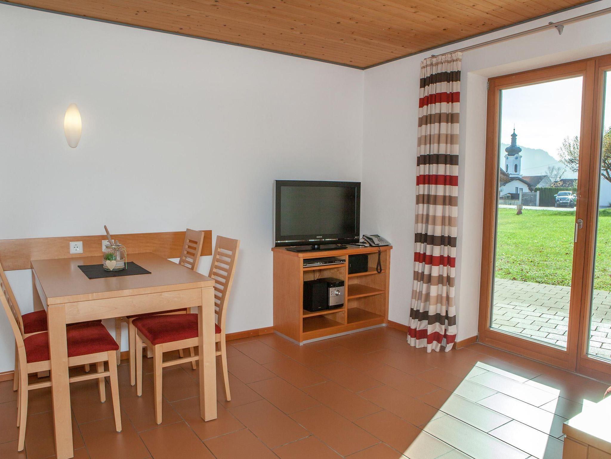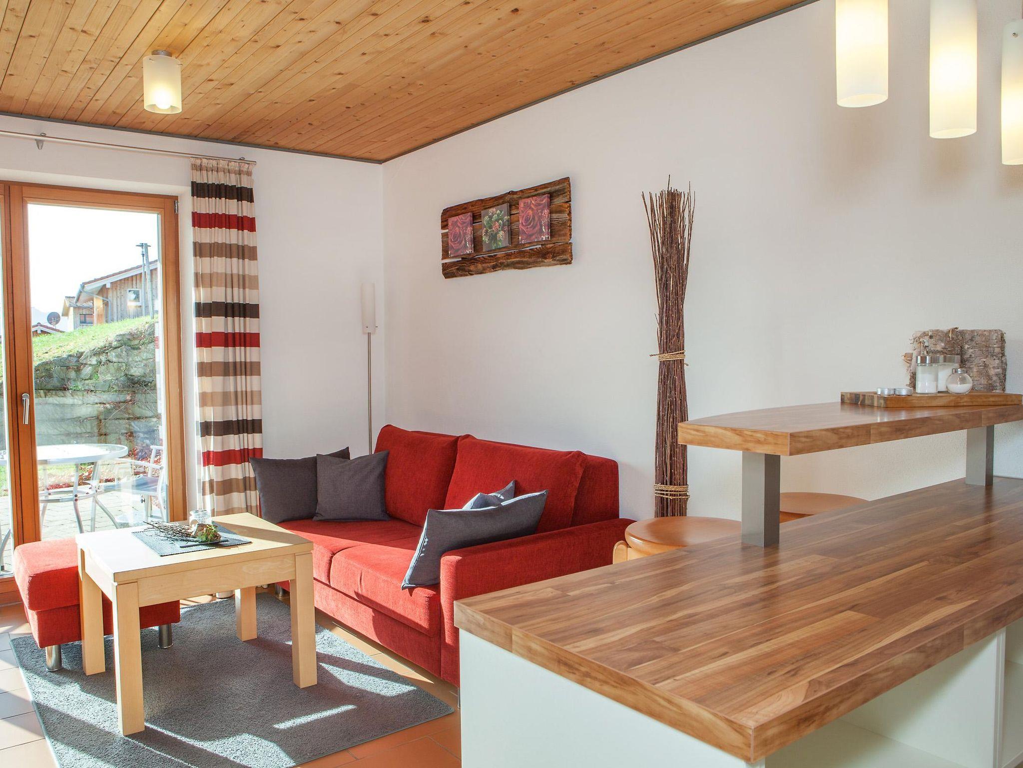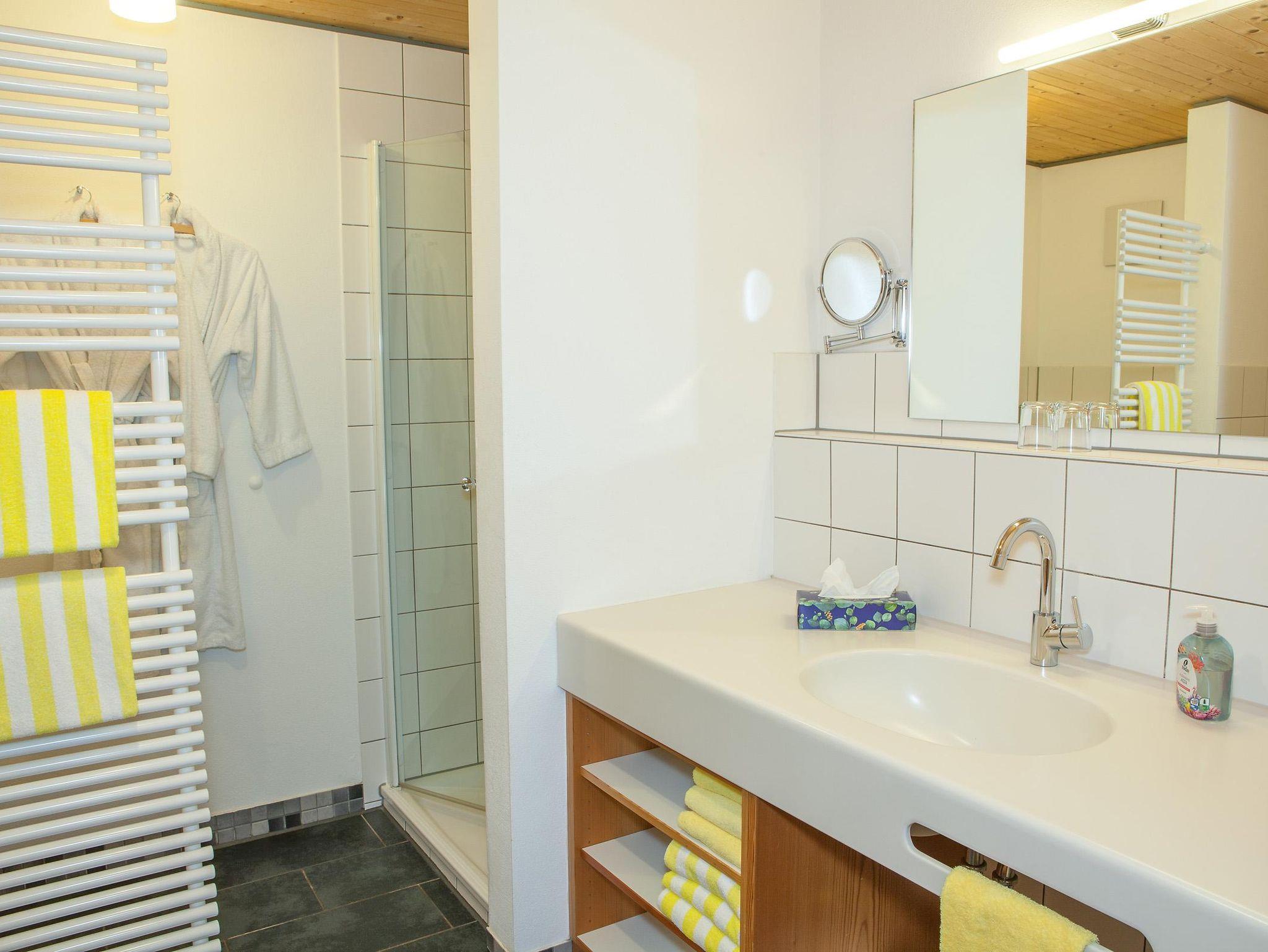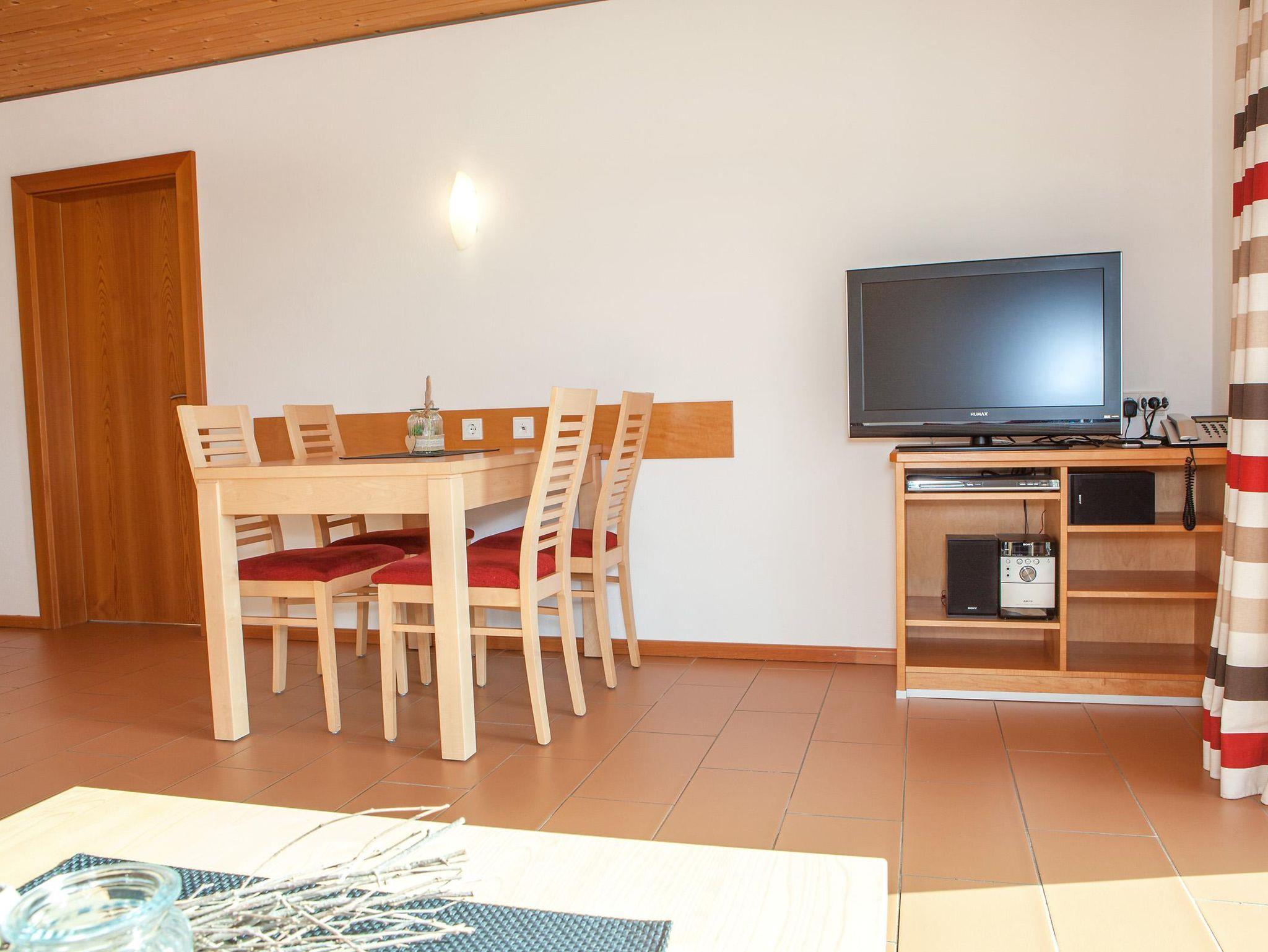 Moderne Ferienwohnung mit Terrasse und Bergblick. Voll ausgestattete Küche mit Spülmaschine, Backofen und Mikrowelle, Wohnbereich mit TV, Telefon und W-Lan, Schlafzimmer mit Doppelbett und Safe, Badezimmer mit Dusche, Badewanne, Fön und Kosmetikspiegel.