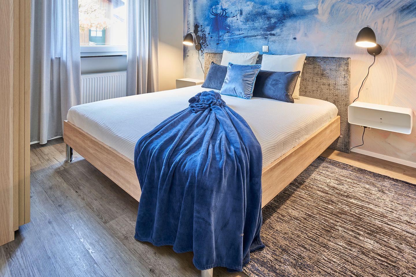 Die Schlafzimmer sind jeweils mit einem Doppelbett (1,80 m x 2,00 m) und einem Kleiderschrank ausgestattet.