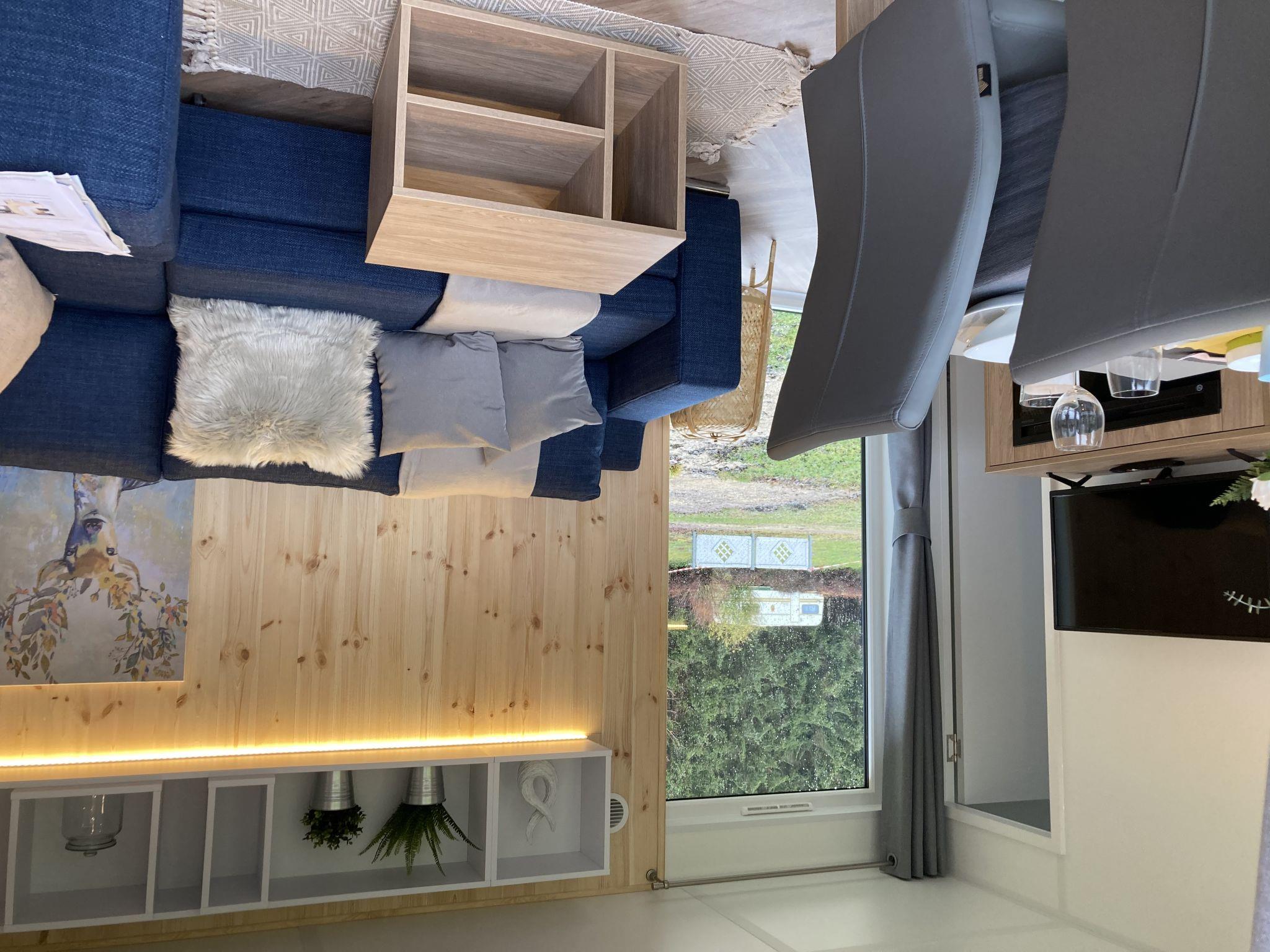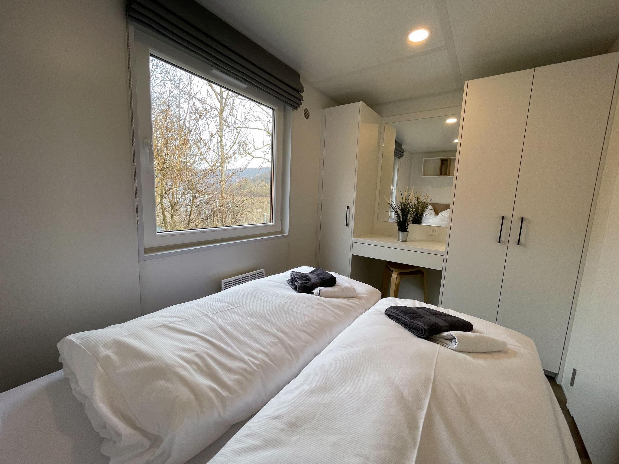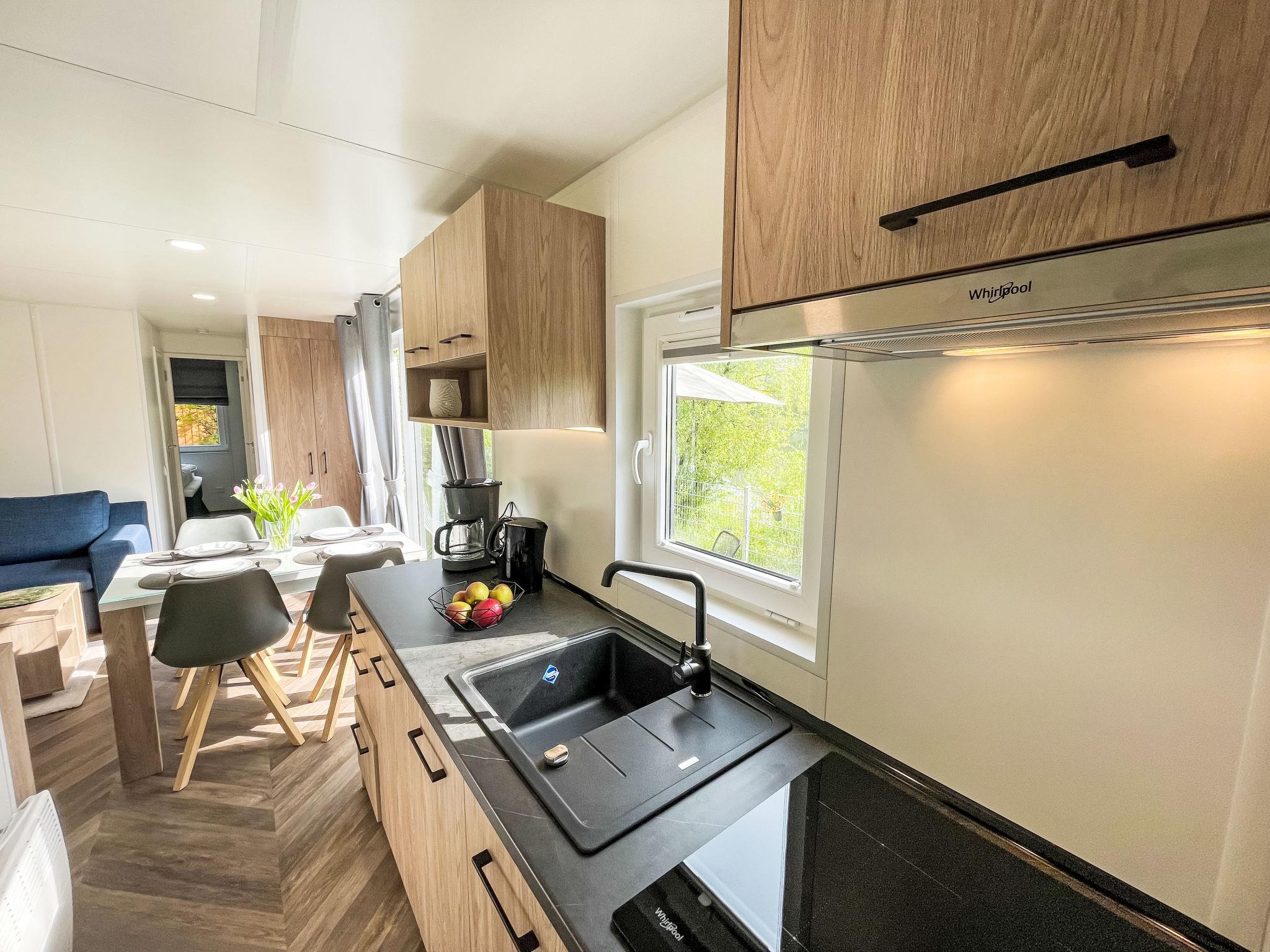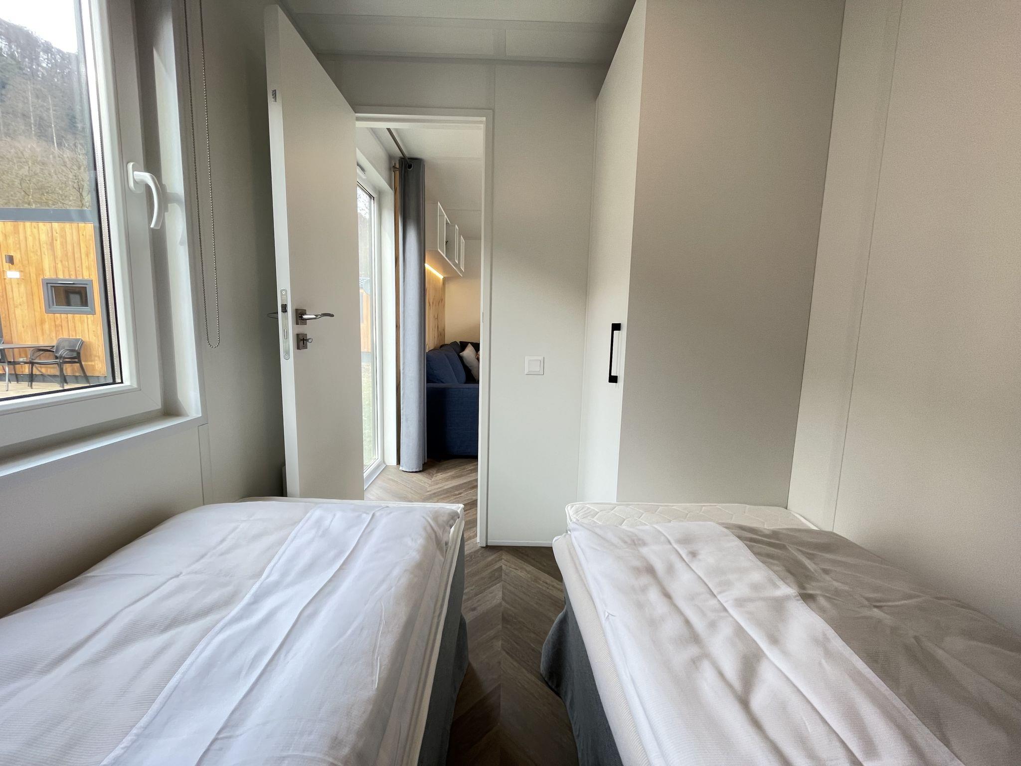 "Tiny Haus Altmühlblick", 3-room mobile home 32 m2, on the ground floor. Modern and cosy furnishings: living/sleeping room with 1 sofabed (120 cm, length 170 cm), dining table and satellite TV (flat screen). Exit to the terrace. 1 room with 1 french bed (140 cm, length 200 cm). 1 room with 2 beds (80 cm, length 200 cm). Open kitchen (4 ceramic glass hob hotplates, kettle, freezer, electric coffee machine). Shower/WC. Electric heating. Small terrace. Terrace furniture. Beautiful view of the river. Parking (1 car) at 50 m. Please note: suitable for families. Non-smoking house. Smoke alarm, fire extinguisher. Bed layout is flexible. There are more sleeping options available than the maximum number of people allowed which may, however, not be exceeded.