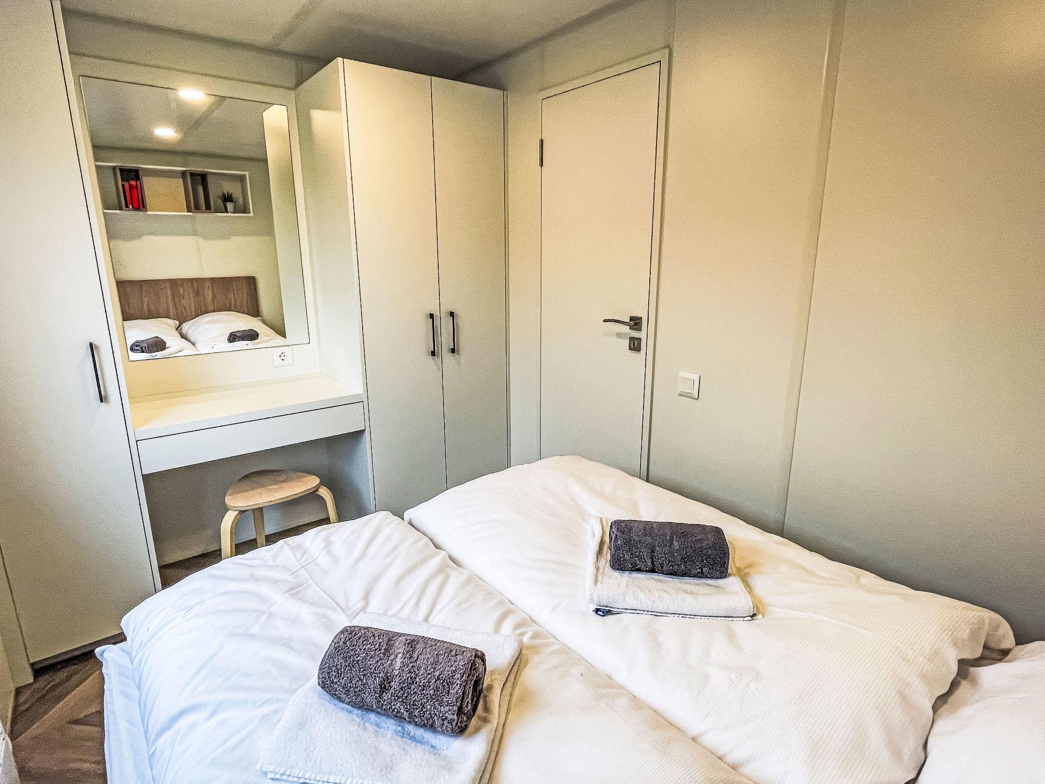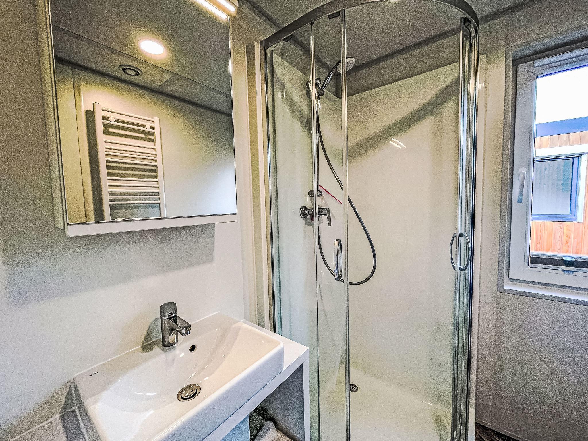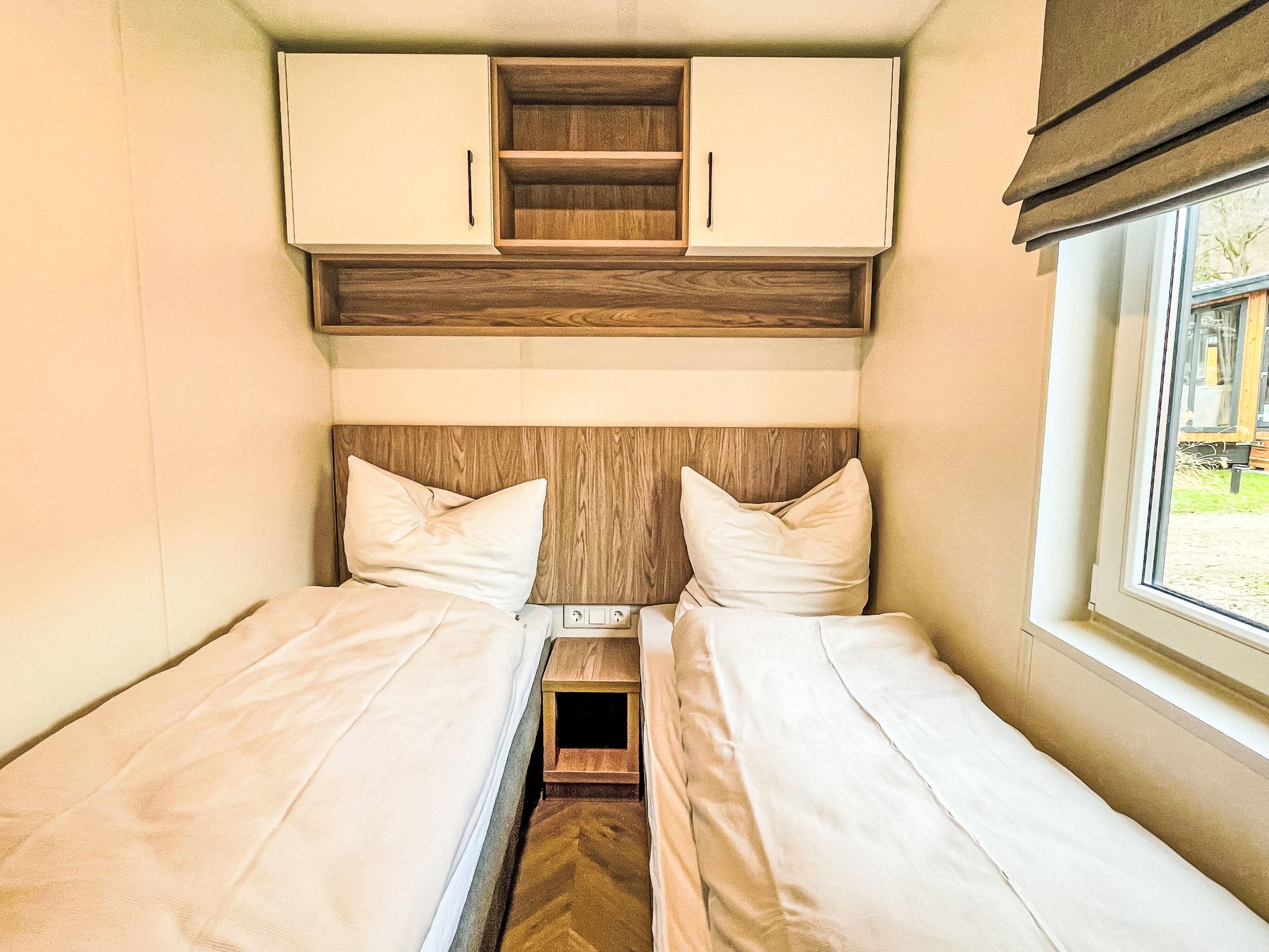 "Tiny Haus Villa Sunrise", 3-room mobile home 32 m2. Cosy furnishings: living room with satellite TV (flat screen). Exit to the terrace. 1 room with 1 french bed (140 cm, length 200 cm). 1 room with 2 beds (80 cm, length 200 cm). Kitchenette (4 ceramic glass hob hotplates, kettle, electric coffee machine). Shower/WC. Electric heating. Terrace. Terrace furniture. Facilities: hair dryer. Parking (1 car) at 30 m. Please note: non-smoking house. Smoke alarm.