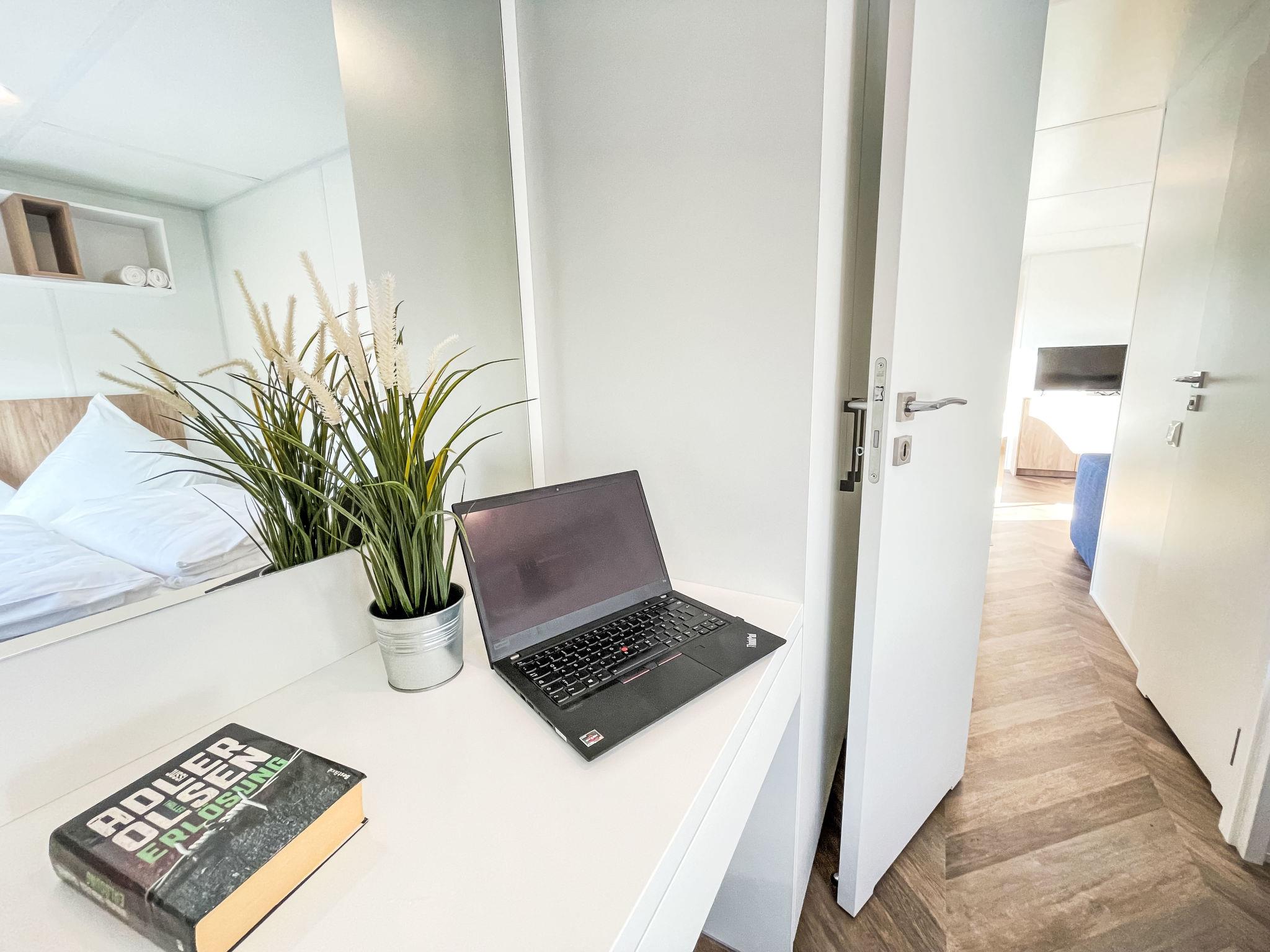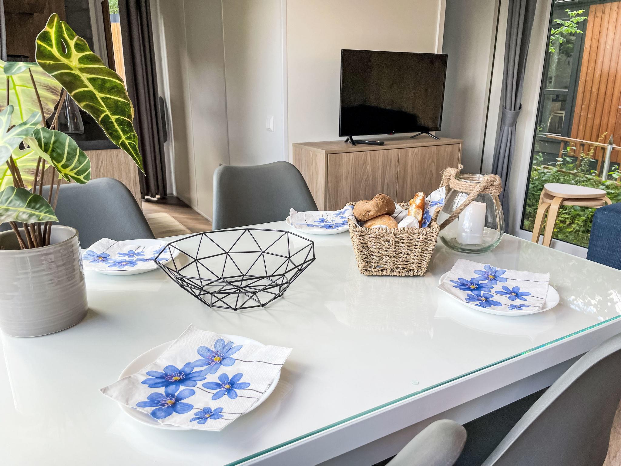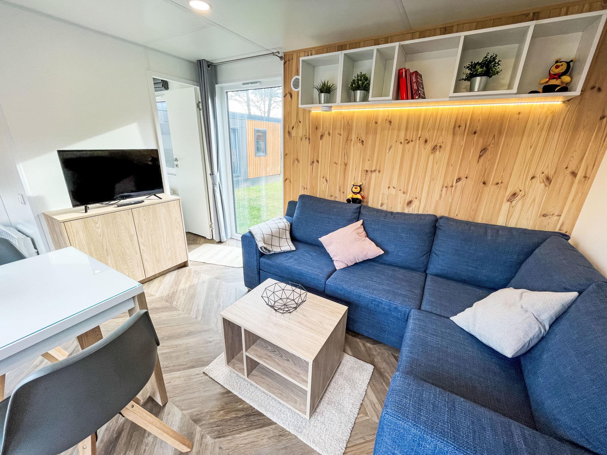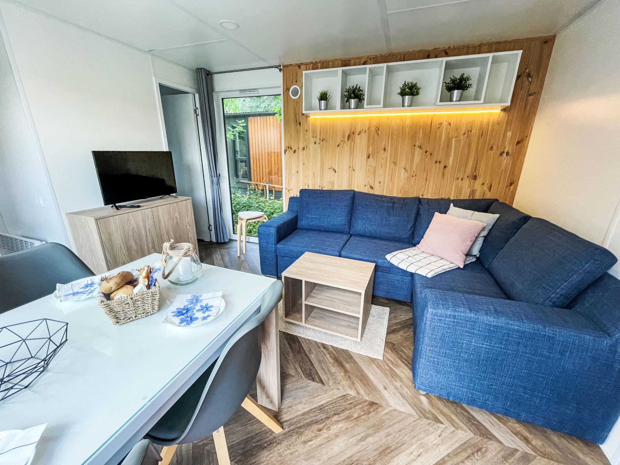 "Tiny Haus Limmer", 3-room mobile home 32 m2. Cosy furnishings: living/sleeping room with (120 cm, length 170 cm), satellite TV. Exit to the terrace. 1 room with 1 french bed (140 cm, length 190 cm). 1 room with 2 beds (70 cm, length 190 cm). Open kitchen (4 ceramic glass hob hotplates, kettle, electric coffee machine). Shower, sep. WC. Electric heating. Small terrace. Terrace furniture. Parking at the house. Please note: non-smoking house.