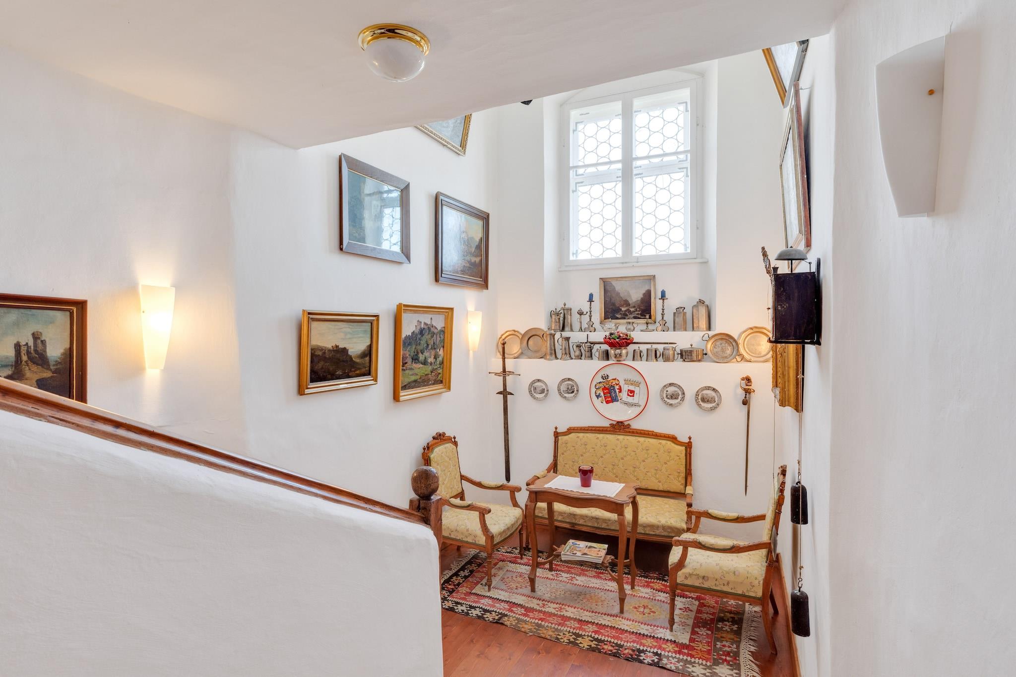 Undslipp hverdagens travlhed og nyd den rolige og eksklusive suite i en betagende barok præstegård på den smukt anlagte slotsgrund i Riedenburg – ideelt for pensionister og kunstelskere. Den historiske gårdhave, bygget i 1722, fremkalder charmen fra italienske paladser og skaber en rolig og elegant atmosfære. Indenfor finder du antikke møbler, himmelsenge, et marmorbadeværelse og en hyggelig pejs – en unik blanding af historie og moderne komfort til din ferie i Altmühl-dalen. Kapellet på stedet kan benyttes efter anmodning. Slap af midt i naturens absolutte ro på terrasserne i slotshaven, en fredelig "hvid" oase. Hvis du ønsker at kombinere kultur og natur, finder du de perfekte omgivelser her. Din indkvartering ligger direkte ved "Tysklands smukkeste vandresti 2012", Altmühltal Panorama Trail, samt den berømte 167 km lange Altmühltal-cykelsti fra Gunzenhausen til Kelheim. Nærliggende caféer og restauranter tilbyder lækker regional mad. Børn under ti år er ikke tilladt for et fredeligt ophold. Bare 20 km væk kan golfentusiaster besøge de nærliggende golfbaner, mens historieinteresserede kan udforske Rosenburg Slot, Plankstetten Kloster og den charmerende by Riedenburg. Gå ikke glip af den betagende udsigt fra Befrielseshallen i Kelheim eller en naturskøn Donau-sejltur gennem den berømte Donaukløft.