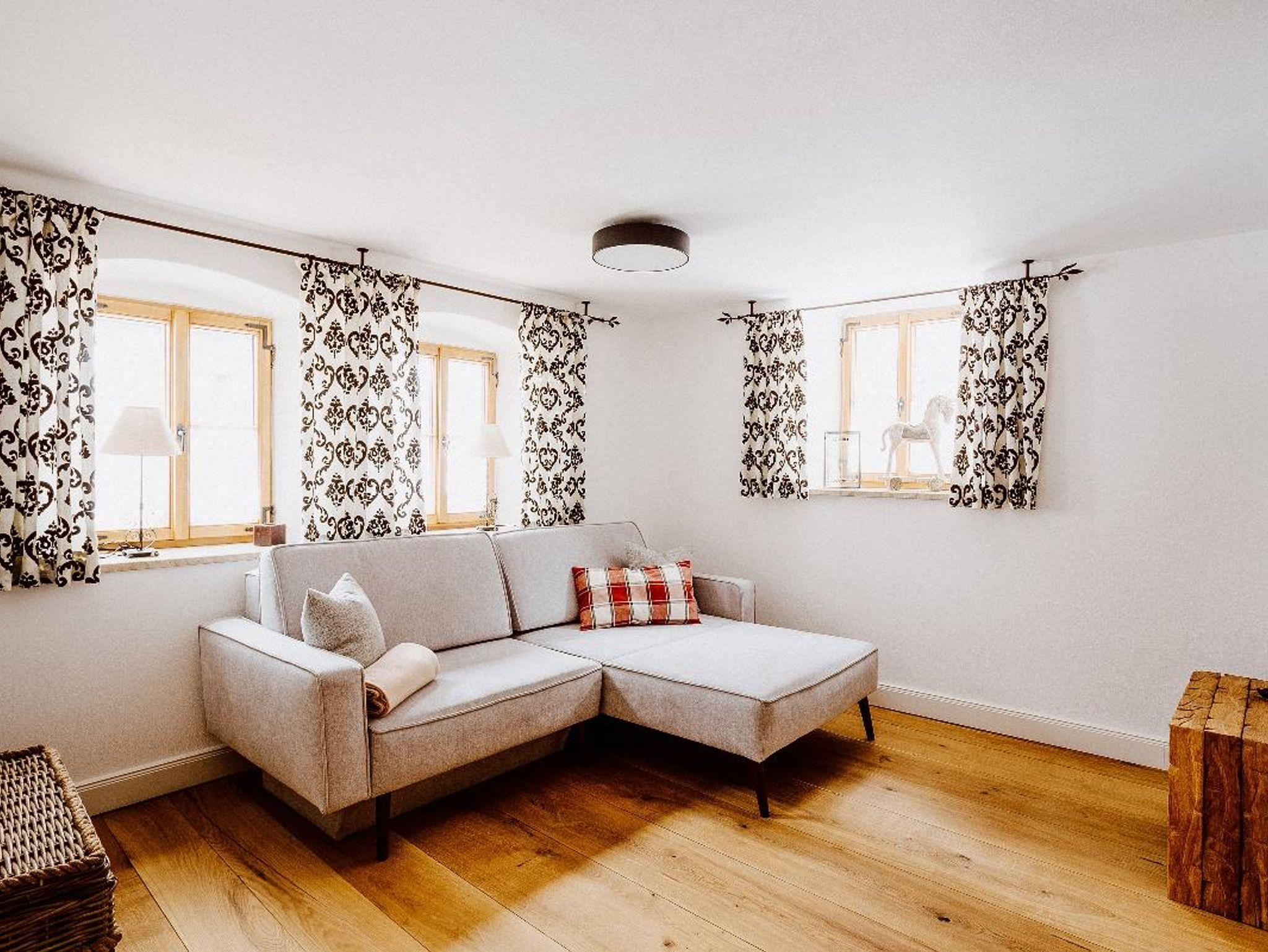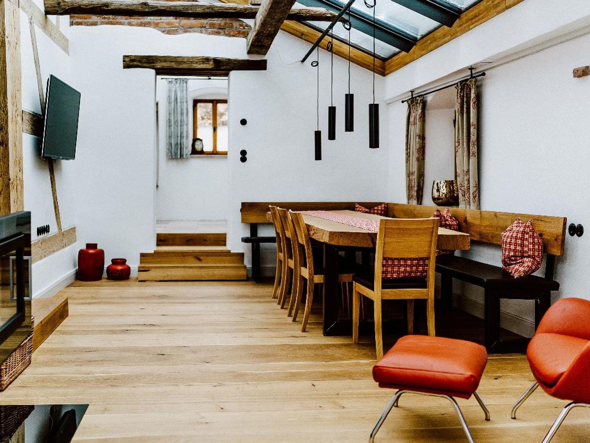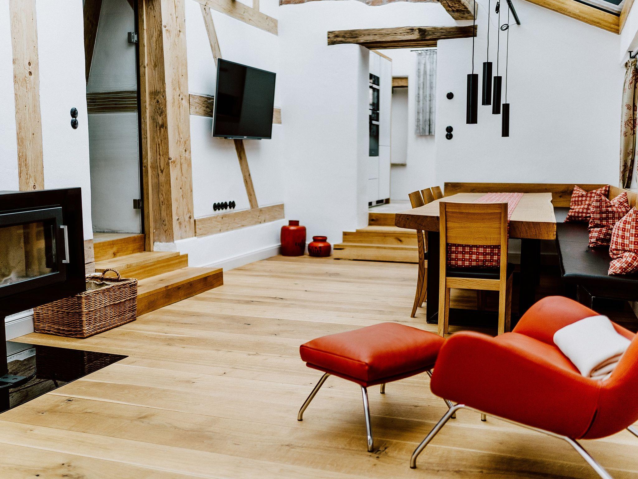 Das Badezimmer im Erdgeschoss verfügt über eine freistehende Badewanne, Dusche und Toilette. Die Badezimmer im Obergeschoss verfügen über eine Badewanne mit integrierter Dusche und Toilette. Die Couch im Wohnzimmer kann ebenso als zusätzlicher Schlafplatz genutzt werden. Alle Zimmer sind mit einem Fernseher ausgestattet und im Haus steht kostenloses WLAN zur Verfügung. Die Küche verfügt über einen Kühlschrank mit Gefrierfächer, Backofen, Herd, Kaffeevollautomat, Toaster, Geschirr, Gläser und Besteck.