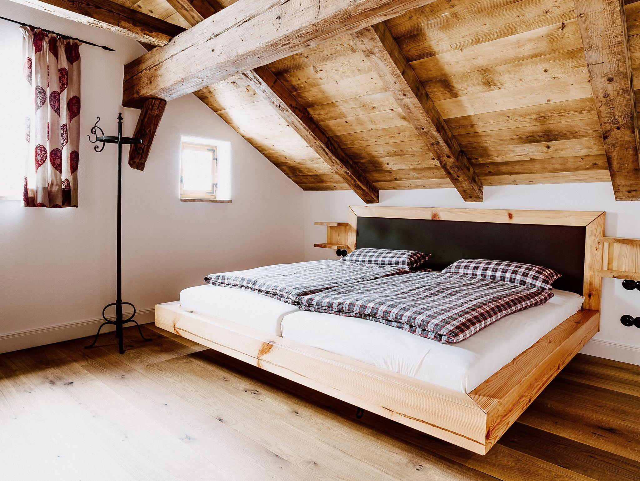 Das Jura-Chalet bietet 3 Schlafzimmer mit je einem Doppelbett und jeweils einem eigenen Badezimmer.