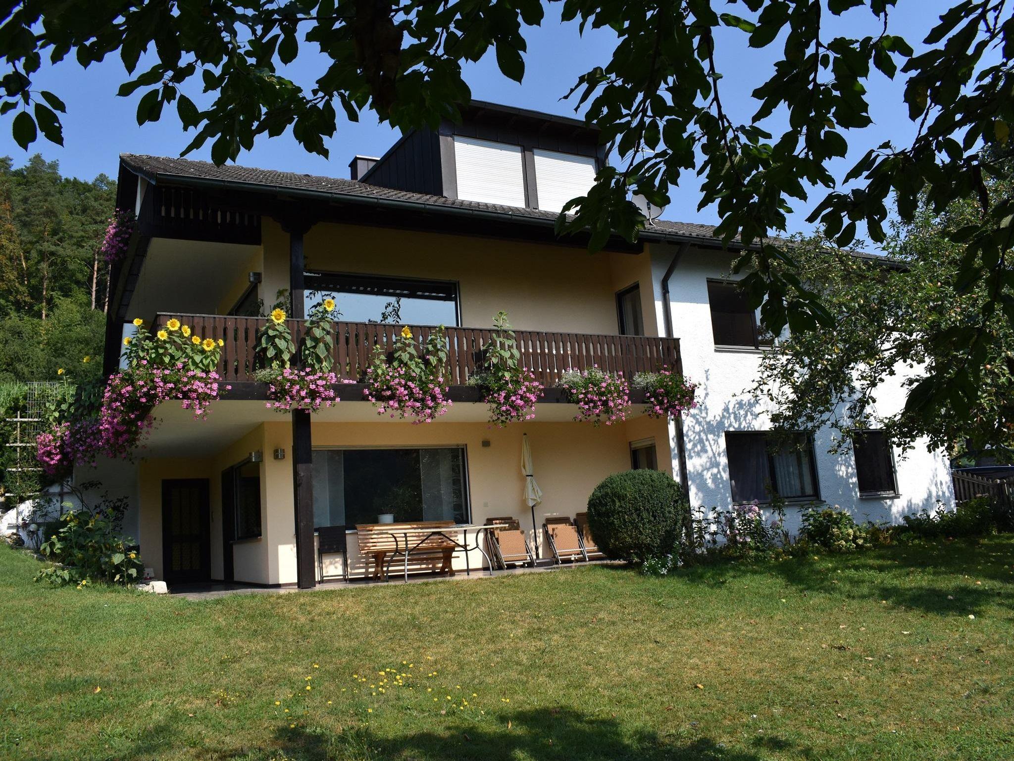 Herzlich willkommen in unserer großen und gemütlichen Ferienwohnung. Genießen Sie das besondere Urlaubsflair inmitten herrlicher Natur bei familiärer Atmosphäre. Separater, ebenerdiger Eingang, 2 Schlafzimmer, Wohnzimmer mit komplett eingerichteter Küchenzeile, Polster- und Essecke, Bad/WC mit barrierefreier Dusche. Möblierte, überdachte Terrasse mit großem Garten, Pkw- Stellplatz, Kinderbett. Sat-HD-TV, Radio/CD, Fön, Grillmöglichkeit. Sommerrodelbahn und Badesee in der Nähe. Kostenloser Wlan-Anschluss. Zentrale Lage mit idealem Ausgangspunkt für Wanderungen, Radtouren, Angeln, Nordic Walking.