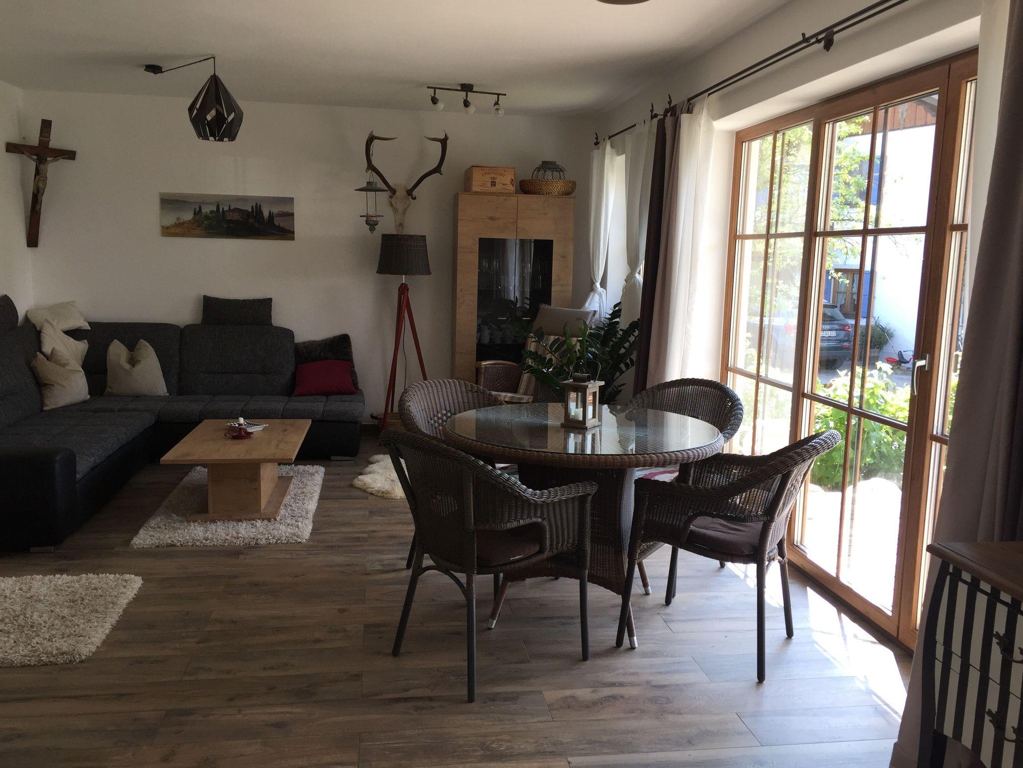 Unsere Ferienwohnungen bieten von Terrasse oder Balkon einen Blick auf die Chiemgauer Alpen. Auf 105qm bieten unsere Wohneinheiten 2 Schlafzimmer, ein Bad mit Badewanne und Dusche, einen Flachbild-Sat-TV und ein großes Wohnzimmer. Eine vollausgestattete Küche und auch eine Waschmaschine gehören zu beiden Wohnungen. Handtücher und Bettwäsche werden im Apartment gestellt.