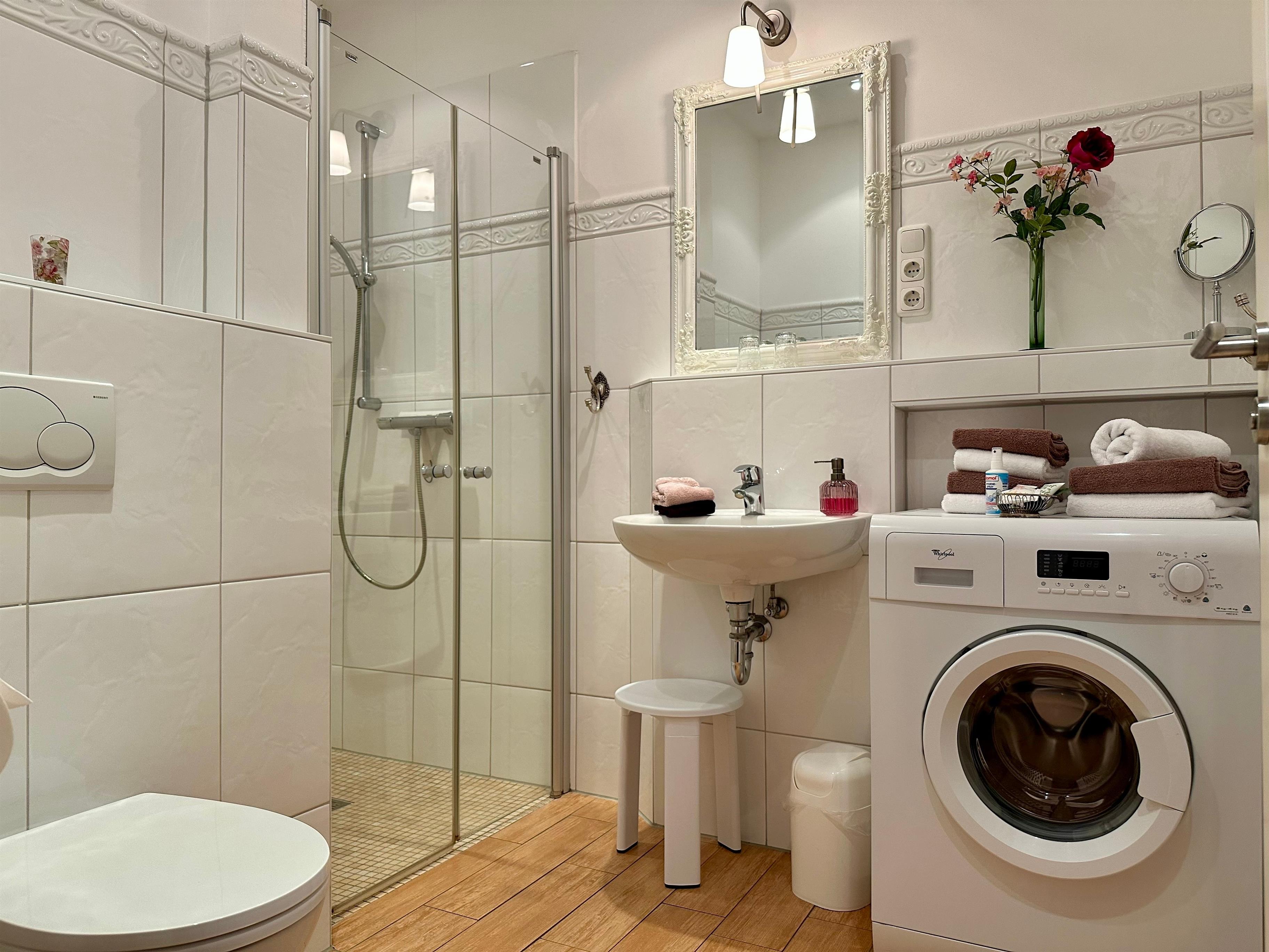 Im Sommer 2012 wurden im ehemaligen Pferdestall des Guts drei moderne, individuelle und liebevoll ausgestattete Premium-Ferienwohnungen eingerichtet. Diese Ferienwohnungen befinden sich in einem Gebäude, das in Einzellage direkt oberhalb des mit Seerosen bewachsenen Gartenteiches liegt. Von dort aus schweift der Blick über den Teich in den Guts-Park mit majestätischen, alten Bäumen, in den Buchenhain und weiter über die Felder. Ein magischer Sitz- und Grillplatz im Buchenwald und ein Steinlabyrinth geben Ihnen ein Gefühl von Frieden und 'angekommen sein'. Alle Ferienwohnungen sind hochwertig ausgestattet mit Internet über WLAN, Satellitenfernsehen und einer Stereokompaktanlage. Die Wohnung 'Romantika' ist 45 m2 groß und eine bezaubernde Unterkunft für bis zu 2 Personen. Eine gemütliche Wohnküche mit Essecke und ein Ausziehsofa vor dem Kamin laden zu kuscheligen Stunden vor loderndem Kaminfeuer ein. Die romantische Atmosphäre wird unterstrichen durch das harmonische Zusammenspiel von zarten Flieder- und Rosétönen mit hochwertigen floralen Stoffen. Einzigartig ist das märchenhafte Doppel-Alkoven-Bett mit Blick in den Sternenhimmel, der einem hilft, in sanfte Träume zu verfallen. Das in weiß gehaltene Badezimmer mit ebenerdiger Duschkabine vollendet das harmonische Ambiente. Zwei Terrassen ermöglichen dem Gast, mit dem Lauf der Sonne den Tag zu beginnen und zu beenden.