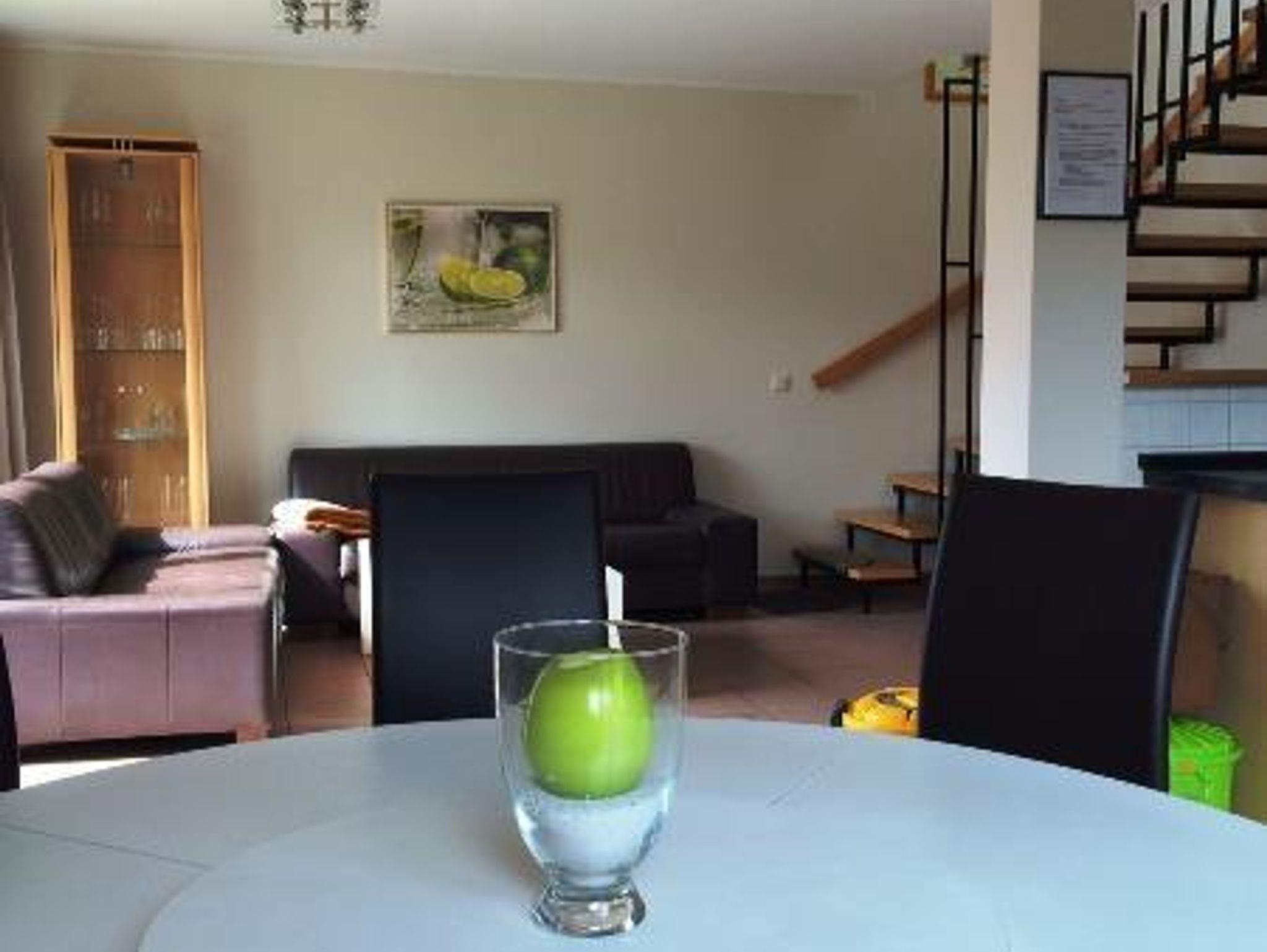 Im Erdgeschoss befindet sich ein großer Wohn- Essraum mit einer kompletten Küche mit Spülmaschine, ein Bad und 1 Doppelzimmer. Im Obergeschoss sind 3 Schlafzimmer für insgesamt 6-7 Personen und ein Bad (jeweils mit Dusche und WC). Sonstiges: Sat-TV, Musikanlage, Telefon, Hochstuhl, Babybett, Waschmaschine/Trockner,Fußbodenheizung.