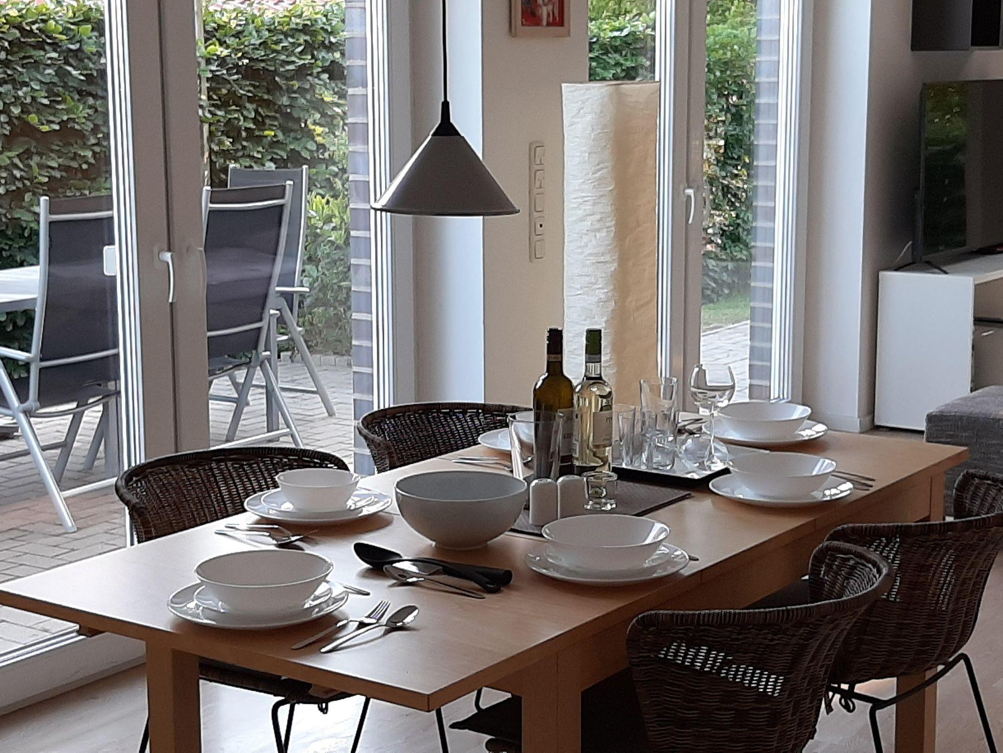 Die Ferienwohnung besteht aus einem großen, hellen und gemütlich eingerichtetem Wohn- und Essbereich, sowie einem Schlafzimmer und Badezimmer.