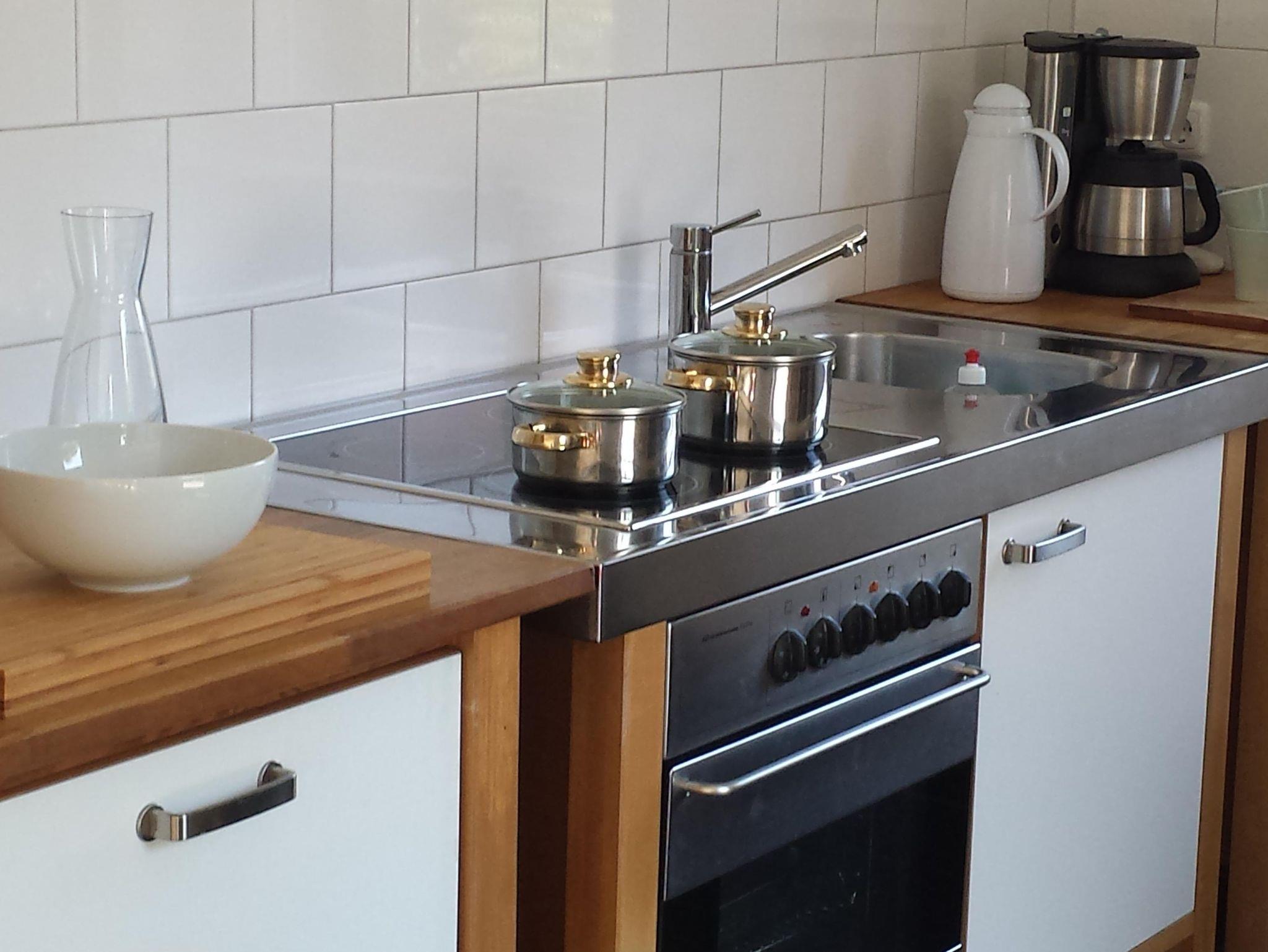 Als Schlafgelegenheiten stehen 3 Einzelbetten (0,80x2,00m), die individuell zusammengestellt werden können und ein gemütliches Schlafsofa im Wohnbereich für zwei weitere Personen (1,40x2,00m) zur Verfügung.