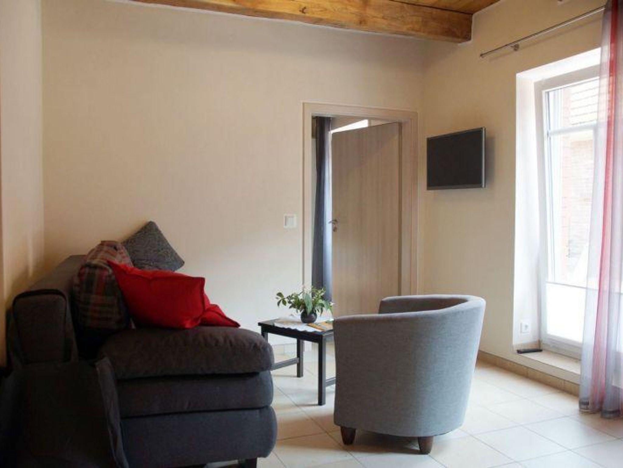 Die Wohnung verfügt über ein Wohn-Essbereich mit Komfortschlafcouch und voll ausgestatteter Küche, 1 Schlafzimmer mit Doppelbett (zwei Einzelmatratzen), 1 Bad mit Dusche, WC und Haartrockner, 1 Terrasse mit Gartenmöbel. Die Wohnung ist mit Fußbodenheizung ausgestattet.