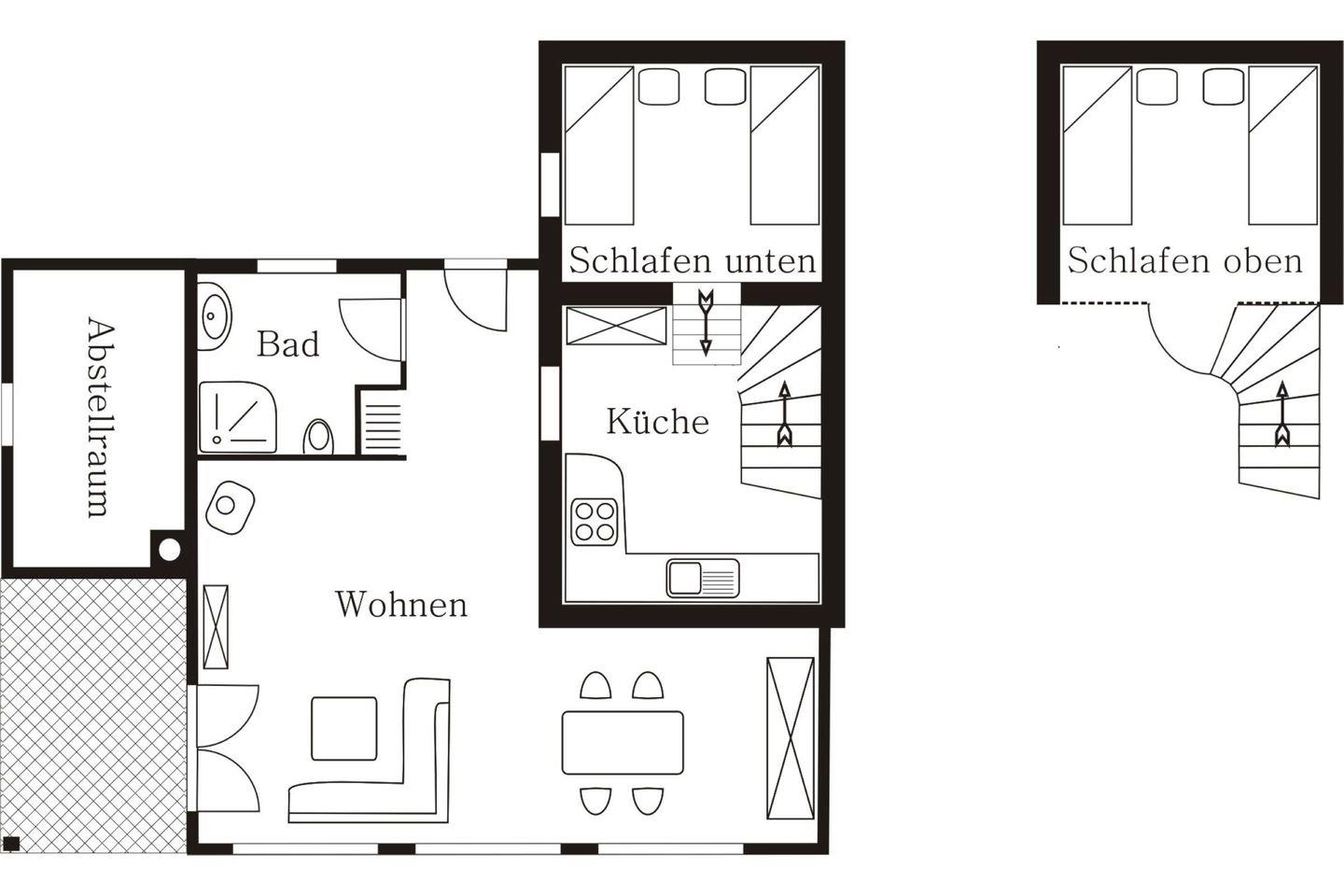 Sanddornhaus, 64 m² auf 2 Ebenen für 4+1 Pers., 1 Schlafzimmer, 1 Schlafgalerie