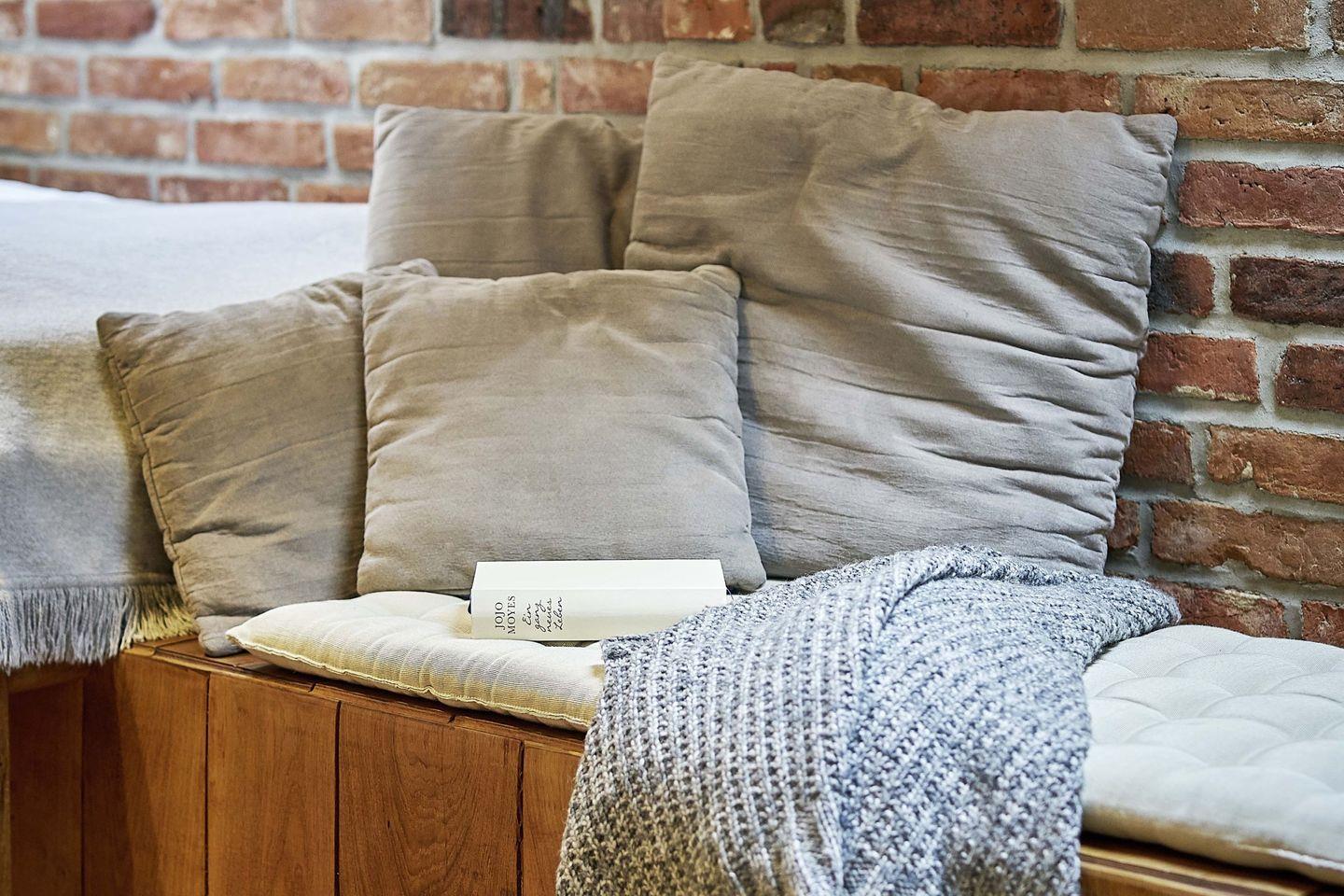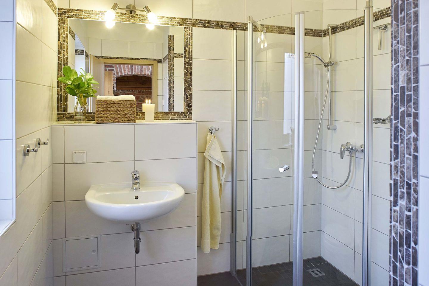Lindenhaus mit 62 m² auf 2 Ebenen für 4+1 Personen. Zur Ausstattung gehören 1 Schlafzimmer mit 2 Betten und 1 Schlafgalerie mit 2 Betten oder Doppelbett, ein lichtdurchfluteter Wohnbereich mit historischem Feldsteingemäuer mit Kaminofen, Smart-TV, Musikanlage, Essecke, gemütlichem Ecksofa, Bad mit bodengleicher Dusche und WC, Einbauküche mit Geschirrspüler, Herd, Backofen, Kühlschrank mit Tiefkühlfach, Waschmaschine und überdachte Terrasse mit Gartenmöbeln und kleinem eigenen Garten.