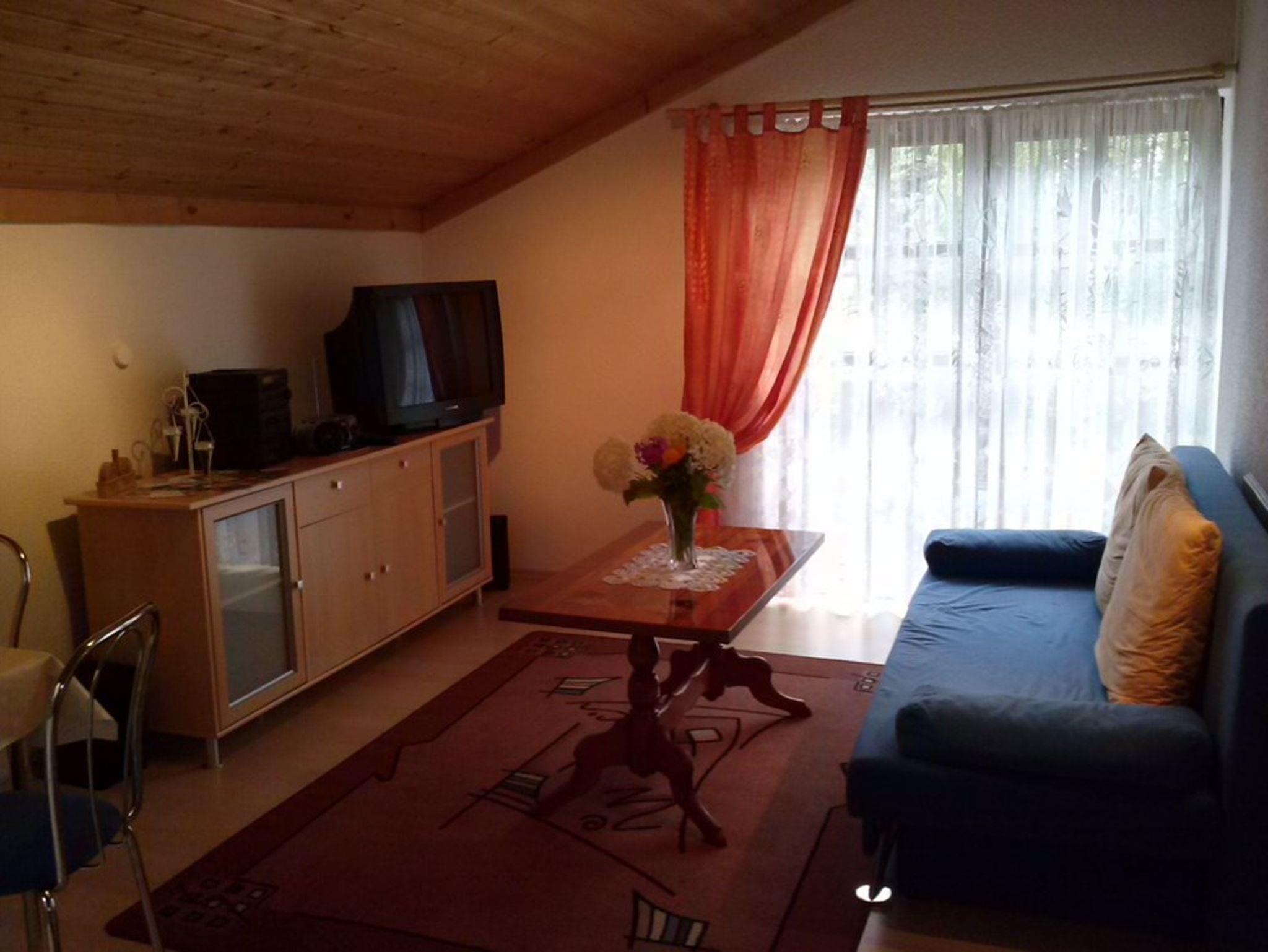 schöne Ferienwohnung, gemütlich eingerichtet für 2 Personen. (zus.Aufbettung möglich) Wohnzimmer mit abgetrennter Kochnische mit Radio-und SAT-TV und Balkon, Schlafzimmer mit abgetrennter Dusche und WC. Bettwäsche und Handtücher werden gestellt. Stellplatz vorhanden.