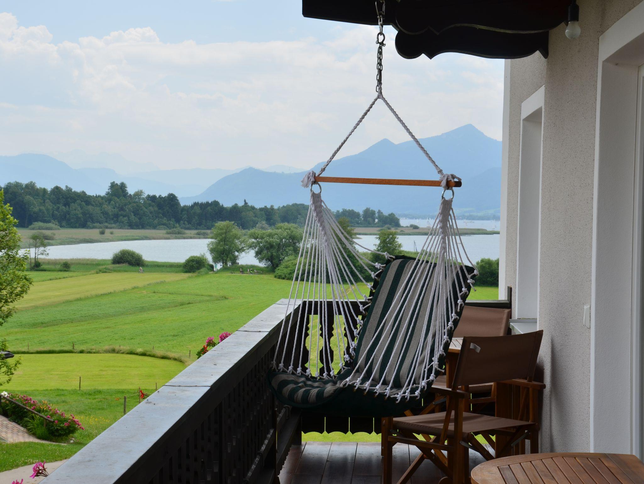 Die helle und liebevoll eingerichtete Ferienwohnung genießt einen spektakulären, unverbauten Blick auf den Chiemsee und die Chiemgauer Alpenkette. Sie bietet Platz für zwei Personen und verfügt über eine voll ausgestattete Küche, sowie zwei Balkone nach Süden, sowie Osten. Weiteres: Freies W-LAN, internetfähiger SAT-TV, Doppelbett 180 x 200 cm,Kaffeemaschine, Wasserkocher, Kofferbock, Kleiderschrank. Auf Anfrage Kinderbett und Hochstuhl.