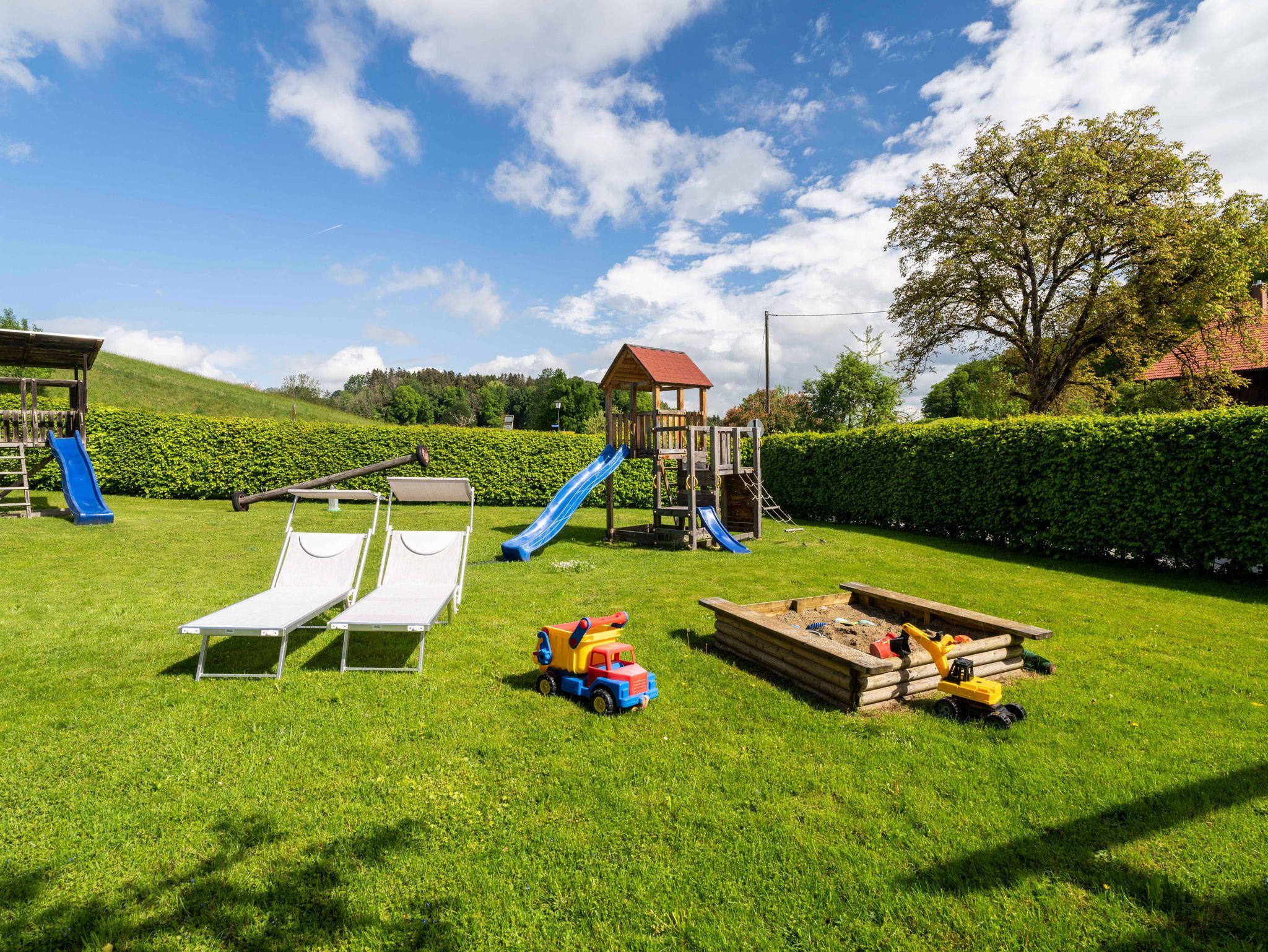 Während sich die Kinder auf dem Trampolin, der Schaukel oder im Sandkasten austoben, genießen Eltern entspannte Stunden unter freiem Himmel – umgeben von der traumhaften Naturkulisse des Chiemgaus.