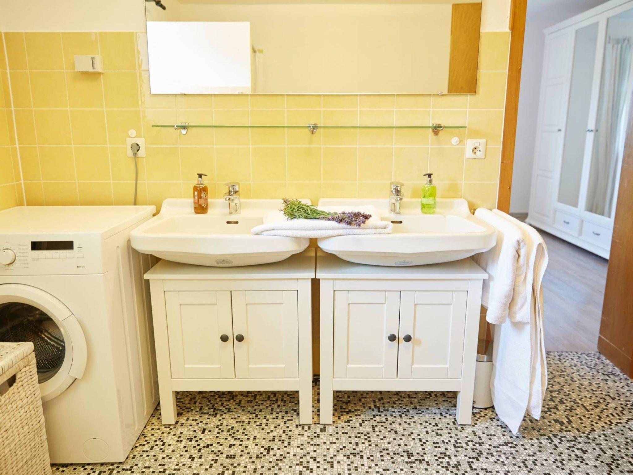 Das gemütlich eingerichtete Feriendomizil wurde mit viel Liebe zum Detail geplant und gestaltet. Viel Platz ist hier garantiert! Das Herzstück des Hauses bildet das lichtdurchflutete Wohnzimmer mit angrenzendem Essbereich, der zu geselligen Stunden einlädt. Genießen Sie den Ausblick vom Sofa des Wohnzimmers durch das große Panoramafenster über den See auf die Bergkette. Die an das Esszimmer angrenzende Küche bietet allen Komfort, den Sie für Ihren Urlaub benötigen. Im „SeenParadies“ steht eine Vielzahl von Essbereichen zur Verfügung: Ob Terrasse, überdachte Terrasse mit großem Esstisch beim Hauseingang, das große Esszimmer oder der kleine Esstisch in der separaten Küche, hier ist Gemütlichkeit und Geselligkeit angesagt. Sie möchten auf unterschiedlichen Etagen nächtigen? Kein Problem, denn auf jeder Etage befinden sich zwei Schlafzimmer. Das Erdgeschoss verfügt über ein Schlafzimmer mit Doppelbett und ein weiteres Schlafzimmer, welches mit zwei Einzelbetten und eigenem Waschbecken ausgestattet ist. Vervollständigt wird das Erdgeschoss mit einem großen Badezimmer, in welchem Sie Badewanne, Dusche, Doppelwaschbecken und Waschmaschine vorfinden und einem separaten WC. Im ersten Stockwerk finden Sie zwei weitere Schlafzimmer mit Doppelbett. Ergänzt wird diese Etage mit einem kleinen Badezimmer mit niedriger Dusche und einer kleinen Küche.