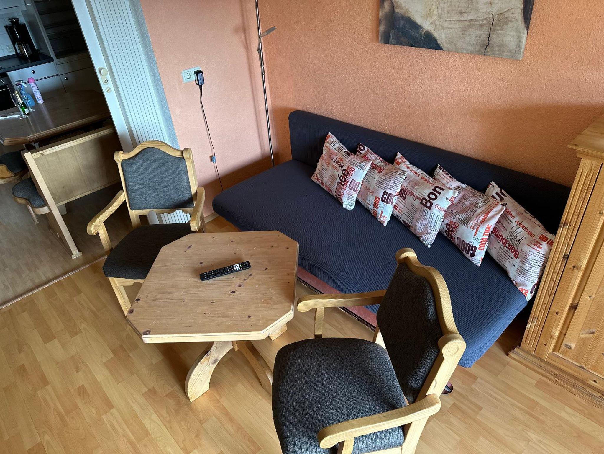 Ihre Ferienwohnung ist mit einer hochwertigen Küche, sowie einer schönen Essgruppe eingerichtet. Dieser Wohn-Küchenbereich kann vom Relax-/Schlafzimmer durch eine Trennwand abgetrennt werden. Dieser Relaxbereich ist liebevoll ausgestattet mit einem LCD/SAT-Fernseher und einem großen Doppelbett (1,80x2,00m) mit Funktionslattenrost. Das schöne Badezimmer verfügt über eine Badewanne mit Duschfunktion und WC sowie Kosmetikspiegel und Fön. Handtücher, Badetücher sowie Bade- und Duschlotion stellen wir unseren Gästen gerne zur Verfügung. Ihre Ferienwohnung ist vollausgestattet mit Hifi-Anlage, Kaffeemaschine, Mikrowelle, Wasserkocher und Toaster. Gerne legen wir für Sie Lesemagazine und eine Touristeninformations-Mappe aus. Außerdem verfügt die Ferienwohnung über einen eigenen Balkon mit Markise und Sitzmöglichkeiten. Ein hauseigener Parkplatz ist direkt vorm Haus verfügbar.