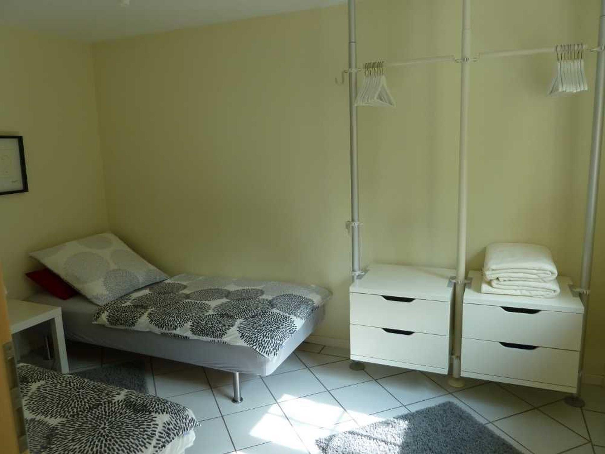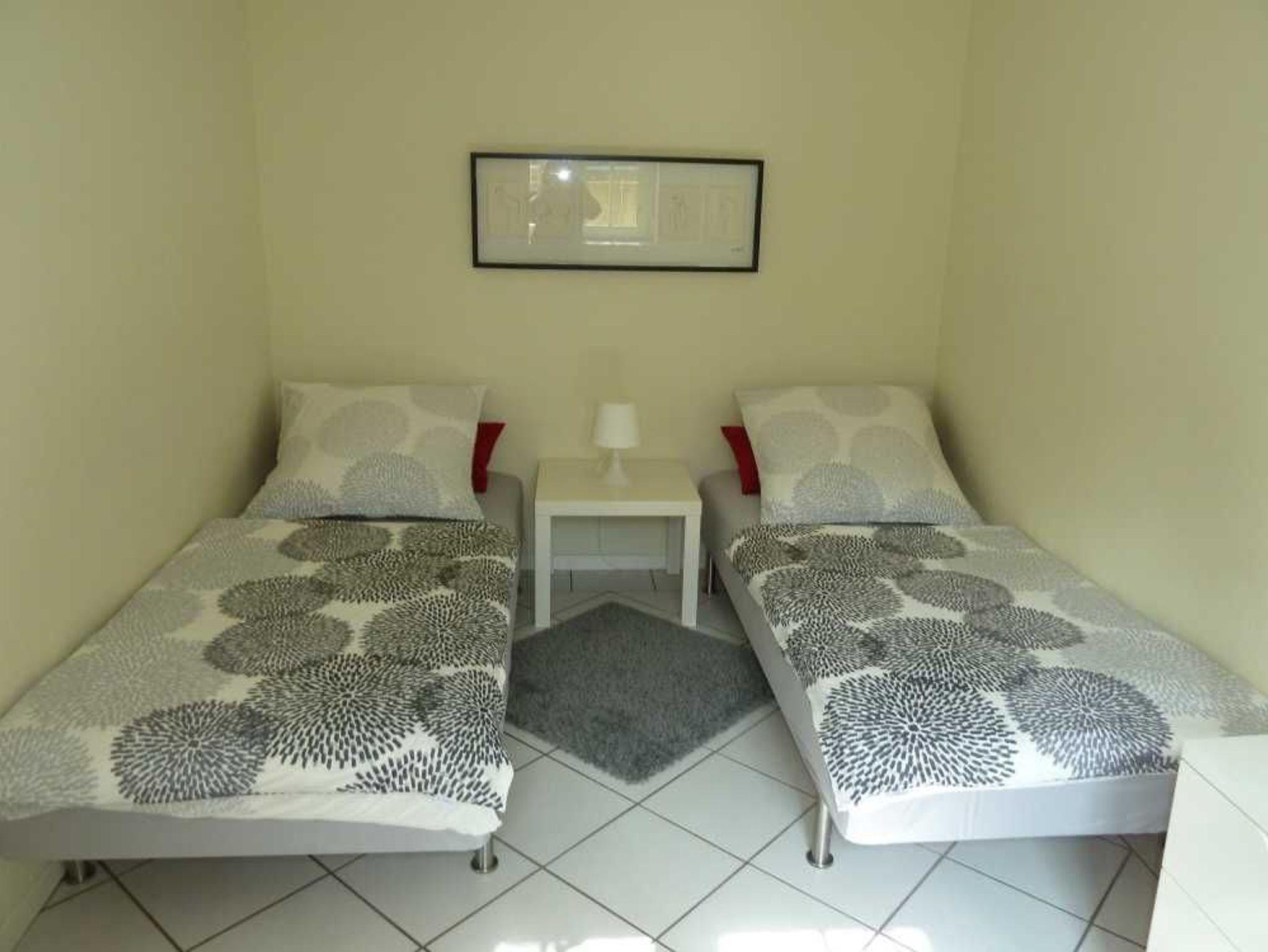 • einmal mit zwei Einzelbetten: 90 x 2,00. Die Betten sind natürlich bezogen,