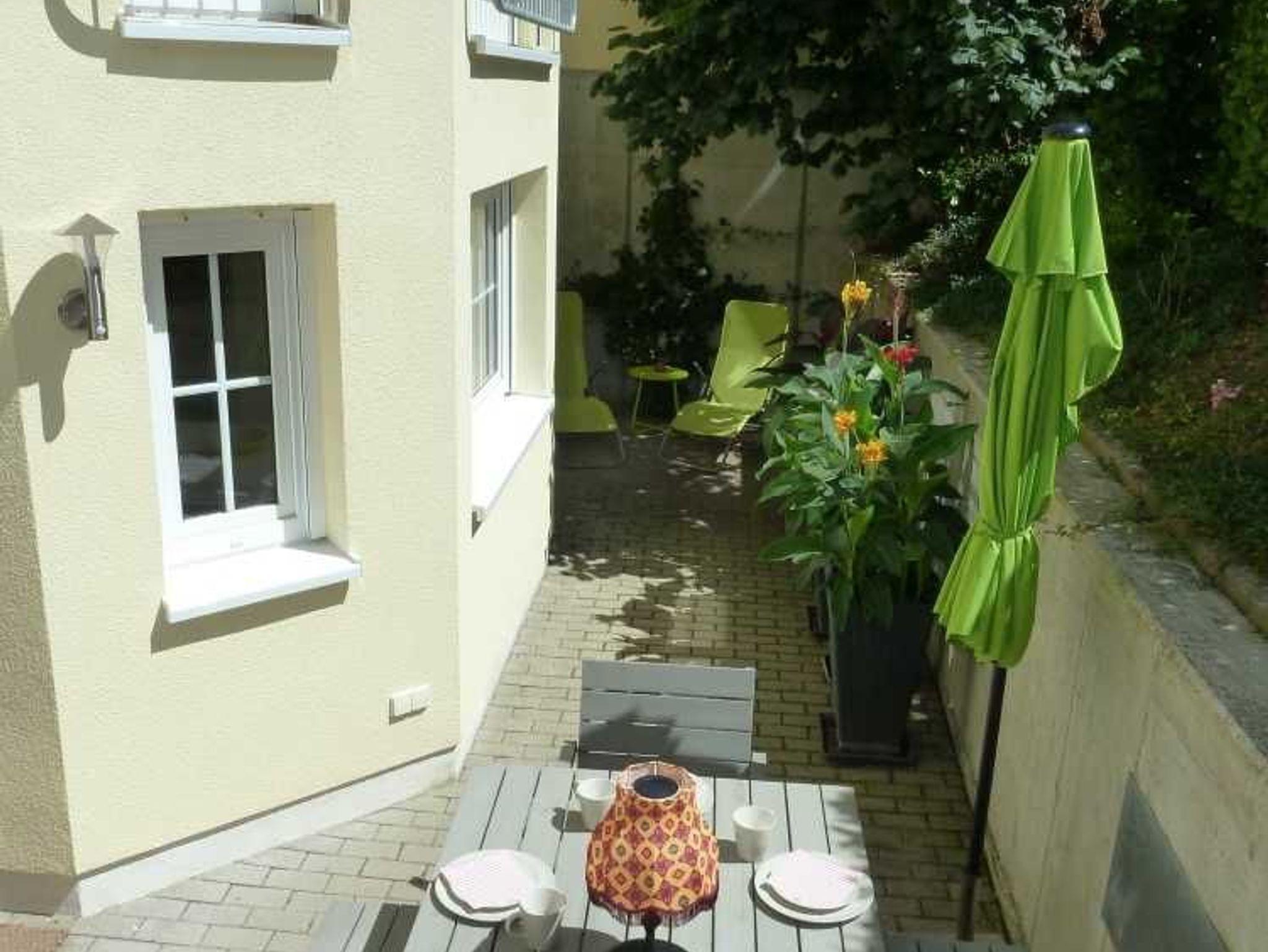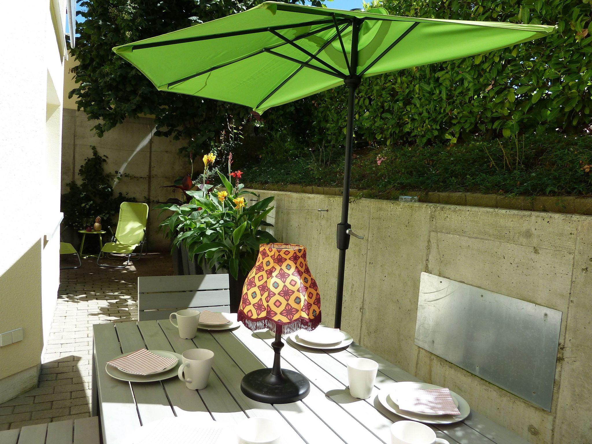 • Auf der großen privaten Terrasse können sie unterm Sonnenschirm, umgeben von viel Grün speisen, oder den Platz unterm Baum zur Entspannung nutzt.
