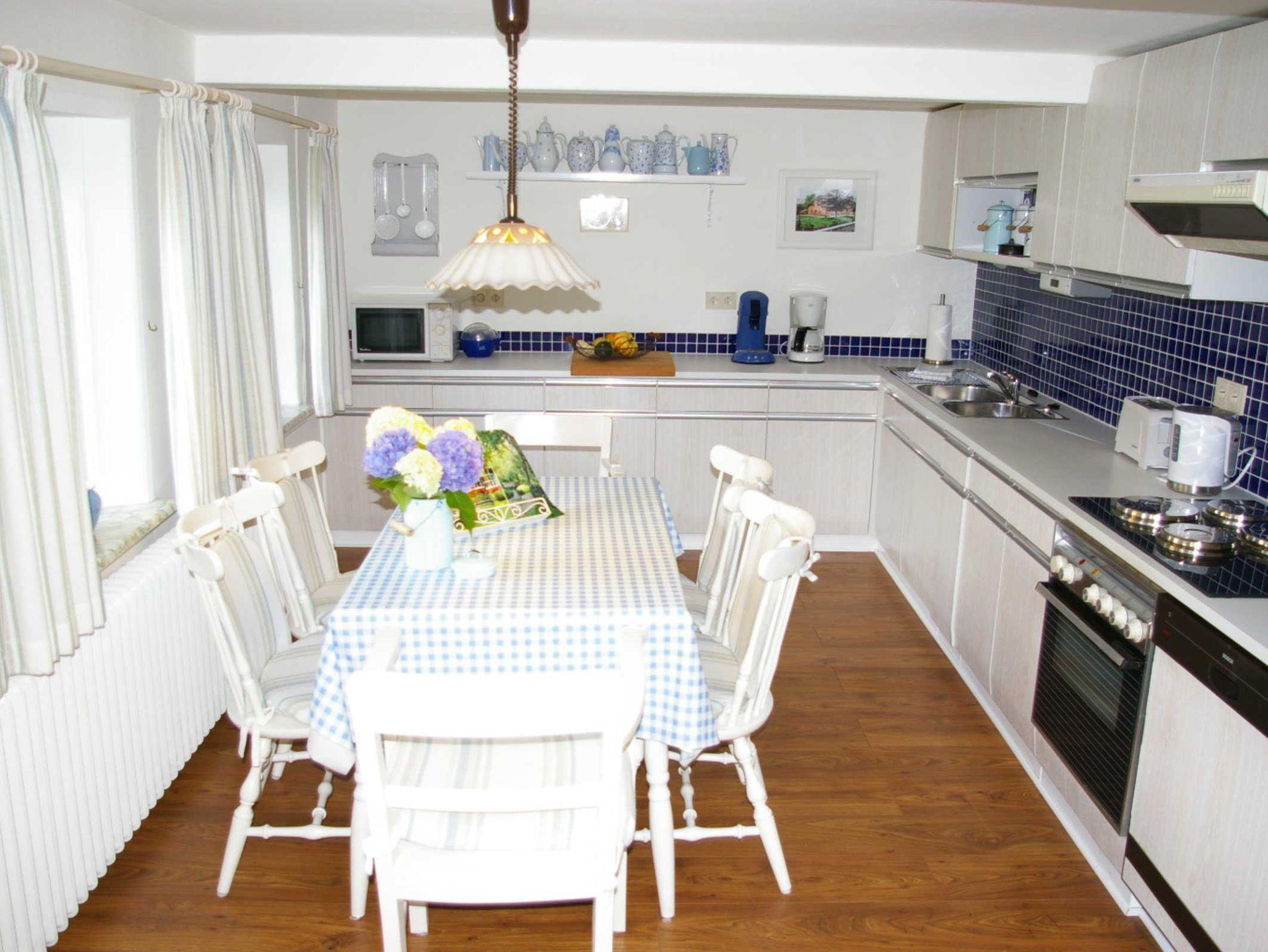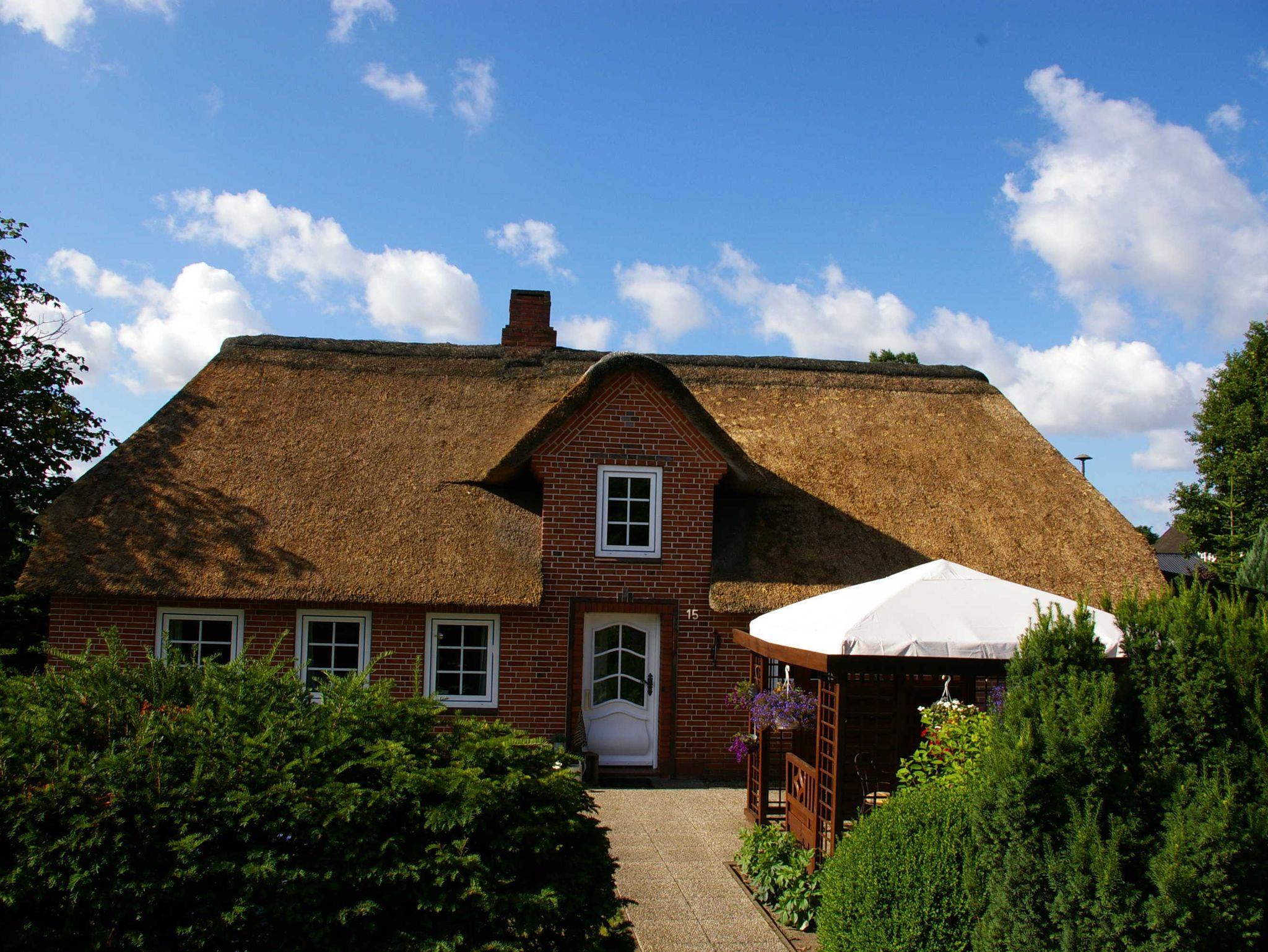 Gemütliches Reetdachhaus mit liebevoll eingerichteten Räumlichkeiten. Die große Wohnung im Erdgeschoß bietet Ihnen eine Wohnfläche von 80 qm mit einer großen Küche, großem Flur, einem gemütlichen Wohnzimmer mit Essbereich sowie bei Bedarf mit zwei weiteren Schlafgelegenheiten. Des Weiteren steht Ihnen ein Schlafzimmer (mit 180er-Doppelbett) und einem Bad mit Regenbrause sowie Kosmetikspiegel und einer Waschmaschine zur Verfügung.