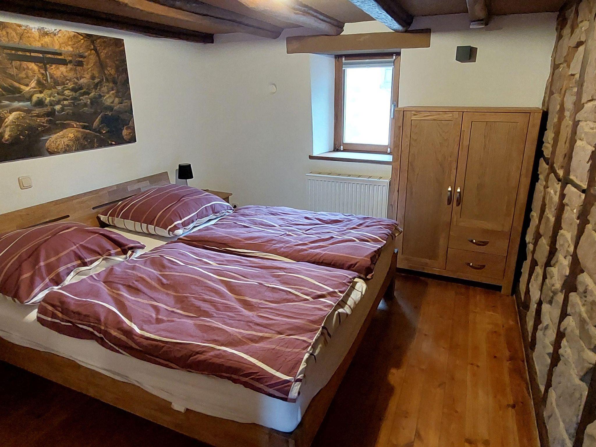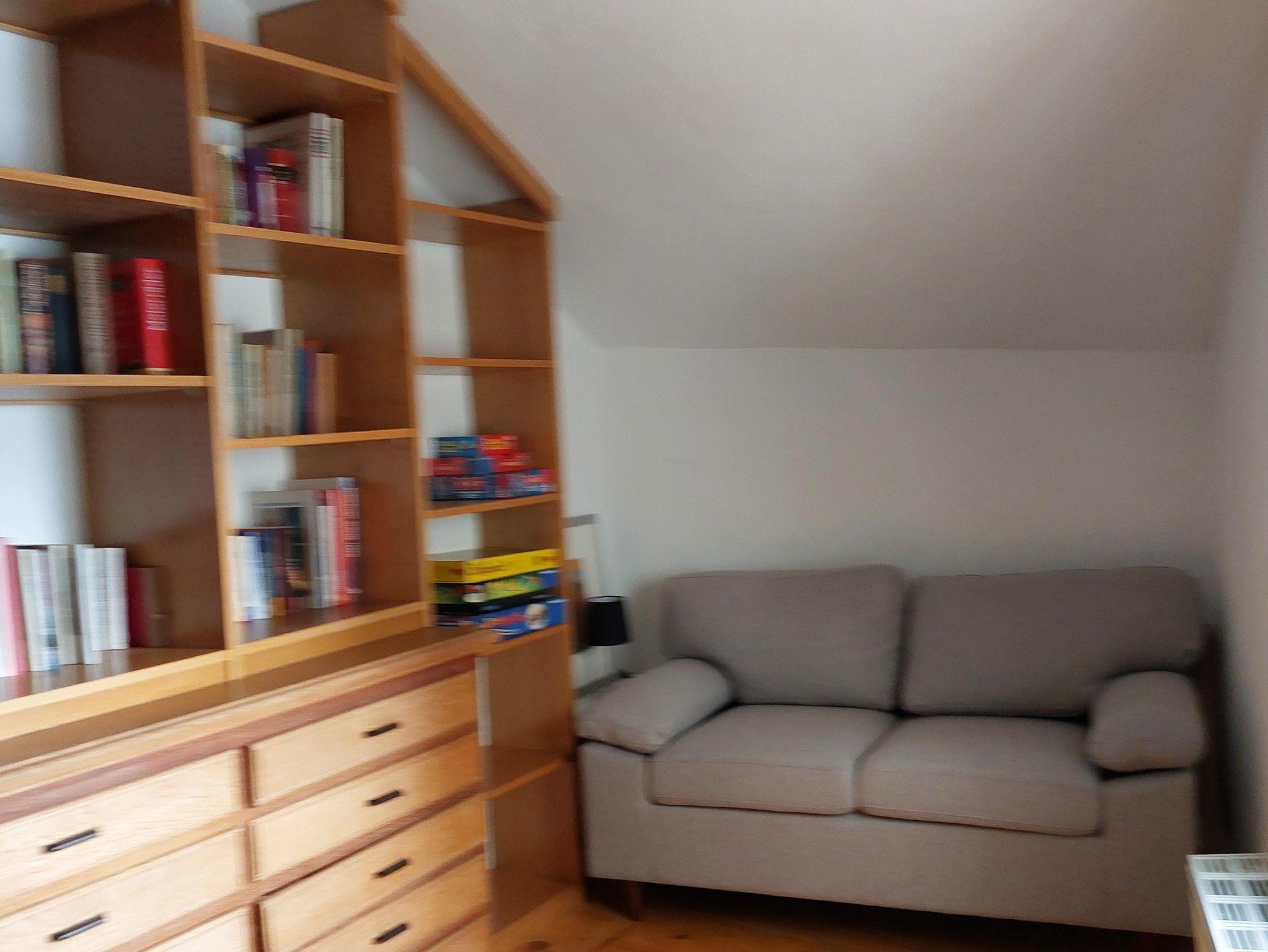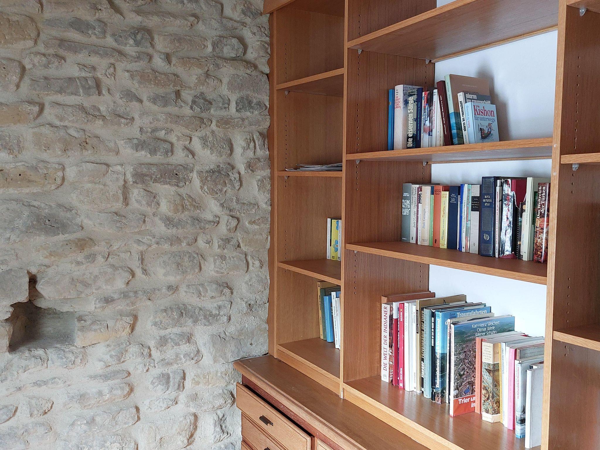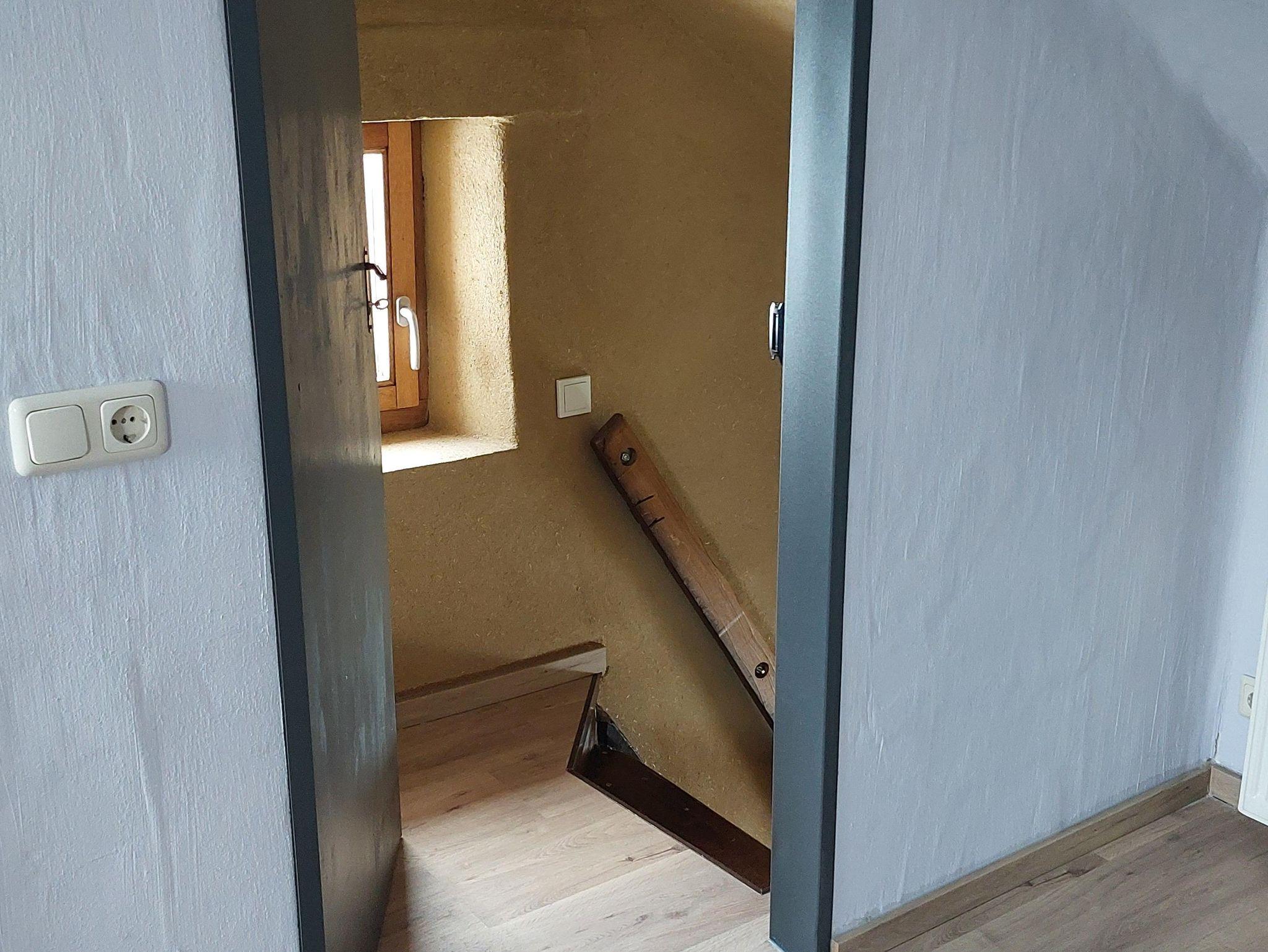 Über originalgetreue Holztreppen erreicht man auf 4 Etagen 2 Bäder, ein Spiel- und Leseraum und ein Wohn-/Esszimmer. Im Spiel- und Lesezimmer steht den Gästen eine Auswahl an Büchern, Informationsmaterial und Gesellschaftsspiele zur Verfügung. Die moderne und individuelle Einrichtung schafft eine gemütliche Wohlfühlatmosphäre. Niedrige Decken, schiefe Wände und Fußböden und steile Treppen machen den einmaligen Charakter des Eifelhauses aus.