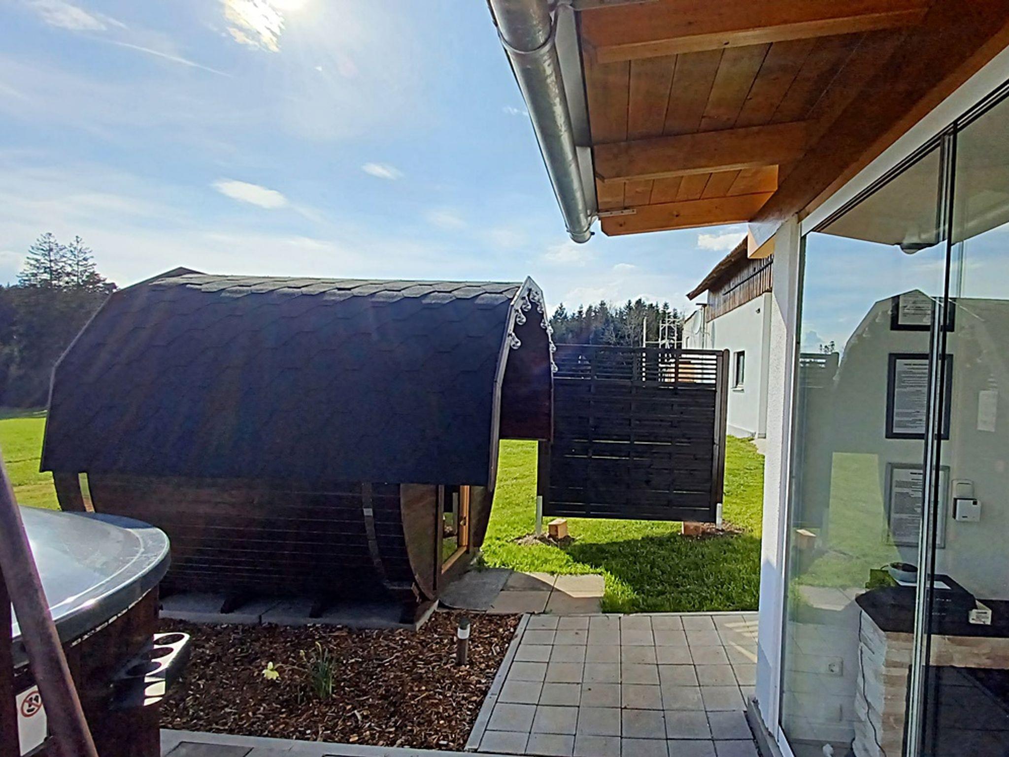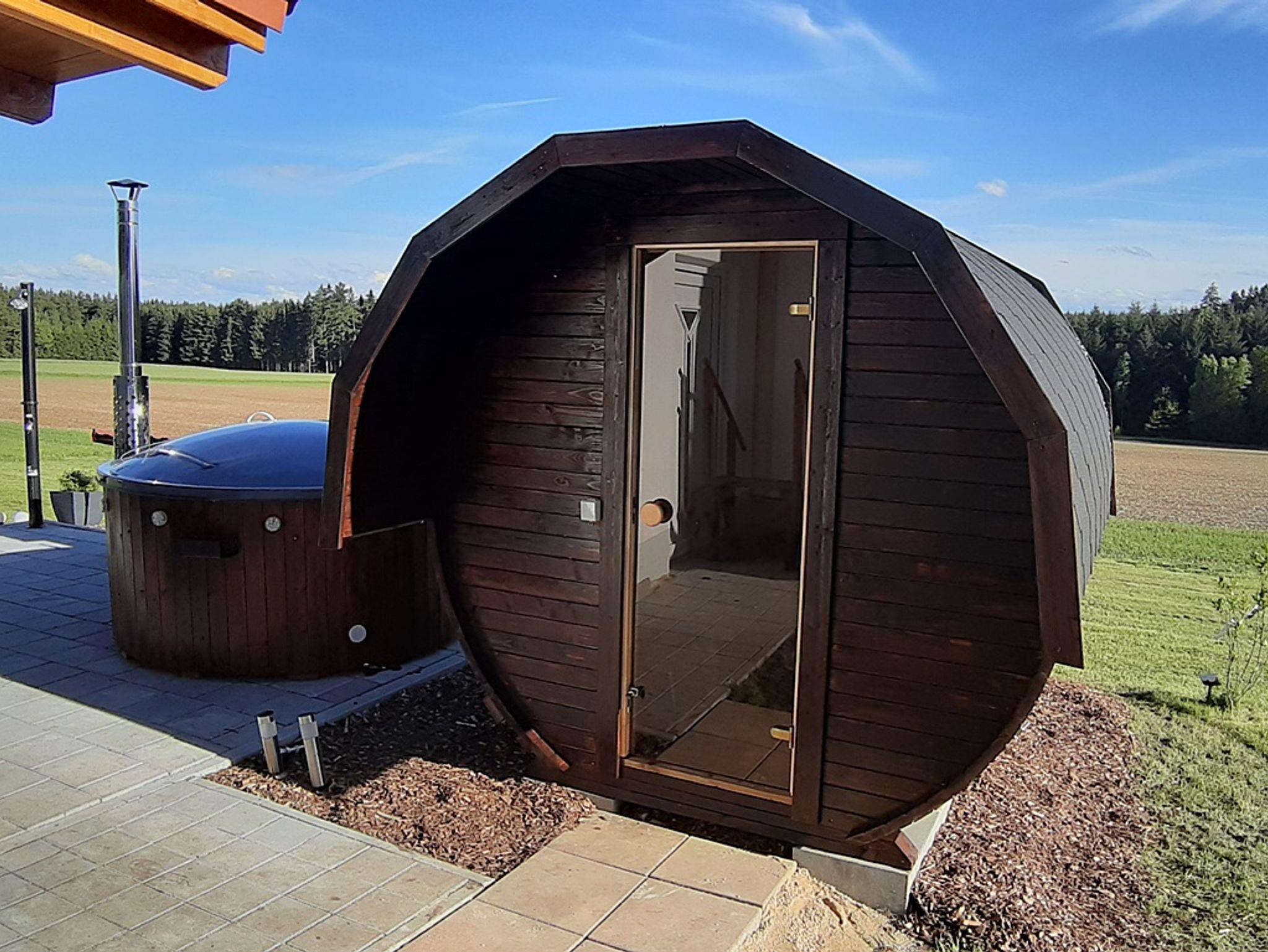 Unsere Fass-Sauna macht das Wellness-Vergnügen komplett. Ein Saunagang bei uns bringt nicht nur Ihren Kreislauf in Schwung, sondern ist zugleich ein Erlebnis in der Natur. Eine Außendusche sorgt für Abkühlung. Das Badefass und die Fass-Sauna können über unser Formular Zubuchbare Optionen kostenpflichtig zur Alleinnutzung gebucht werden. Das Formular erhalten Sie bei bestätigter Buchung.