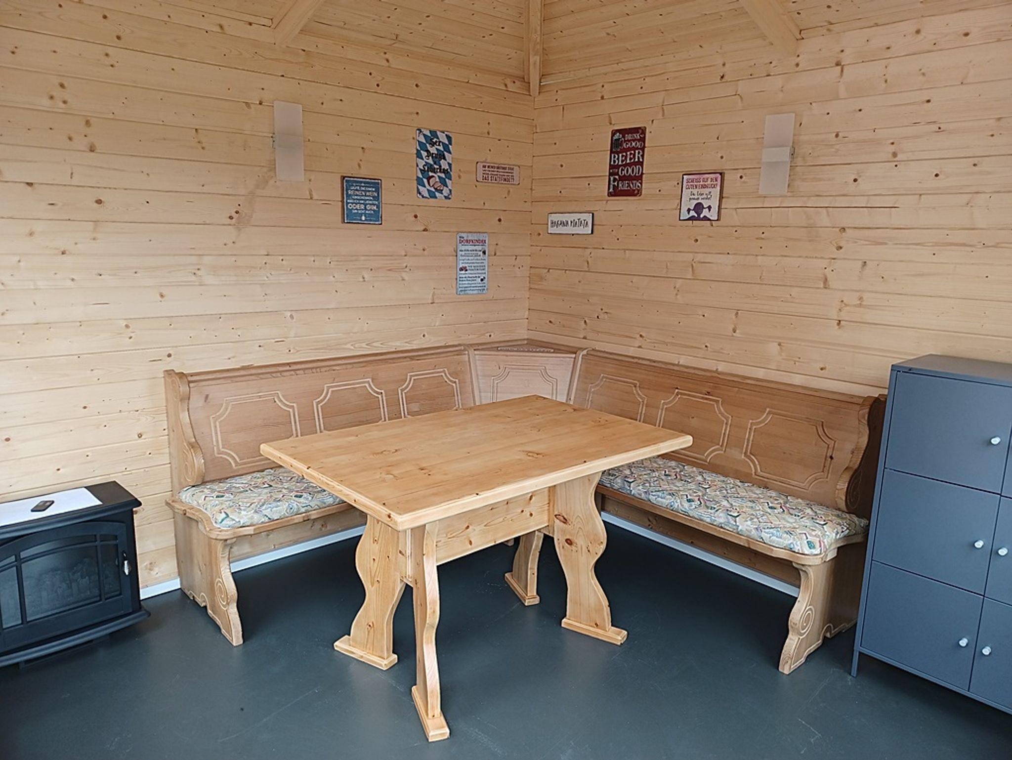 Während der Aufheizzeit, können Sie es sich jedoch in unserem neu gebauten und beheizbaren Ruheraum gemütlich machen. Ausgestattet mit einer kuscheligen Sitzecke und Liegen zum Relaxen.