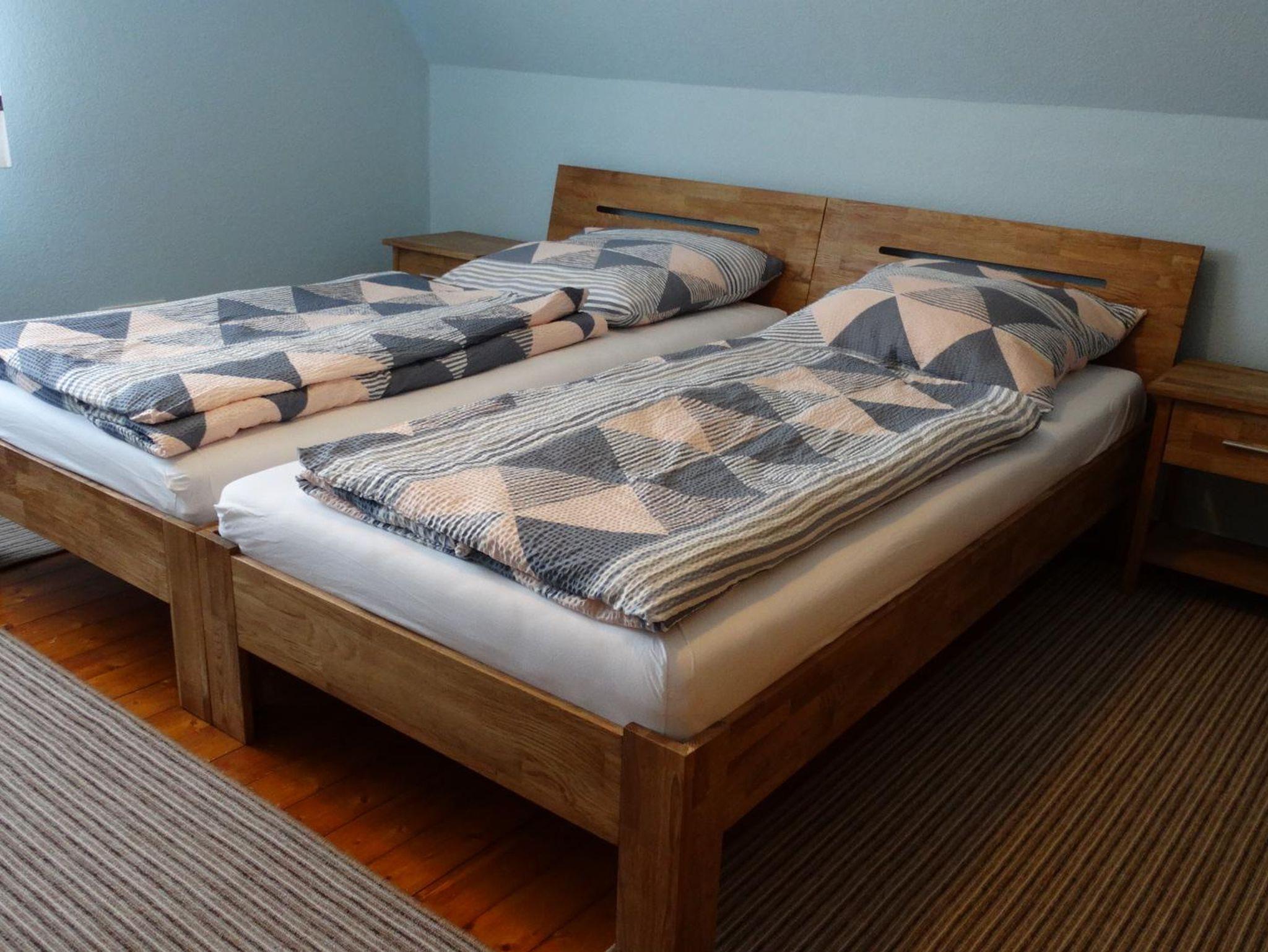 Das Ferienhaus hat 2 Doppelzimmer und 1 Einzelzimmer. Außerdem eine komplett eingerichtetet Küche mit zusätzlichem Lagerraum. Im Wohnzimmer stehen eine gemütliche Couch und ein Fernseher bereit. Zusätzlich zum Badezimmer mit Dusche gibt es im Erdgeschoss eine Gäste-Toilette.