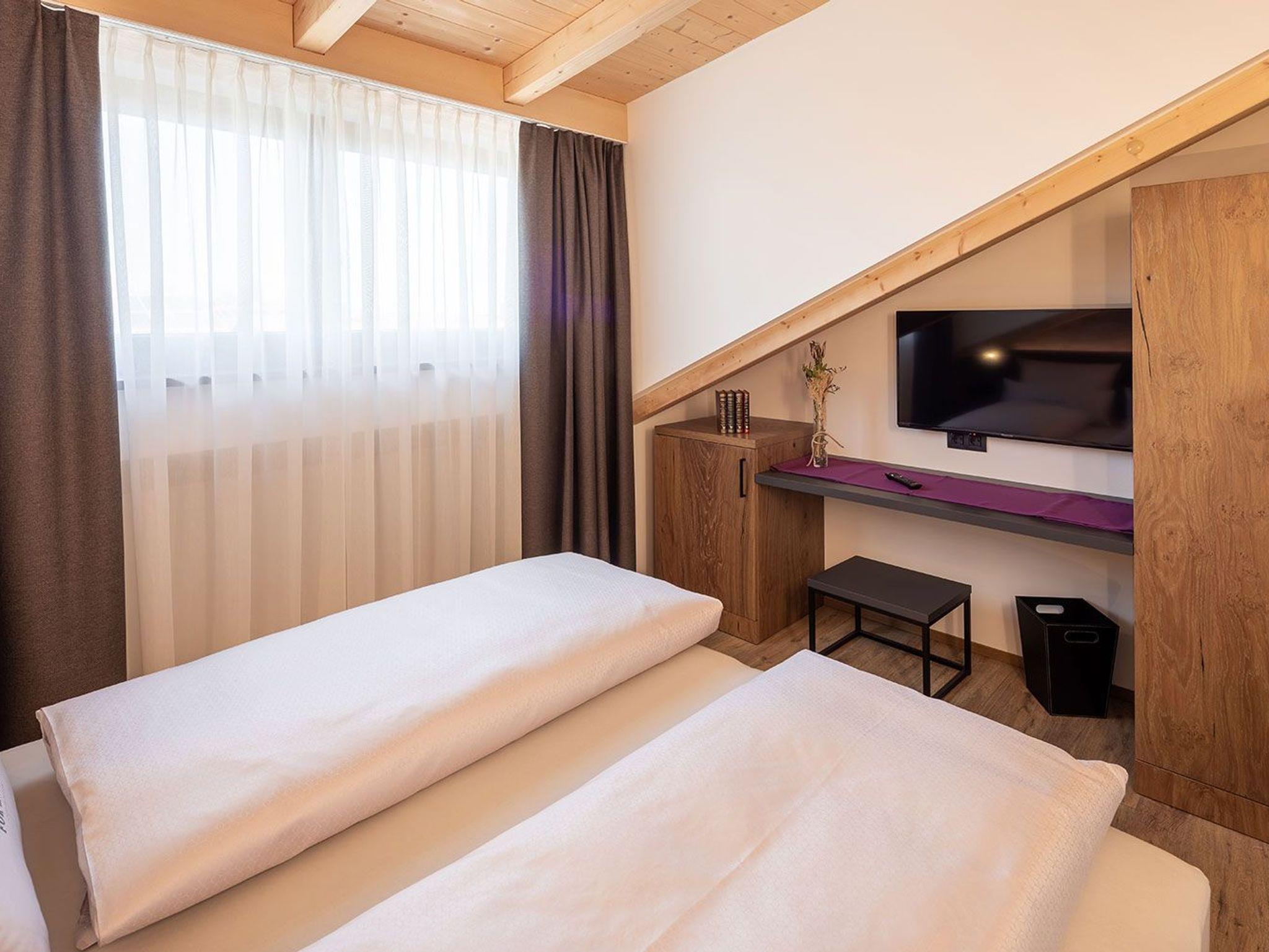 Dieses geräumige Penthouse ist perfekt für einen luxuriösen und komfortablen Aufenthalt in unserer Berglandschaft. Die Einrichtung des Zimmers ist modern und elegant und verbindet traditionelle Alpenakzente mit zeitgemäßen Designelementen. Das Zimmer verfügt über ein bequemes Queensize-Doppelbett, eine komfortable Schlafcouch und ein weiteres Schlafzimmer mit Einzelbetten. Die Sauna schafft eine gemütliche Atmosphäre und ist perfekt für kühle Abende. Dieses luxuriöse Alpenstil-Penthouse bietet den perfekten Rückzugsort für Paare oder Familien, die das Beste aus den Bergen erleben möchten. Erleben Sie den ultimativen Komfort und Luxus in diesem atemberaubenden Zimmer!