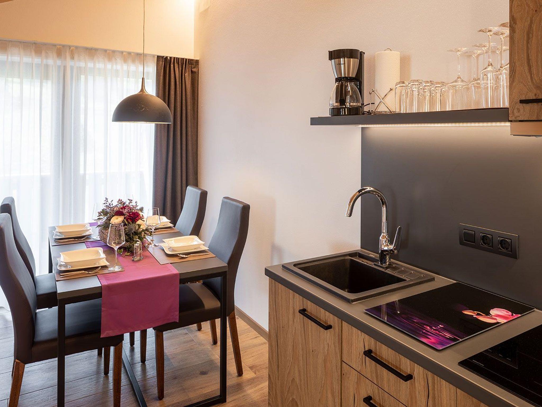 In modern alpenstyle eingerichteten Appartements in 4 Kategorien logieren Sie vor unberührter Natur direkt am Kurpark von Roßhaupten. Der Wellnessbereich und der beheizte Außenpool (Weihnachtsferien) laden Sie zu ''unvergesslichen Momenten'' ein.