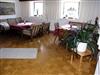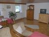 Das Wohnzimmer ist mit zwei großen Polstersitzgruppen, einem Kachelofen und TV ausgestattet.