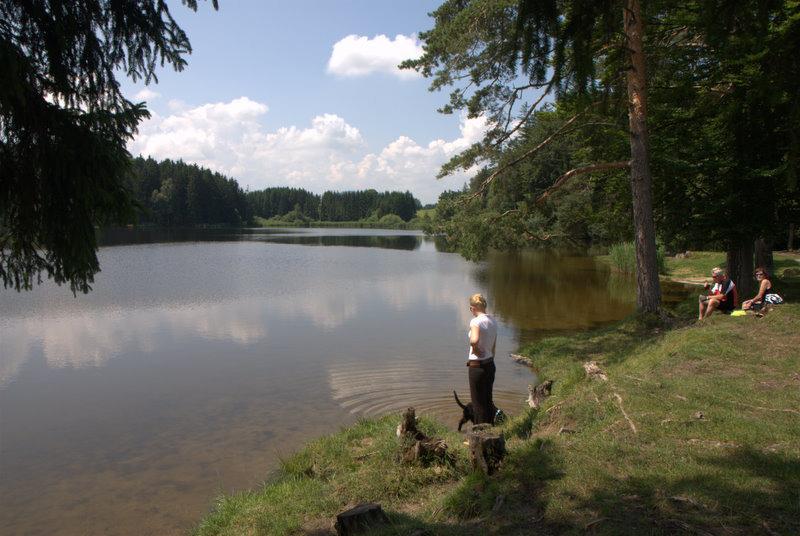 Der hauseigene Angel- und Badesee mit Badestrand und Kiosk ist nur ca. 400 m Meter vom Ferienhaus entfernt.