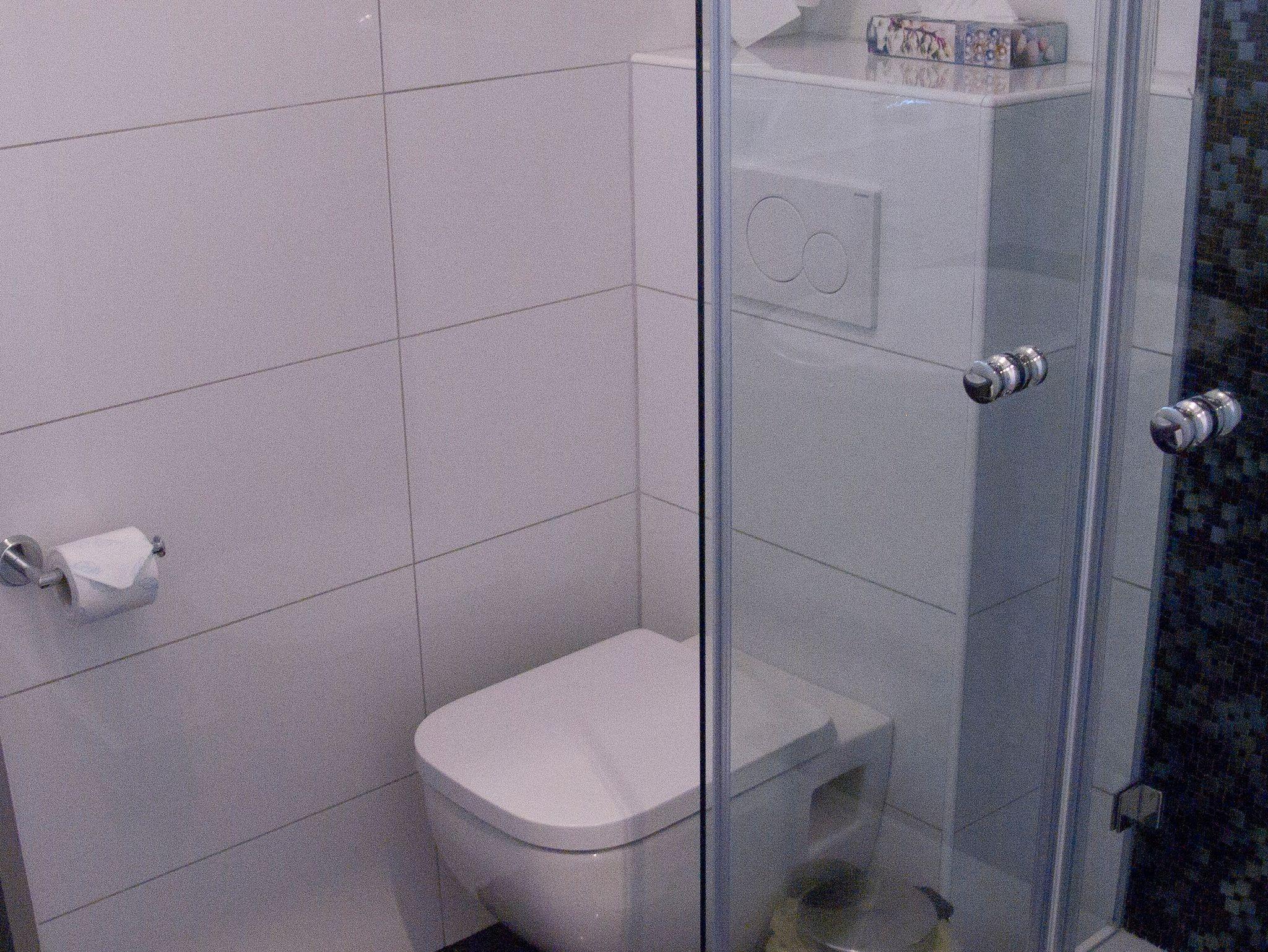 Im modernen Bad ist eine Echtglas Dusche, Waschtisch und WC ( Handtücher, Schampoo, Föhn, WC Papier sind für uns selbstverständlich sowie Bettwäsche, TV und kostenfreies W-Lan.