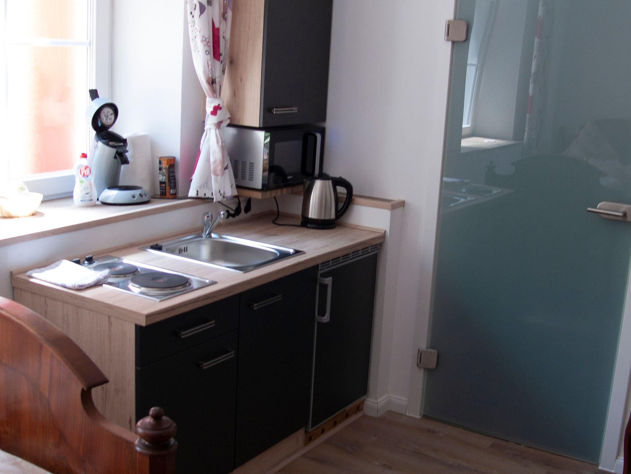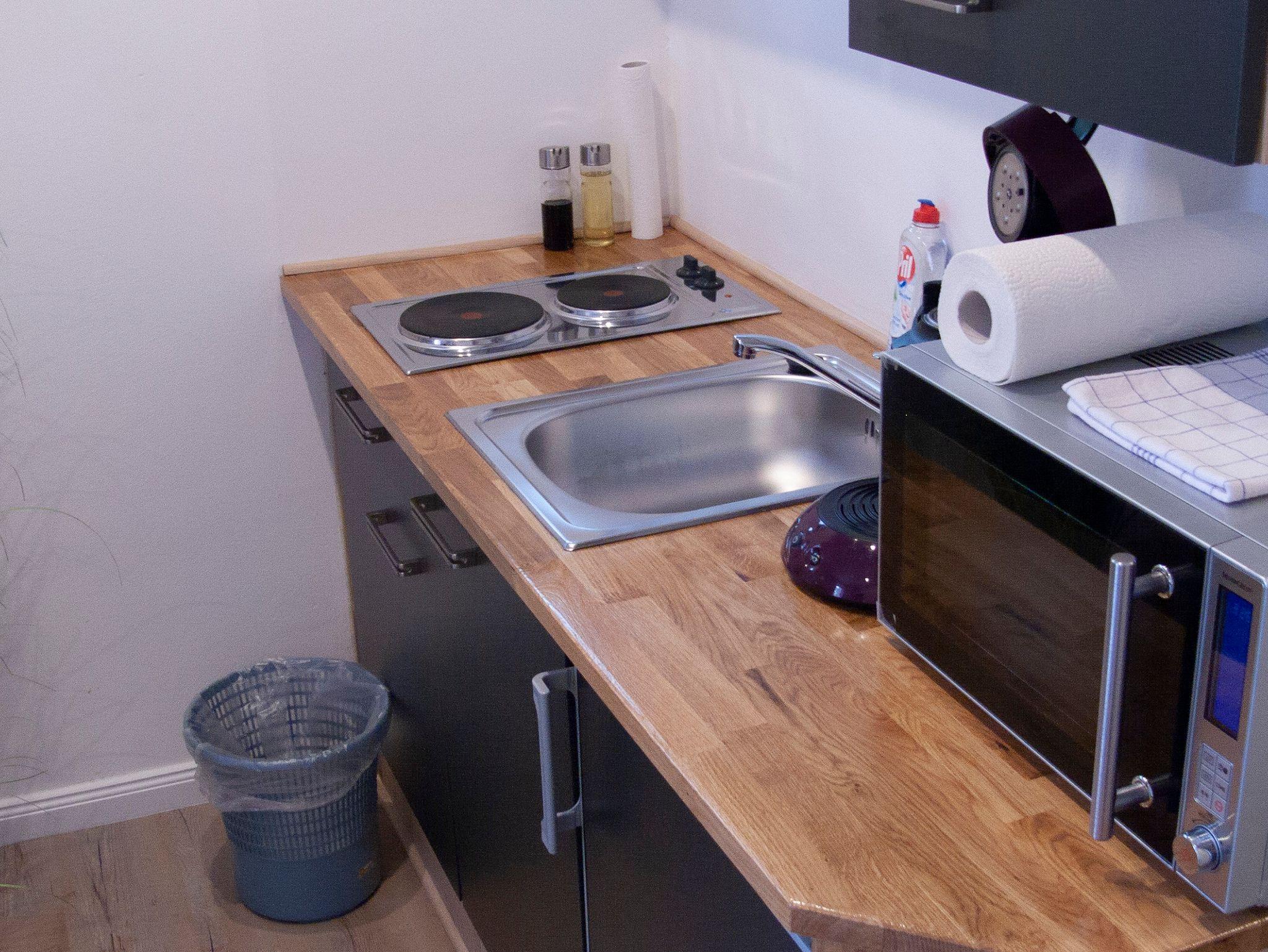 In der Küchenzeile ist alles soweit vorhanden was man normalerweise benötigt ( Senseo Maschine, Wasserkocher, Toster, Mikrowelle, Tassen, Teller, Besteck, Töpfe, Pfanne, Geschirrtuch, Zewa).