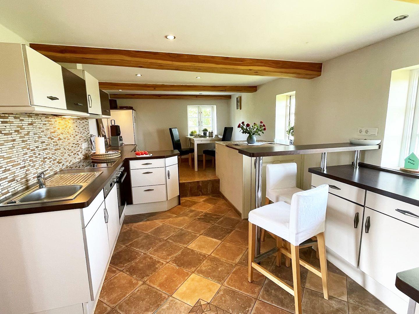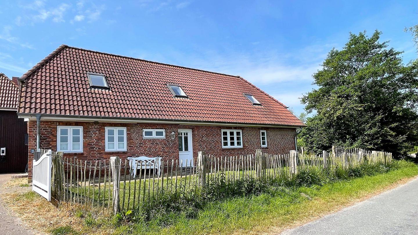 Willkommen im Ferienhaus Dat groote Diekhuus in Rodenäs, einer einladenden Oase, die sich ideal für Familien, Paare und Erholungssuchende eignet. Eingebettet in die malerische Umgebung der norddeutschen Landschaft, bietet dieses freistehende Haus mit Landschaftsblick alles, was Sie für einen unvergesslichen Aufenthalt benötigen. Das großzügige Ferienhaus bietet Platz für bis zu sechs Personen und verfügt über insgesamt drei Schlafzimmer sowie zwei Badezimmer. Das lichtdurchflutete Wohnzimmer lädt zum Verweilen ein und ist mit einem Kaminofen ausgestattet, der an kühleren Tagen für eine behagliche Atmosphäre sorgt. Für Ihre Unterhaltung steht Ihnen hier ein Fernseher und ein WLAN-Anschluss zur Verfügung, während die gemütliche Sitzecke mit einem Sofa und Sessel zum Entspannen einlädt. Die moderne Küche ist mit hochwertigen Geräten ausgestattet, darunter ein Elektroherd, ein Backofen, eine Mikrowelle, eine Spülmaschine sowie alle notwendigen Küchenutensilien. Hier können Sie gemeinsam am Esstisch kulinarische Köstlichkeiten zubereiten und genießen. Zudem ist die Unterkunft mit einer Waschmaschine ausgestattet, die Ihnen während Ihres Aufenthalts hervorragenden Service bietet. In jedem der drei Schlafzimmer finden Sie ien Doppelbett, dass für entspannte Nächte sorgt. Zudem sind in jedem Schlafzimmer ein Kleiderschrank sowie Nachttischlampen vorhanden. Für zusätzlichen Komfort hat eines der Schlafzimmer einen weiteren TV. Das Ferienhaus bietet Ihnen eine herrliche Terrasse mit Gartenmöbeln samt Strandkorb, wo Sie entweder beim Frühstück die Morgenluft genießen oder abends in einer entspannten Atmosphäre den Tag ausklingen lassen können. Der Garten ist ideal für Familien mit Kindern und bietet ausreichenden Platz zum Spielen und Entspannen. Auch Haustiere sind herzlich willkommen, sodass Ihre vierbeinigen Freunde ebenfalls Teil des Urlaubs sein können. Für Ihre Anreise steht Ihnen ein hauseigener Privatparkplatz mit Platz für bis zu drei Fahrzeuge zur Verfügung, und auch eine Elektroauto-Ladestation ist vorhanden. Die Lage des Ferienhauses ist optimal, um die unberührte Natur zu erkunden. In unmittelbarer Nähe können Sie zahlreiche Aktivitäten wie Radfahren, Joggen, Wandern und Vogelbeobachtung genießen. Die Küste ist nur eine kurze Autofahrt entfernt, wo Sie Wassersportarten nachgehen können. Zudem laden verschiedene Touristenattraktionen in der Umgebung zu Ausflügen ein. Das Ferienhaus "Dat groote Diekhuus" vereint modernen Komfort mit ländlichem Charme und schafft damit den perfekten Rückzugsort für Ihren nächsten Urlaub an der Nordsee. Erleben Sie die vielfältigen Möglichkeiten, die diese idyllische Region zu bieten hat, und genießen Sie unbeschwerte Tage mit Ihrer Familie oder Freunden. Sichern Sie sich jetzt Ihren Aufenthalt in diesem bezaubernden Ferienhaus und genießen Sie entspannte Tage in Rodenäs.
