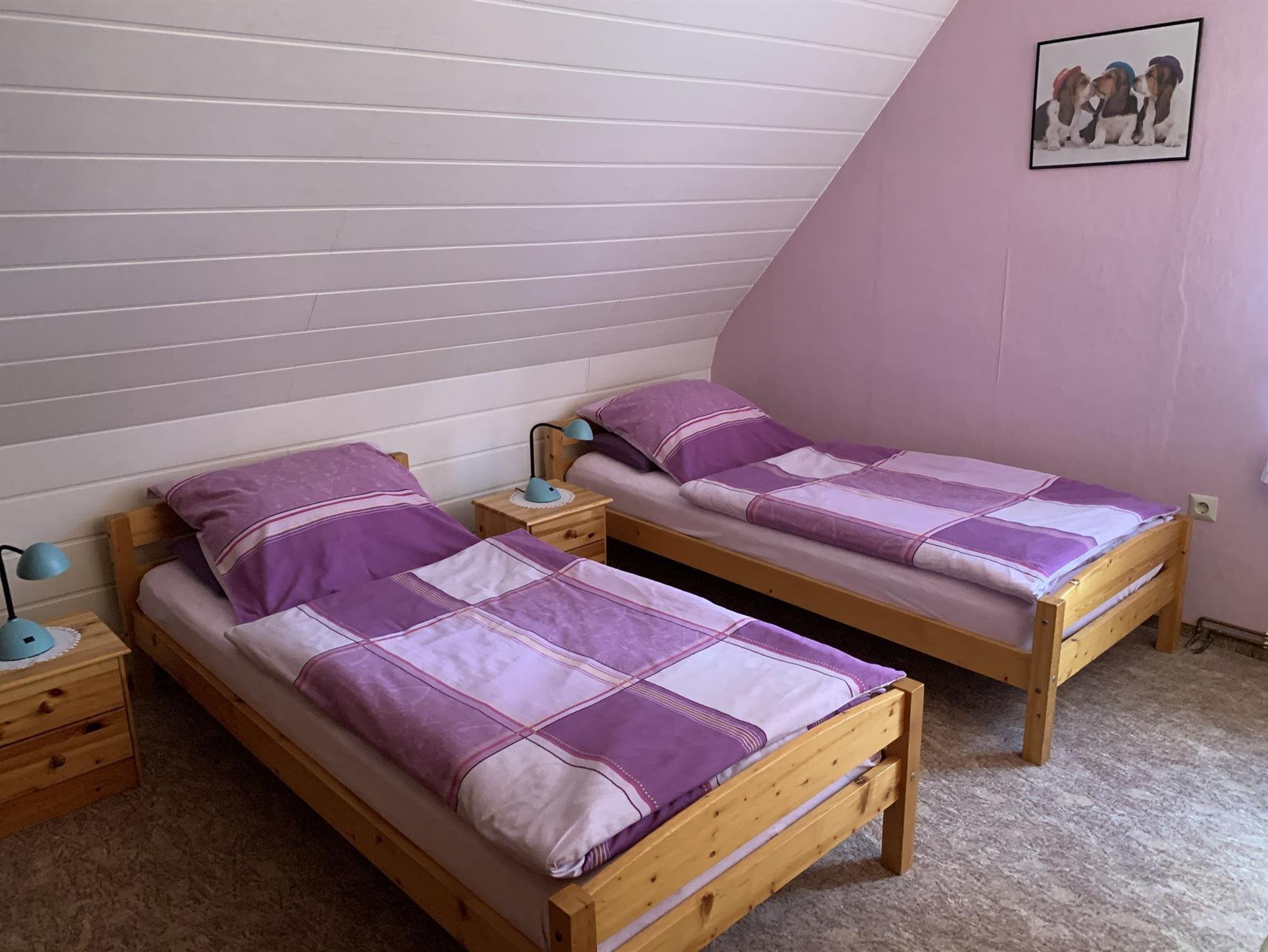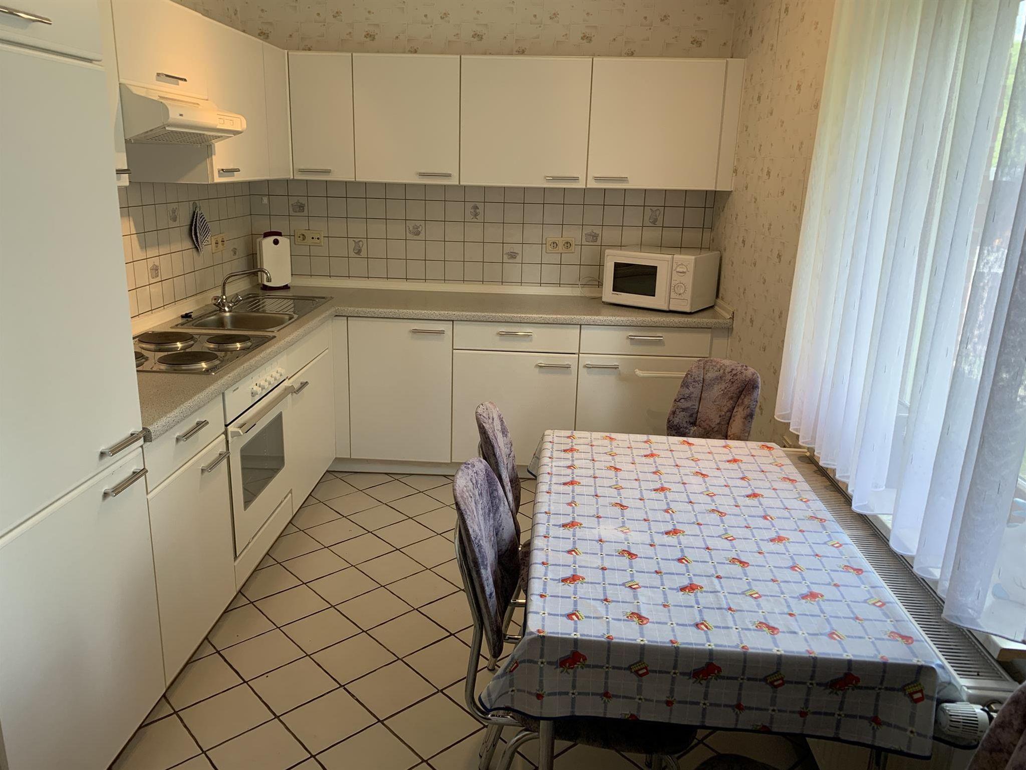 Ferienwohnung, 60 qm, 4 Betten. 1 Wohnzimmer, gut ausgestattete Küche, Bad mit Dusche und Wanne/WC im Erdgeschoss, 2 Schlafzimmer im Obergeschoss. Zustellbett für Kinder und Erwachsene auf Anfrage vorhanden. Bettwäsche und Handtücher inklusive. check in: 14:00 Uhr, check out: 12:00 Uhr