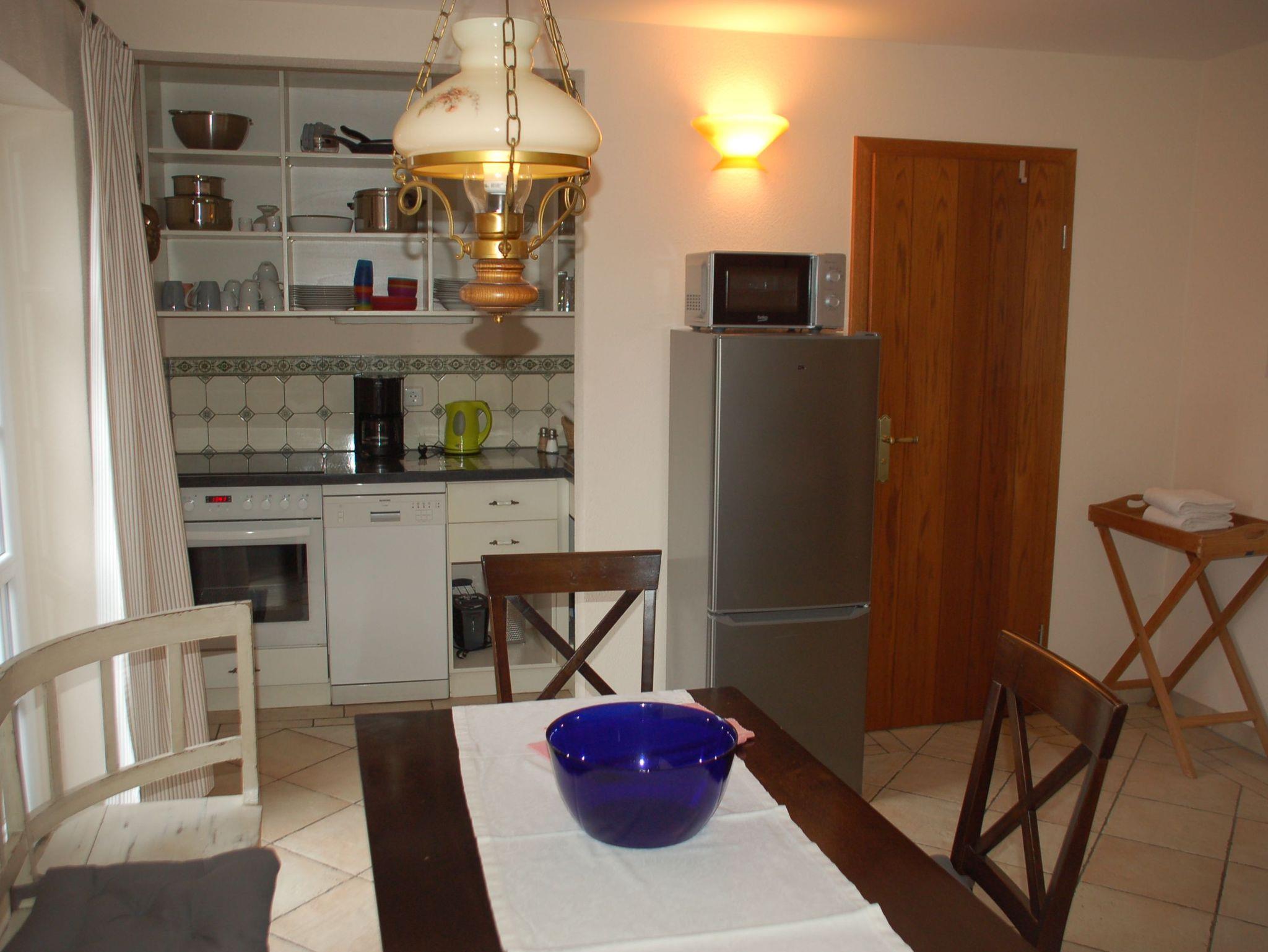 Die im ehemaligen Wohnhaus der Müller gelegene Wohnung verfügt über einen großen Balkon. Von diesem haben unsere Gäste einen direkten Ausblick auf die durchfließende Biber und den Streichelzoo. Die Süd-West-Ausrichtung des Balkons gibt die Gelegenheit Sonnenstunden entspannt zu genießen. Im Wohn-/Essbereich verfügt die Wohnung Wiesenblick über eine funktionale und sehr gut ausgestattete Küche mit allen nötigen Elektrogeräten. Auf Wunsch können die Gäste im Mühlenbüro Raclette, Fondue oder Sandwichmaker ausleihen.