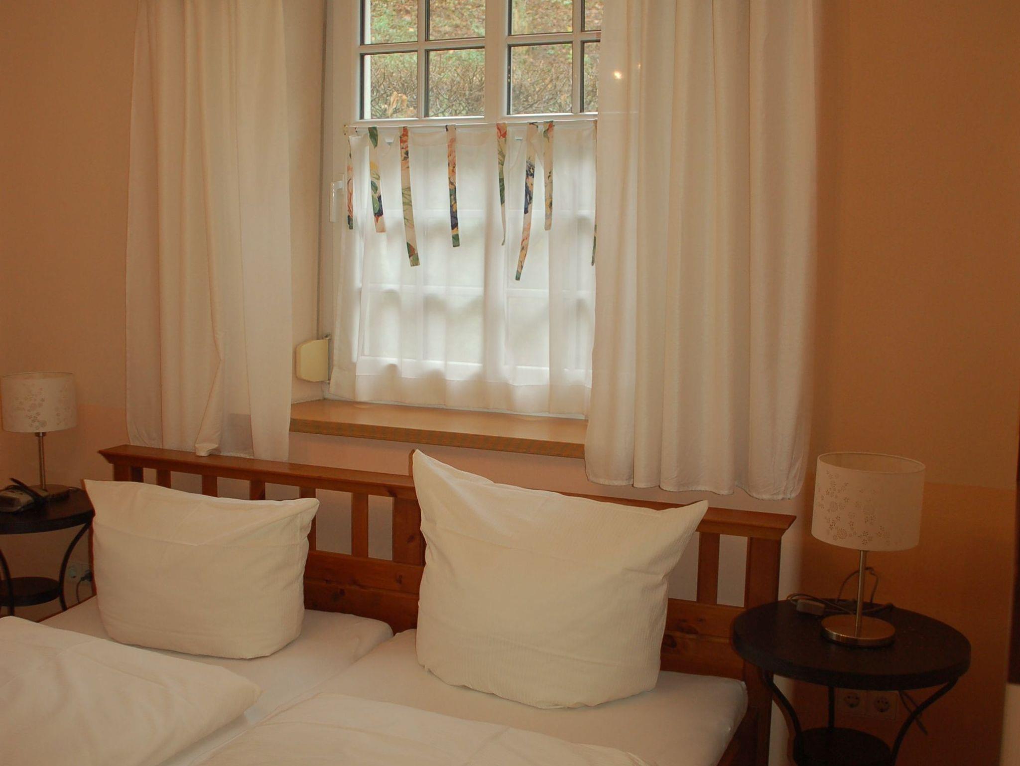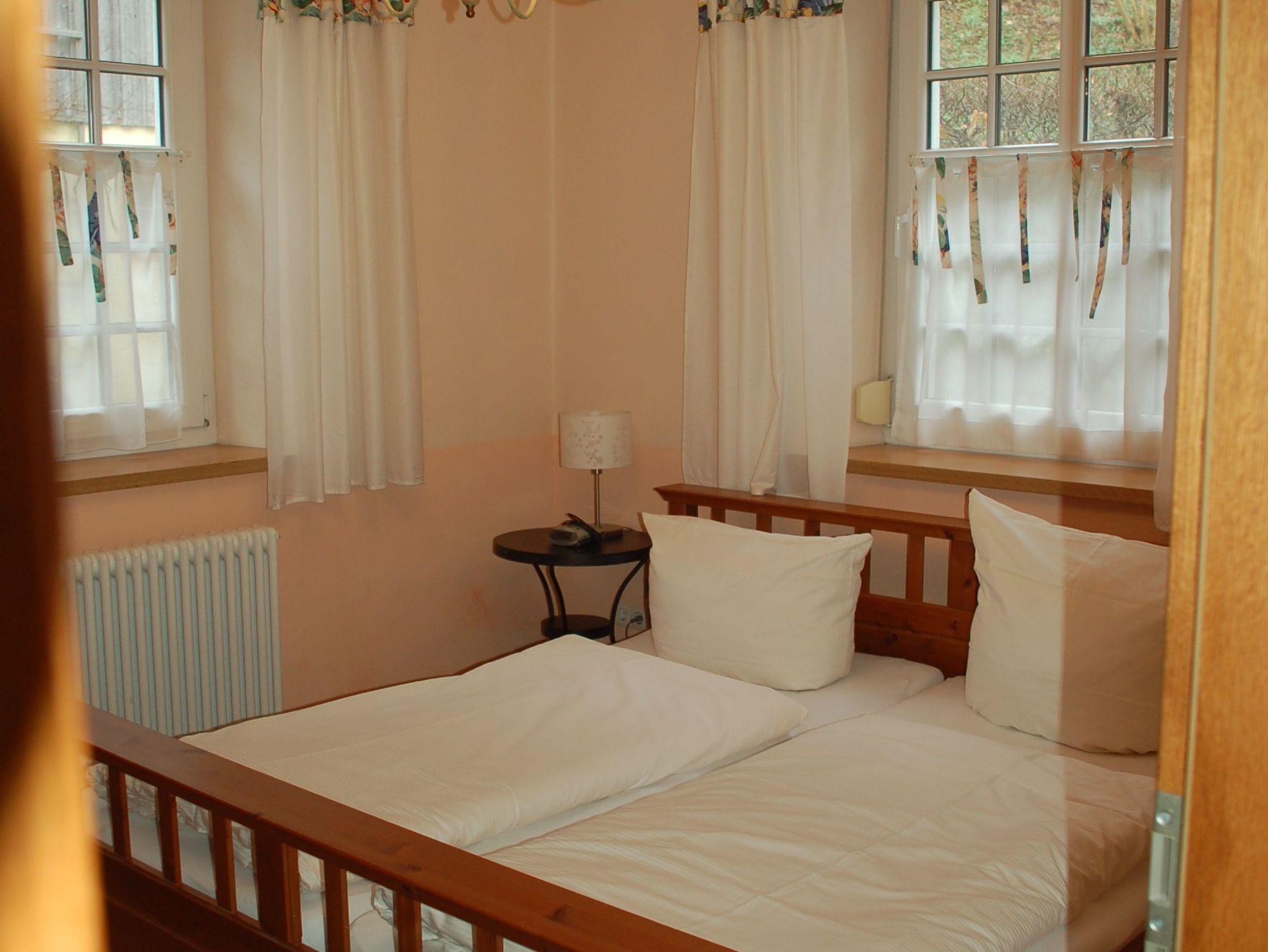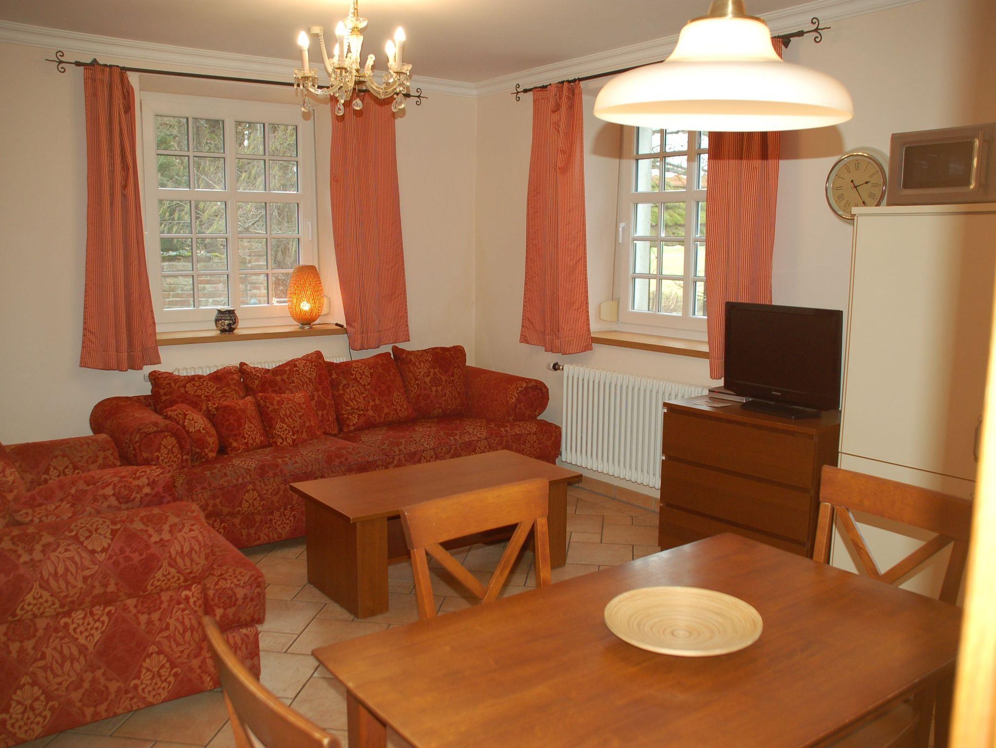 Im Eingangsbereich sind historische Bodenfliesen (Villeroy und Boch aus dem Jahr 1898) verlegt. Der große Wohn-/Essbereich ist mit einer komplett ausgestatteten Küchenzeile, einem großen Esstisch und einer gemütlichen Couch bestückt. Auf Wunsch können die Gäste im Mühlenbüro Raclette, Fondue oder Sandwichmaker ausleihen. Kinderhochstühle können vorbestellt werden. Im Bad erwartet unsere Gäste ein im toskanischen Stil gefliester Waschtischbereich sowie eine Badewanne, in der auch geduscht werden kann. Die Toilett ist in einem separaten Raum untergebracht. Das Elternschlafzimmer verfügt über ein 180 cm breites Doppelbett. Im Kinderzimmer erwartet unsere kleinen Gäste ein Etagenbett (oberes Bett 90 x 200 cm, unteres Bett 140 x 200 cm). Schallschutzfenster mit Insektenschutzrollos sind Teil der hochwertigen Ausstattung dieser Wohnung.