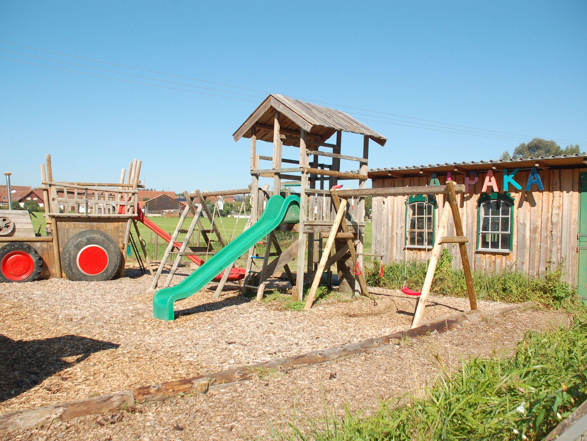 Nebenan, auf der großen Weide, befinden sich die Tiergehege, ein kleines Fußballfeld, ein Lagerfeuerplatz und ein Sandspielbereich.