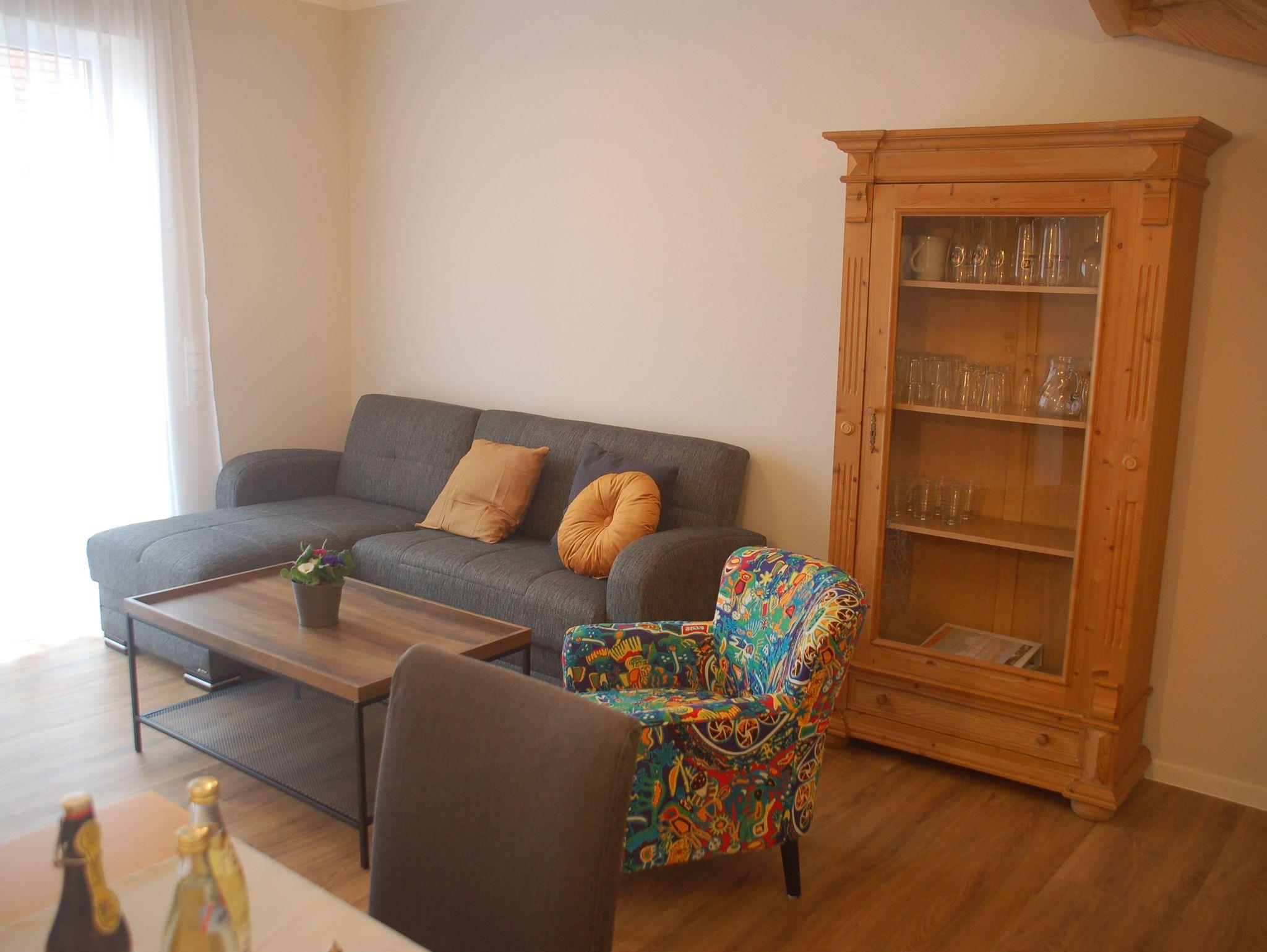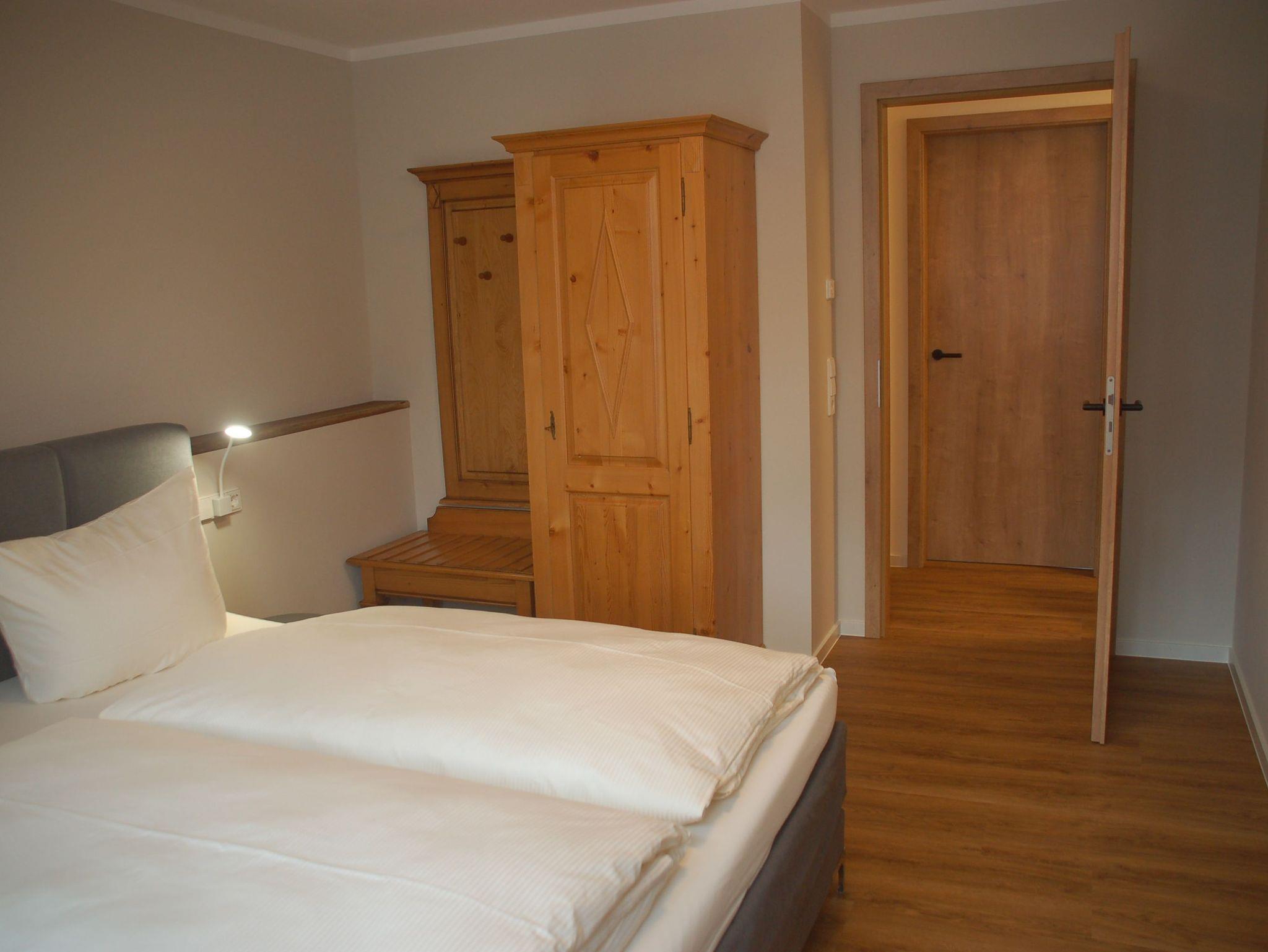 Die Mühlen-Maisonette Wohnung 2 kann über eine Verbindungstür mit der Mühlen-Maisonette Wohnung 1 verbunden werden. Im Elternschlafzimmer erwartet unsere Gäste eine 180 cm breites Boxspringbett sowie ein 140 cm langes Kinder-Gitterbett.