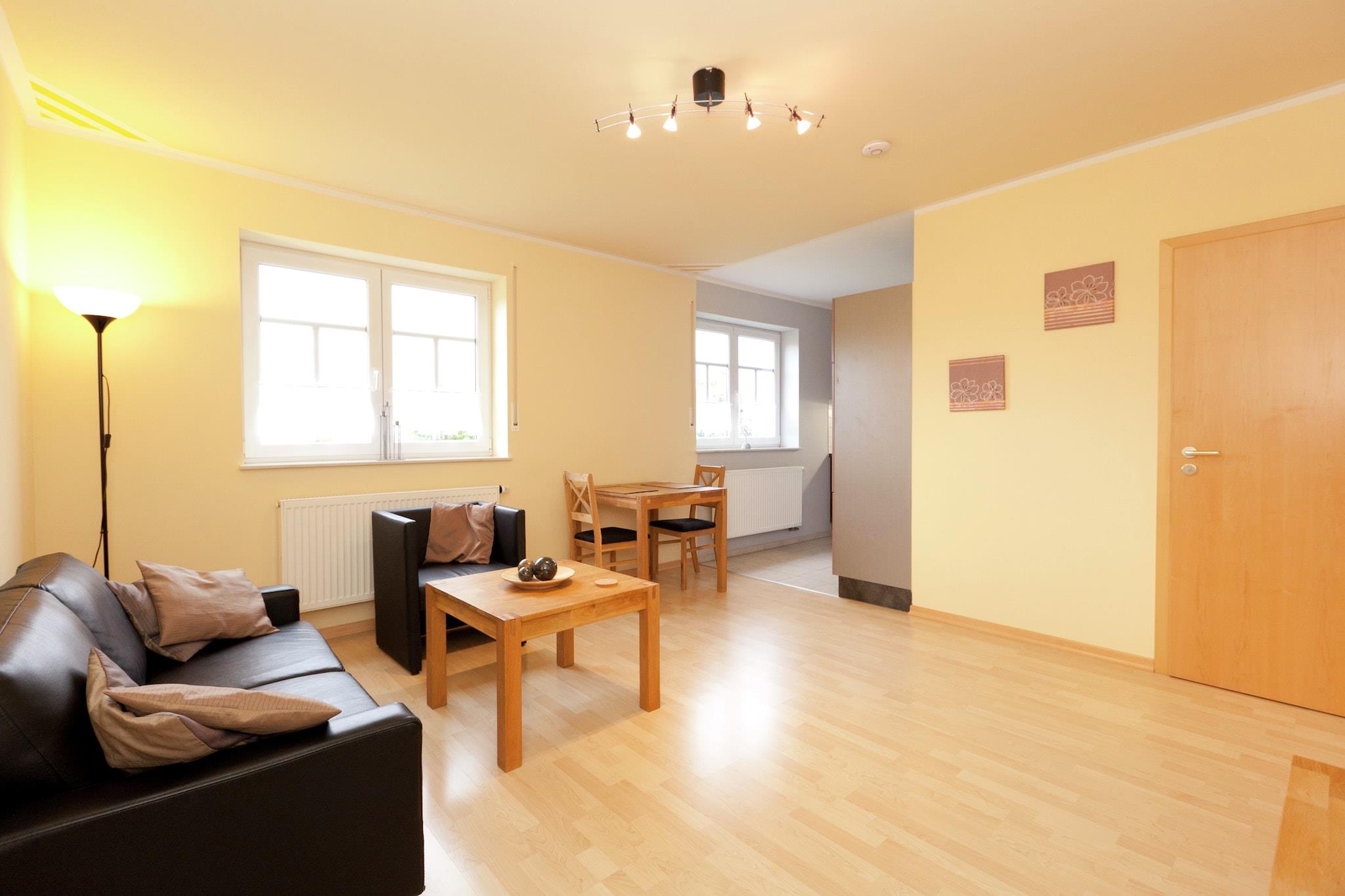 Denne charmerende 1-værelses lejlighed i Rommersheim tilbyder en fredelig flugt for to gæster i hjertet af Eifel-regionen. Med centralvarme, en møbleret have og en terrasse udstyret til grillmad, er det ideelt for par, der søger komfort og natur. Den åbne planløsning omfatter et veludstyret køkken og et hyggeligt opholdsrum, mens en høj stol er tilgængelig på anmodning til små rejsende. Parkering er til rådighed for ekstra bekvemmelighed. Beliggende kun 500 m fra skoven og 3 km fra byens centrum, kan gæsterne nyde naturskønne gåture, lokale shoppingmuligheder og en forfriskende svømmetur i den nærliggende offentlige pool. Området byder også på skiløb, langrendsløjper og nem adgang til offentlig transport (300 m), hvilket gør det til en god base for eventyr året rundt. Spisesteder i nærheden omfatter Wirtshaus am Hahnplatz til traditionel tysk mad, Rasthof Zur Schneifel til afslappede regionale retter og Restaurant Ulis Kochtopf til hjemmelavet mad. Andre højdepunkter omfatter Zur Alten Abtei, Stiftsklause, Prümer Brauhaus, Restaurant Kolner Hof og Cafe Hanebrink til kaffe og søde sager.