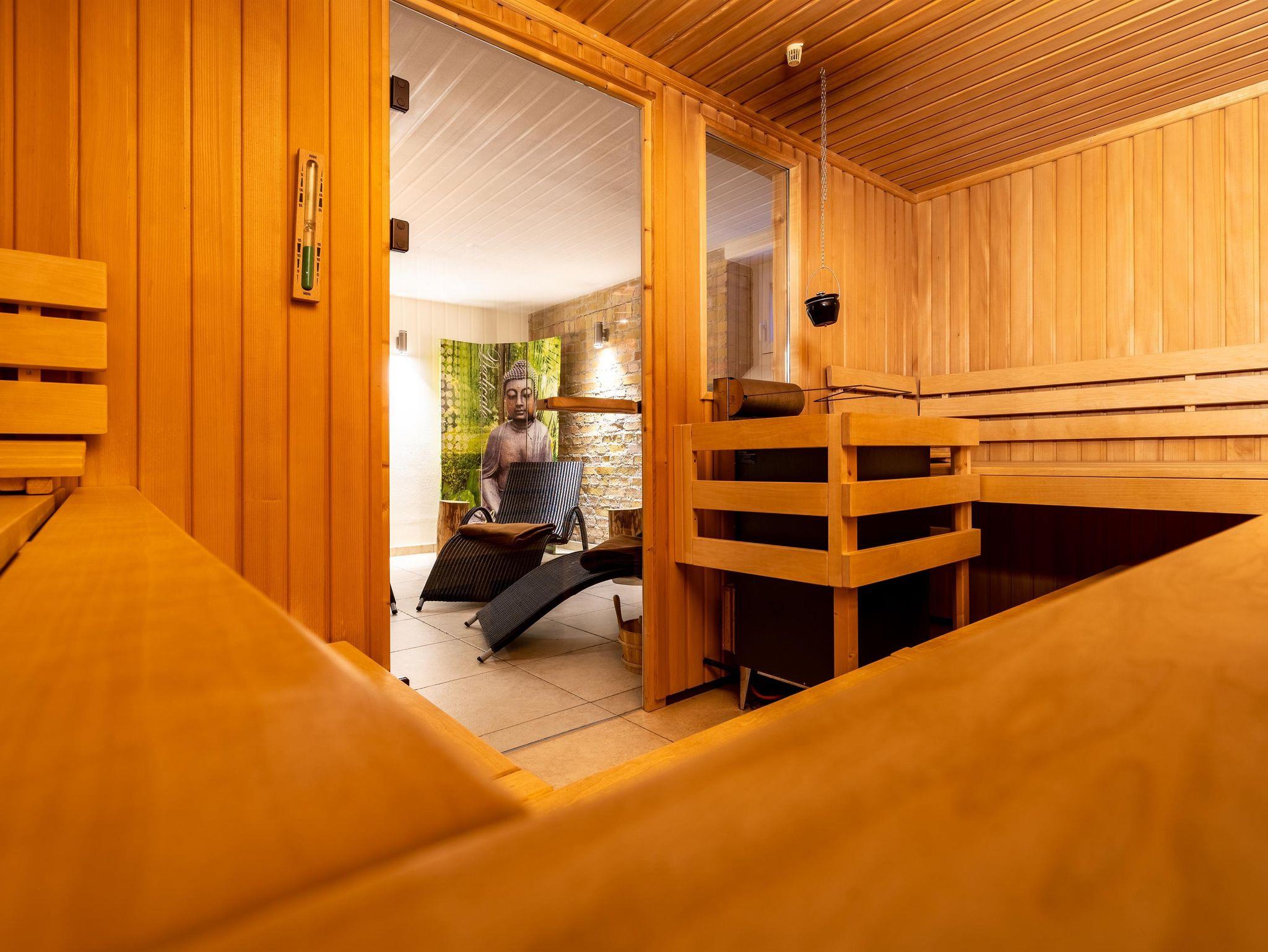 In den Kellerräumen befindet sich eine Waschmaschine sowie Trockner, der gegen Gebühr für Sie zugänglich ist. Um auch ihrem Körper zur Entspannung zu führen,bieten wir Ihnen einen Saunabesuch im Haus an.